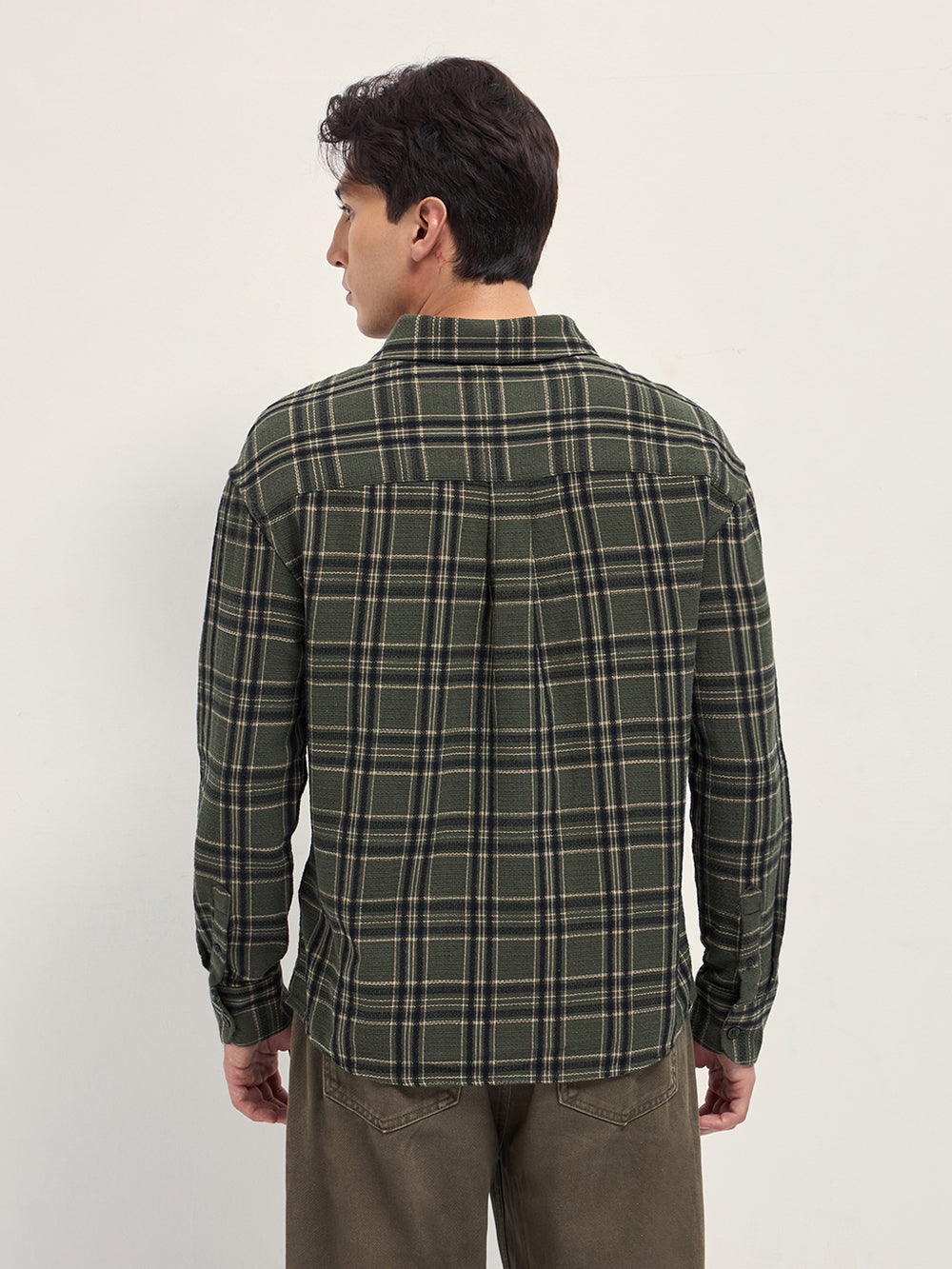 Olive Tartan Check Cotton Relaxed Fit Casual Shirt