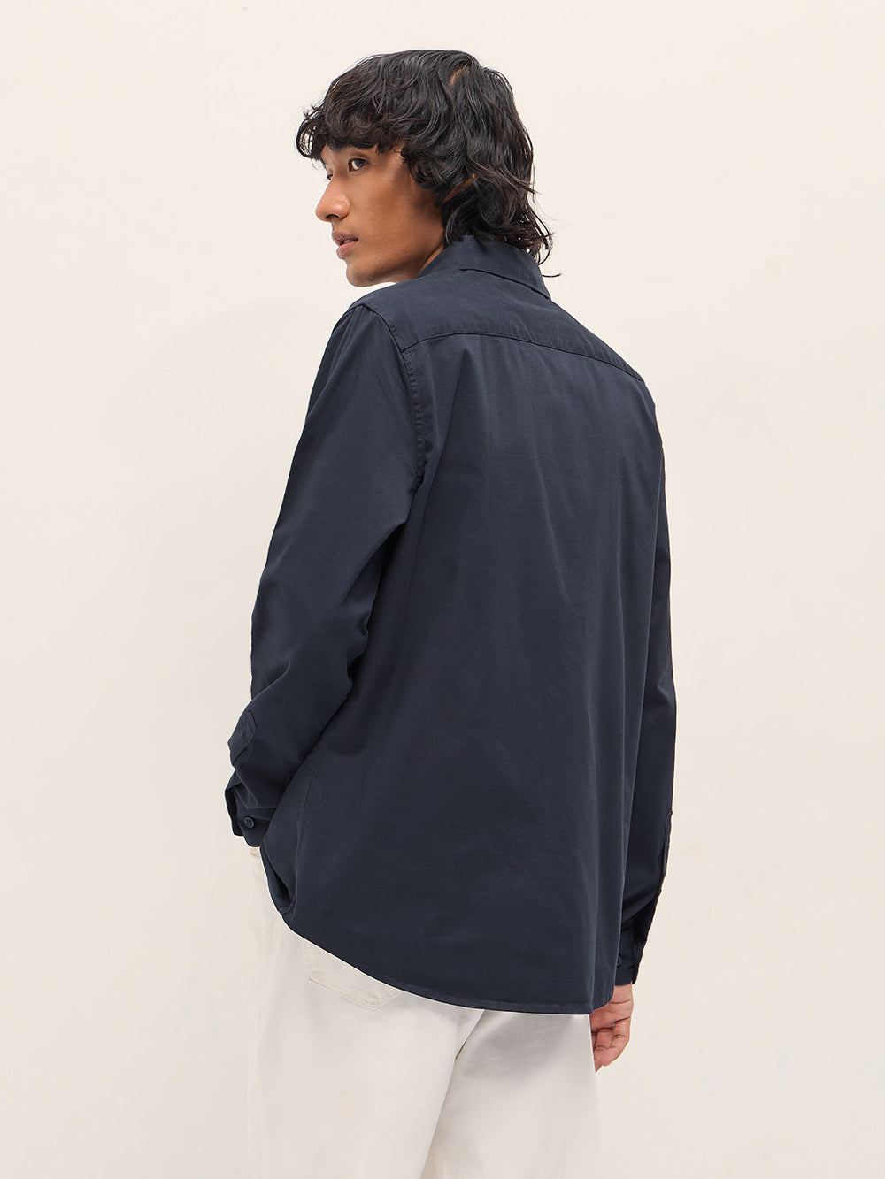 Navy Blue Cotton Blend Solid Slim Fit Casual Shirt