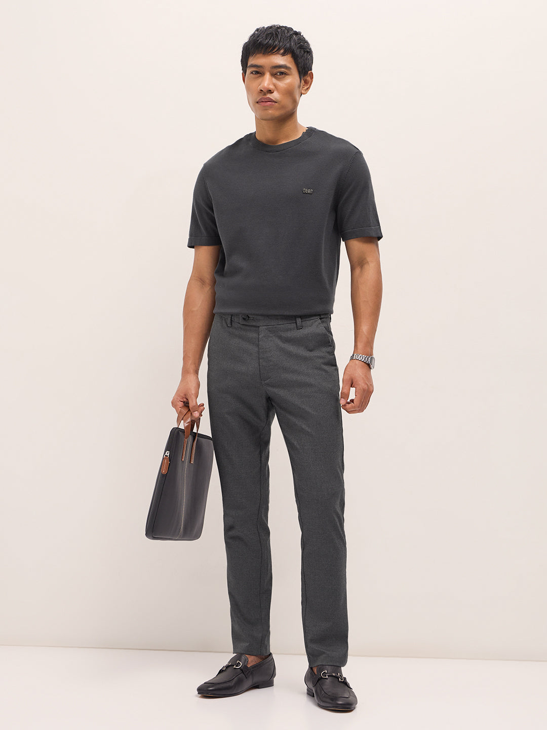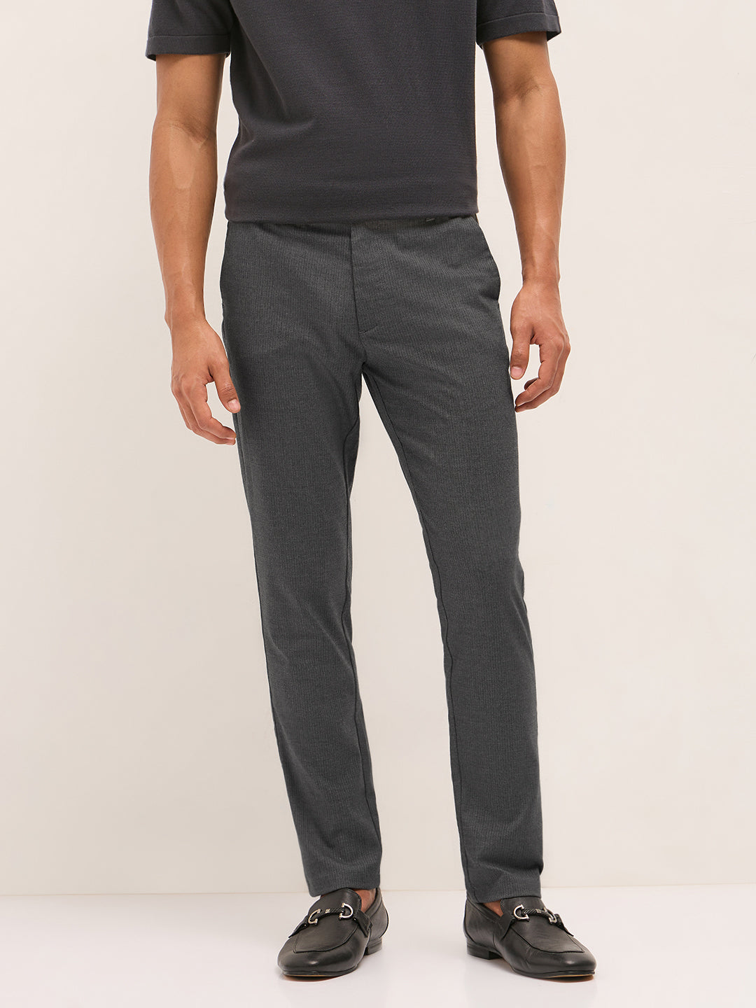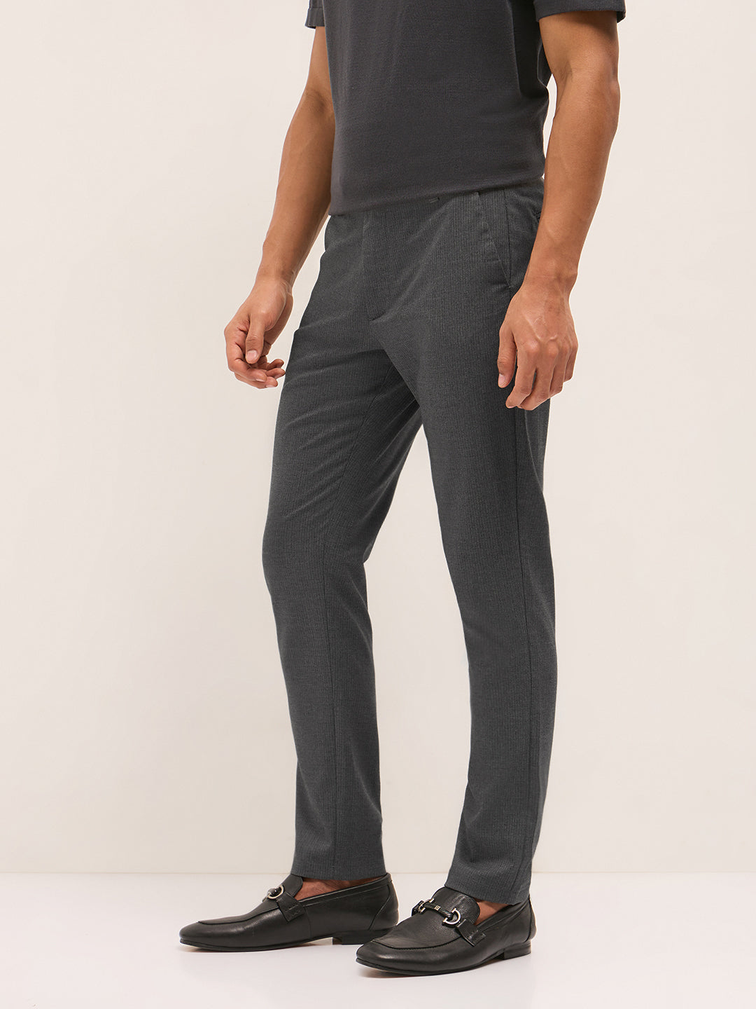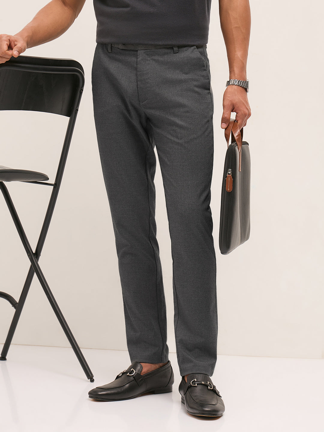 Grey Woven Pinstripe Slim Fit Formal Trousers