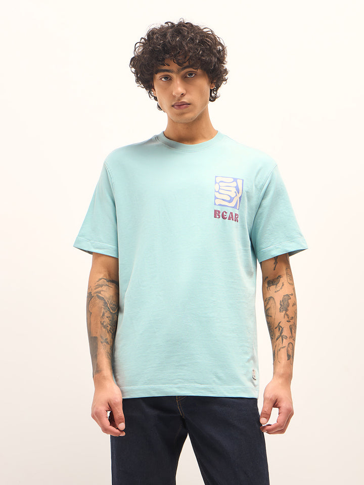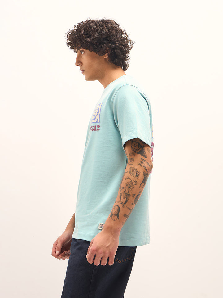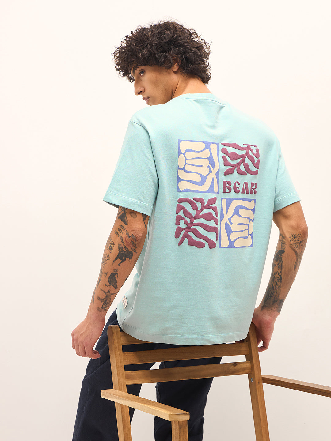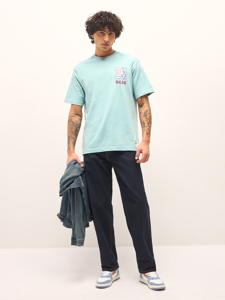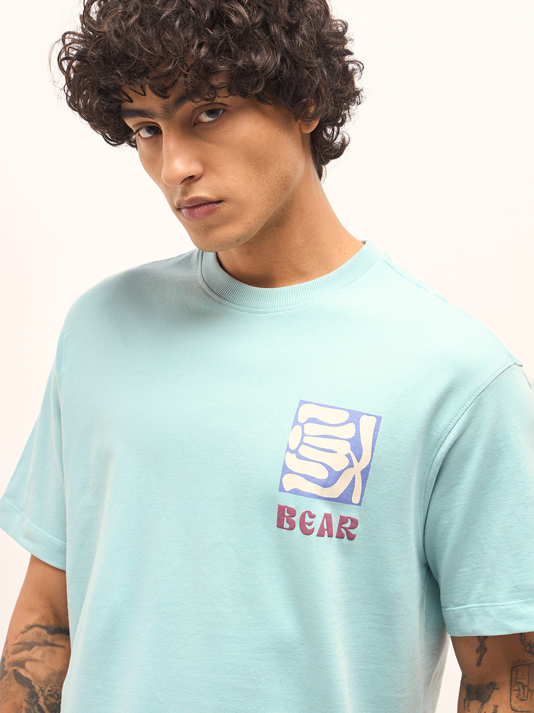 Aqua Blue Oversized Crew Neck T-Shirt with Back Graphic Print