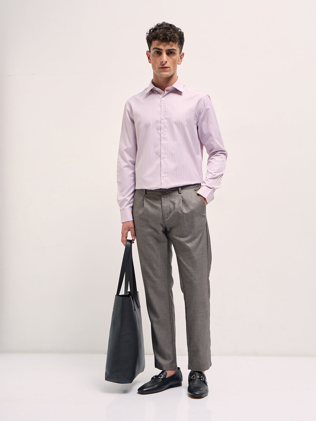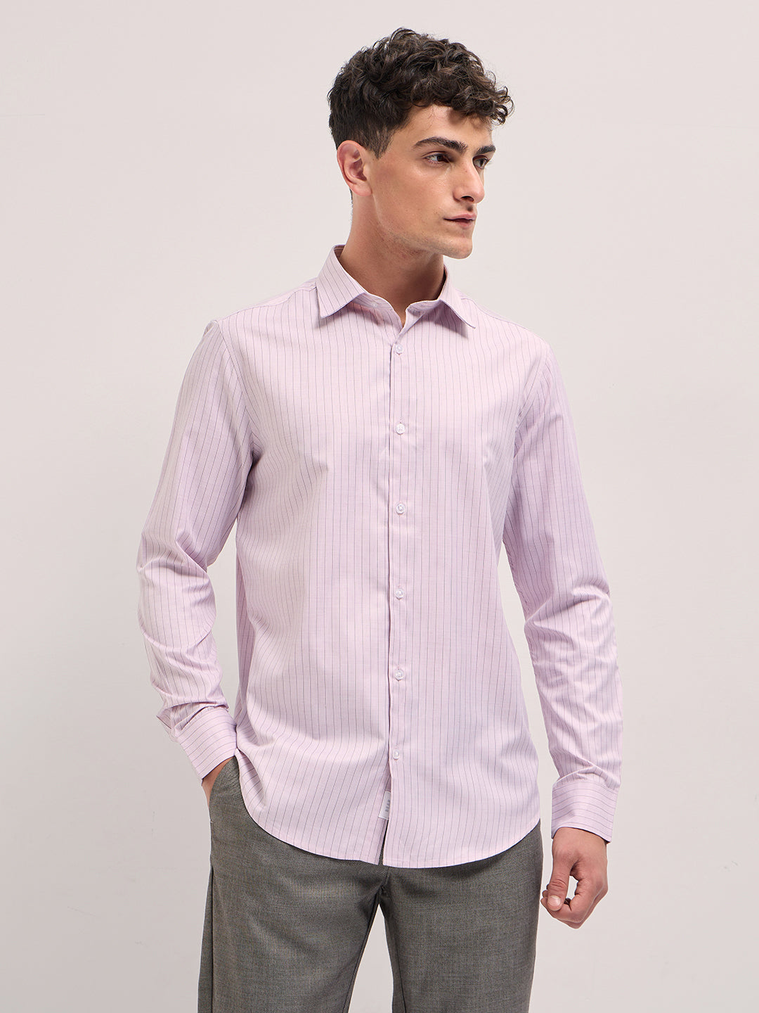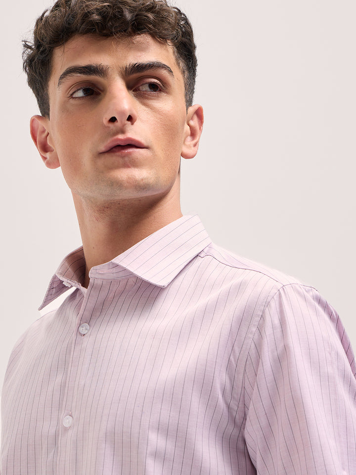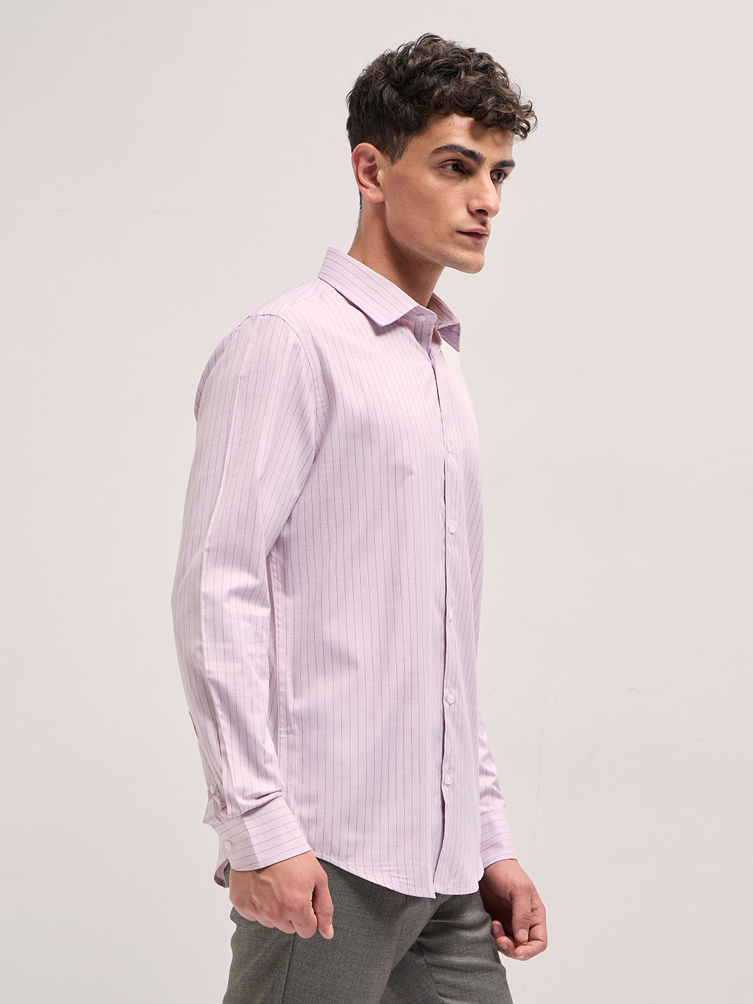 Light Pink Vertical Striped Tailored Fit Formal Shirt