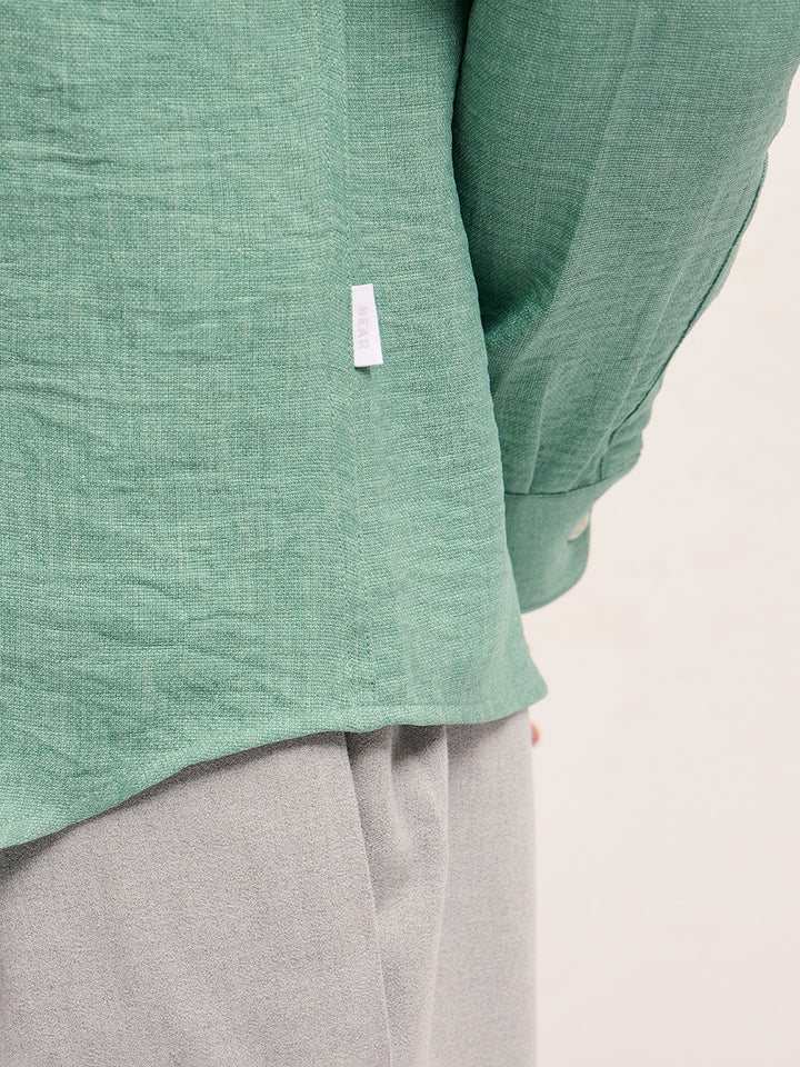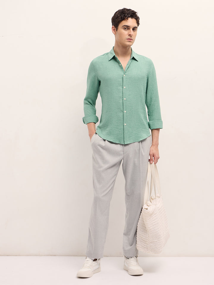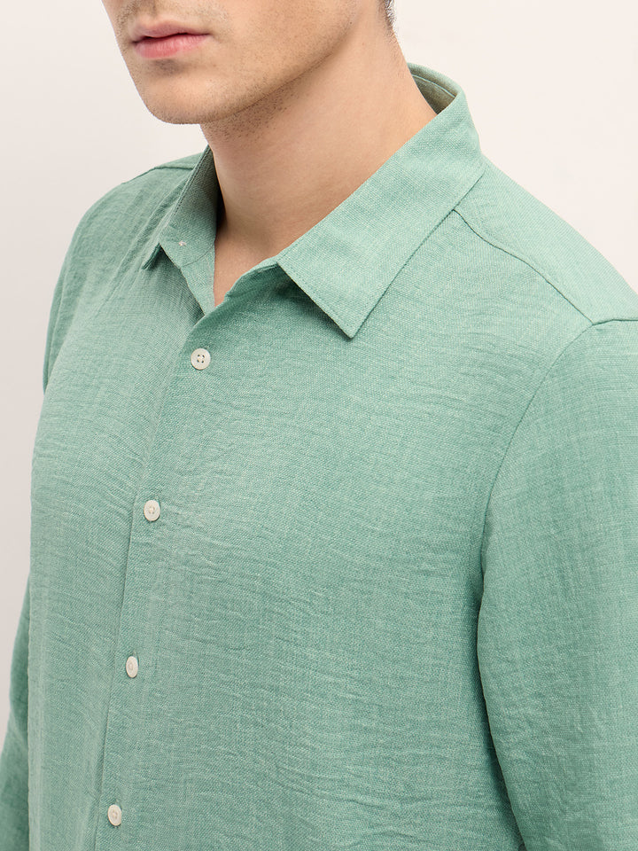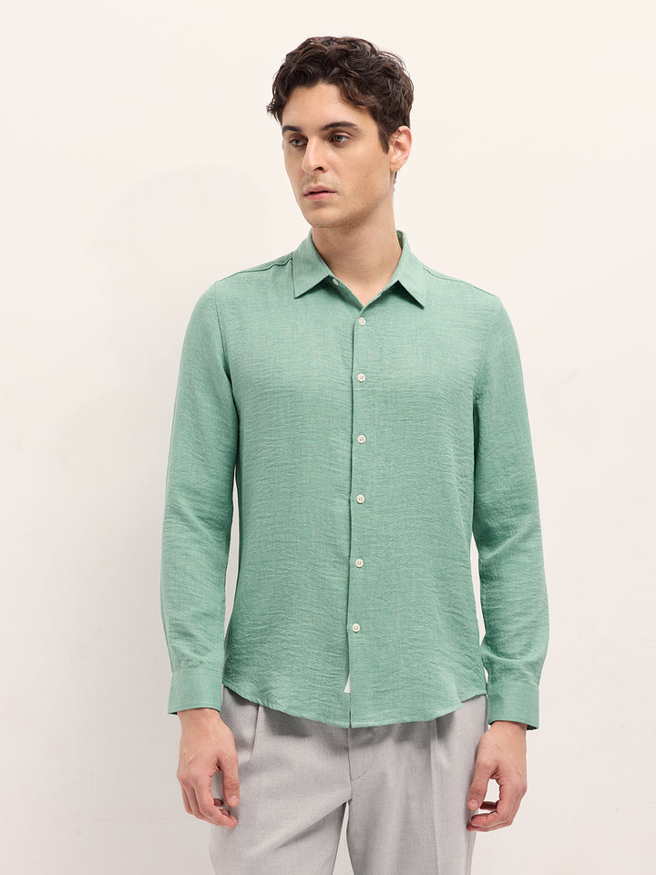 Green Solid Seersucker Effect Slim Fit Casual Shirt