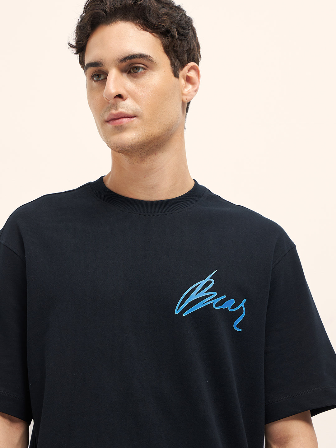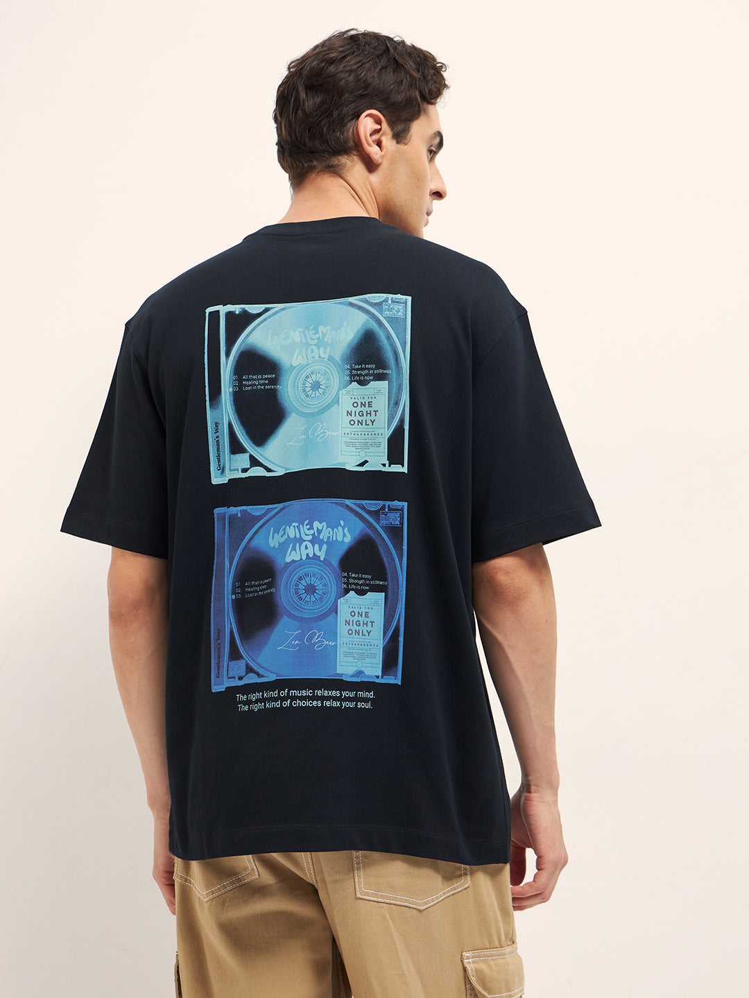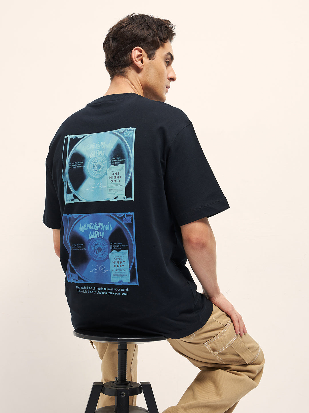 Black Oversize Graphic T-Shirt with Retro Music Print on Back