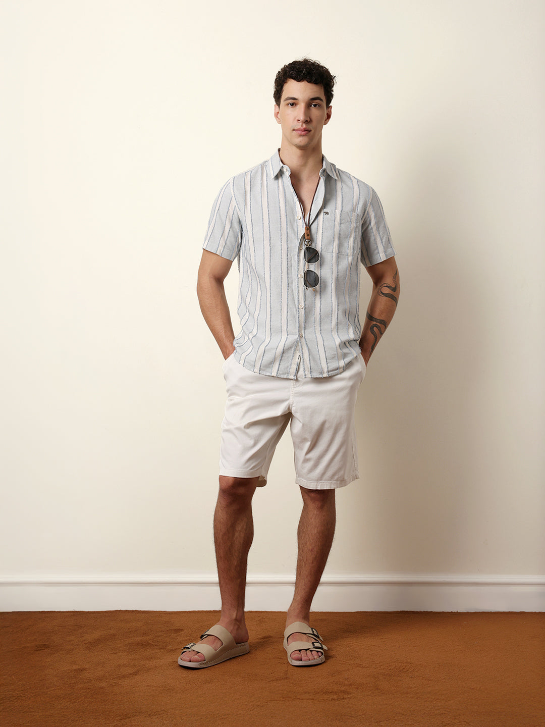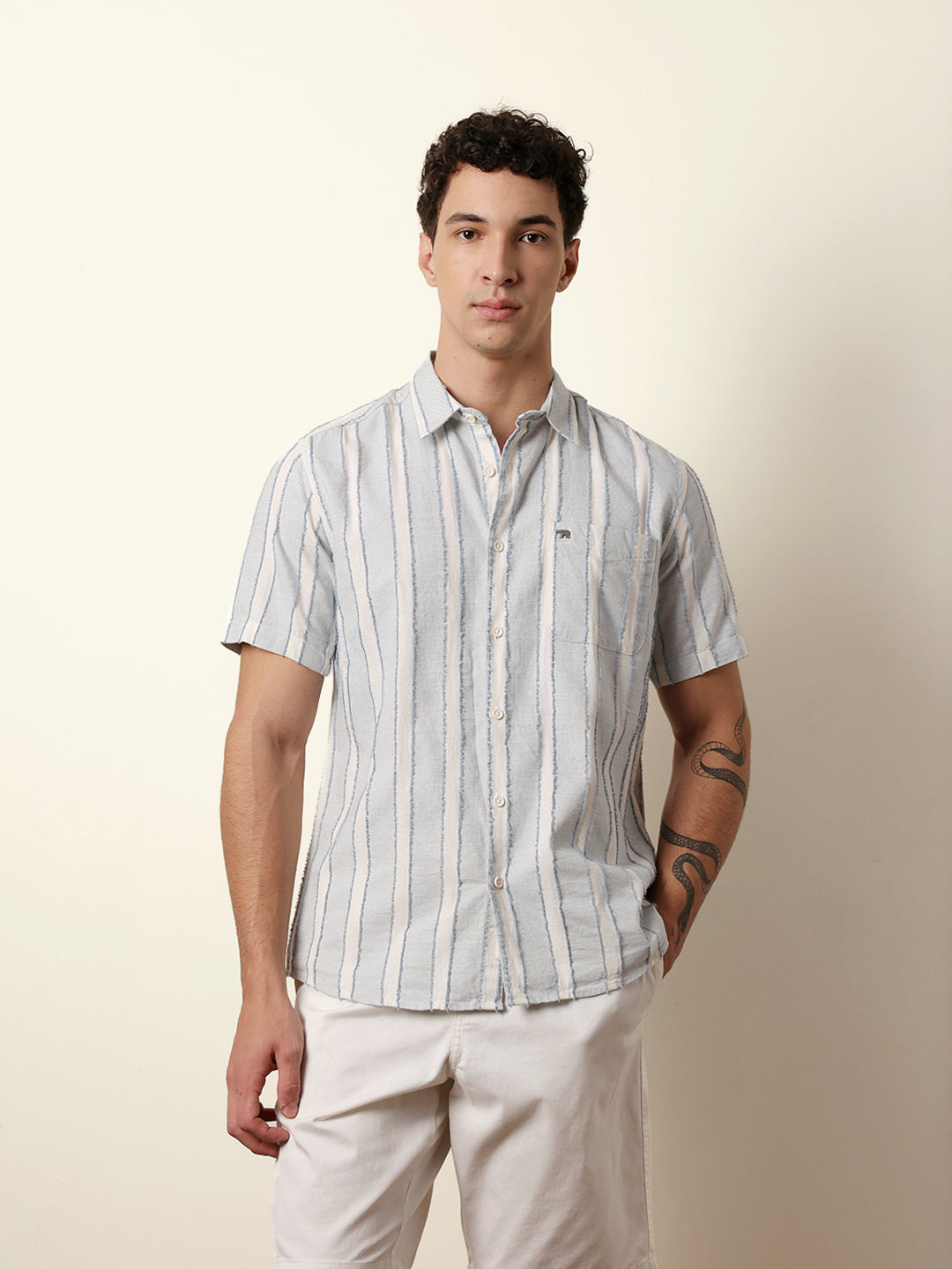 Shop Blue & White Vertical Chenille Stripe Regular Fit Casual Shirt Online. Explore our wide range of men's clothing collections. Free Shipping Hassle-free returns