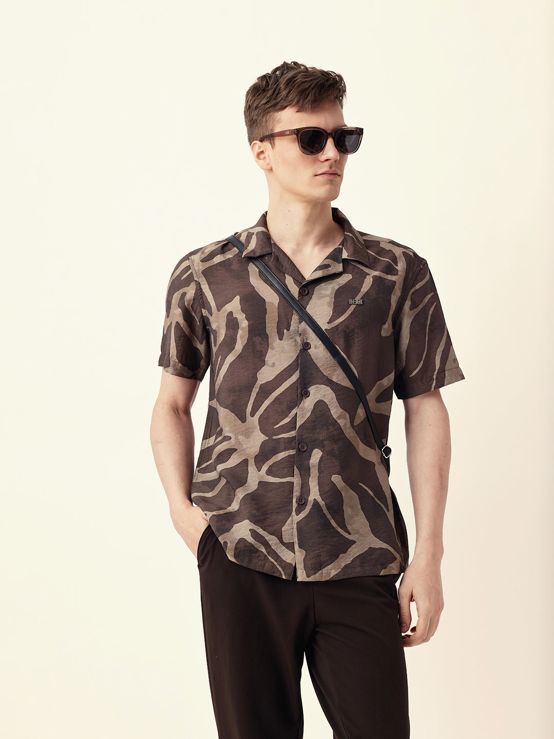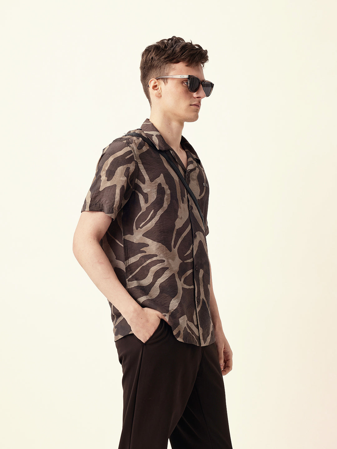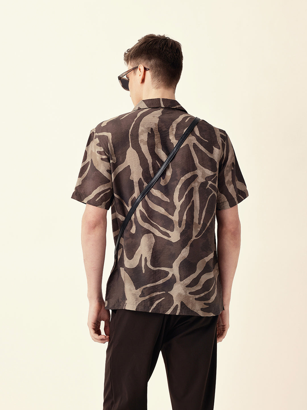 Shop Brown with Beige Relaxed Fit Abstract Stroke Print Half Sleeve Casual Shirt Online.