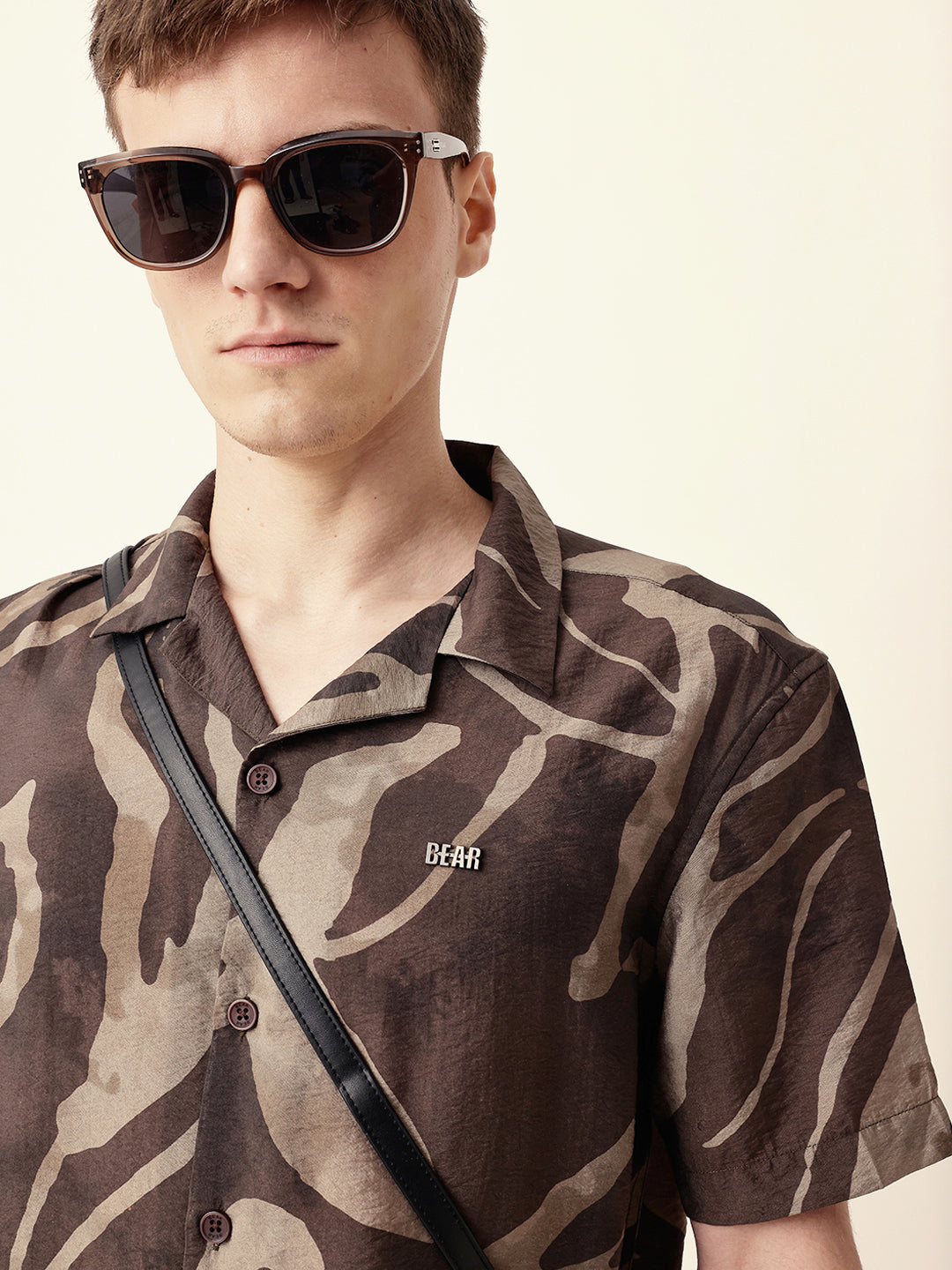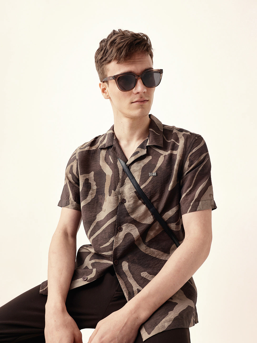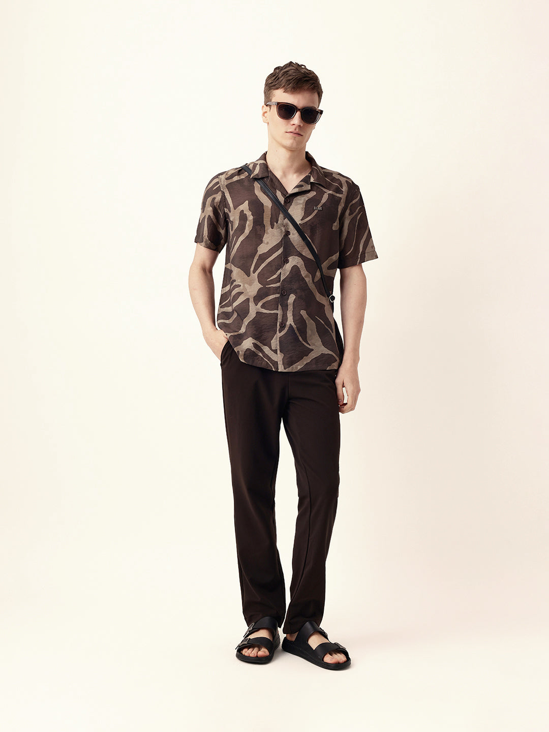 Shop Brown with Beige Relaxed Fit Abstract Stroke Print Half Sleeve Casual Shirt Online.