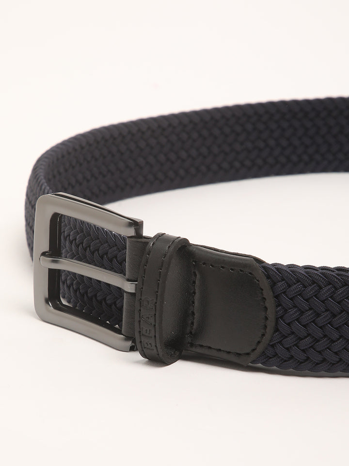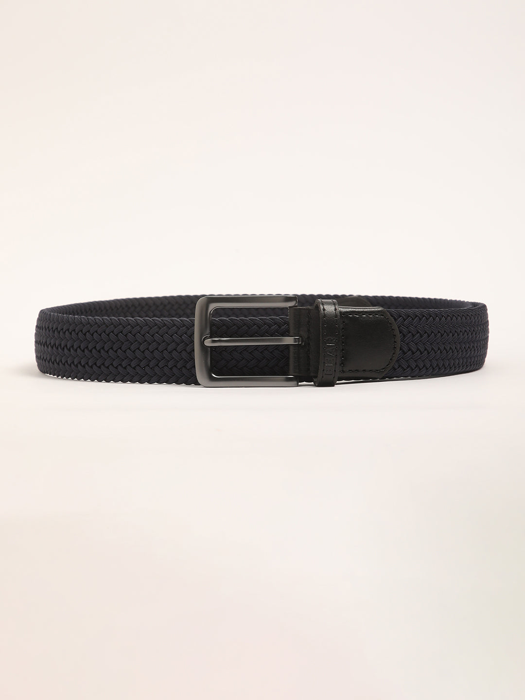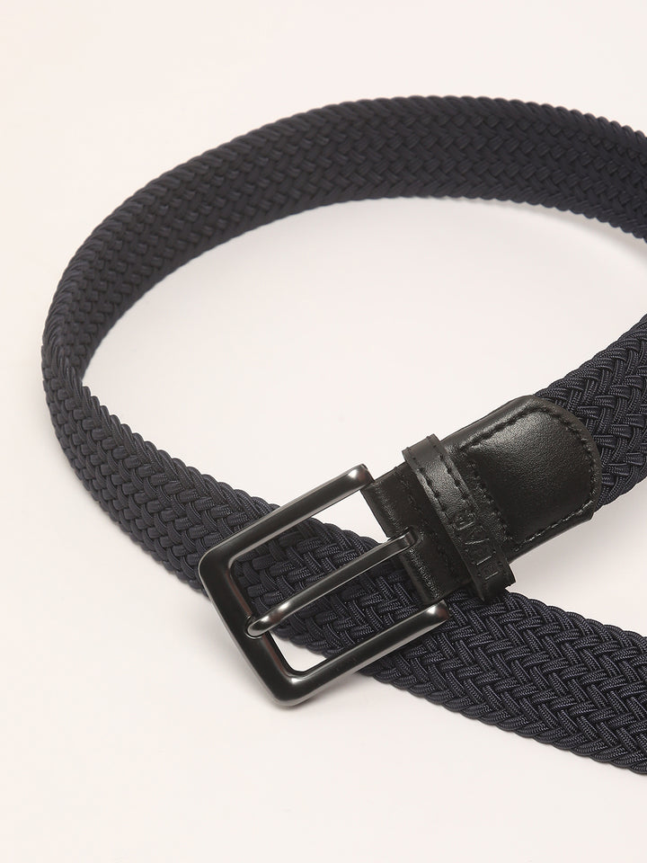 Men Blue Braided Wide Width Casual Belt with Tang Closure