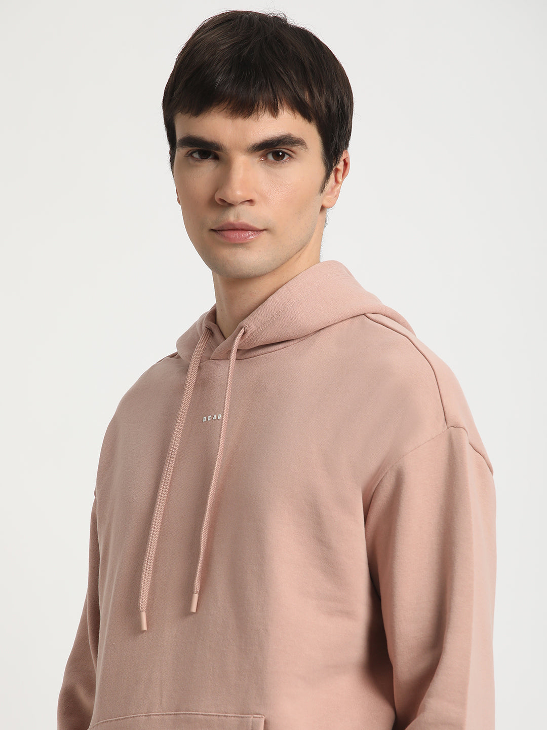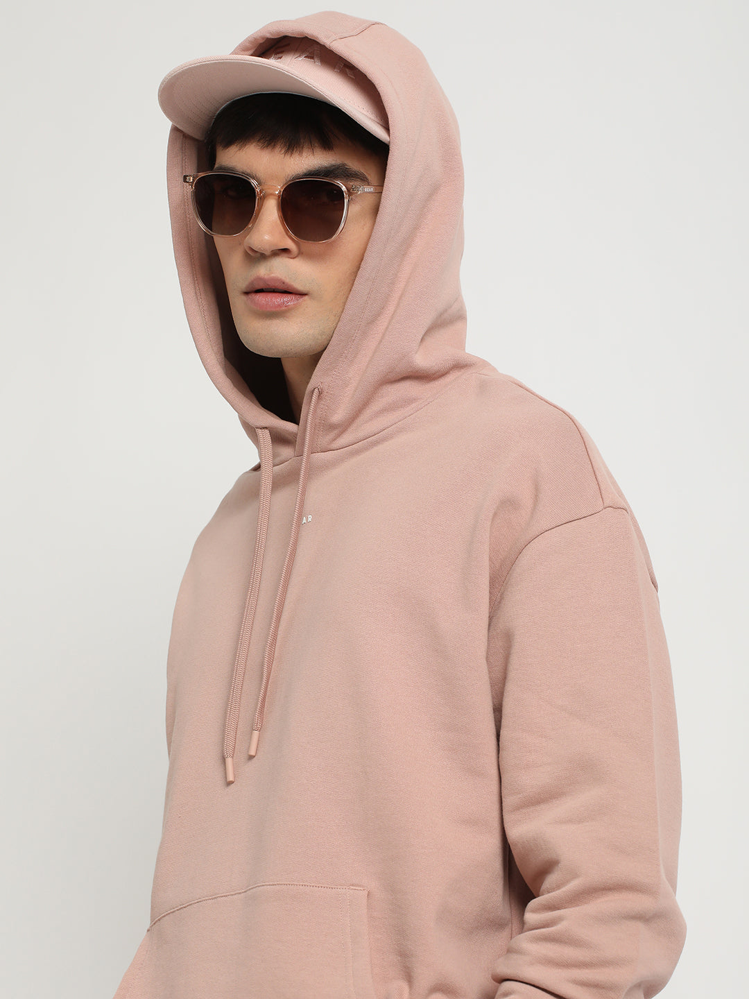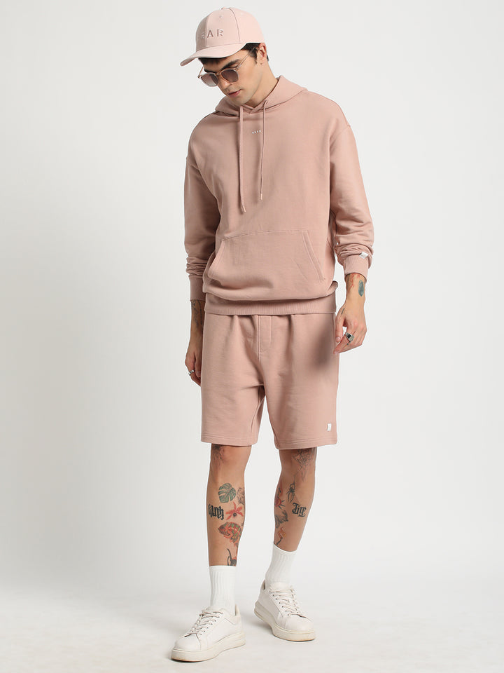 Men Pink Solid Relaxed Fit Hoodie