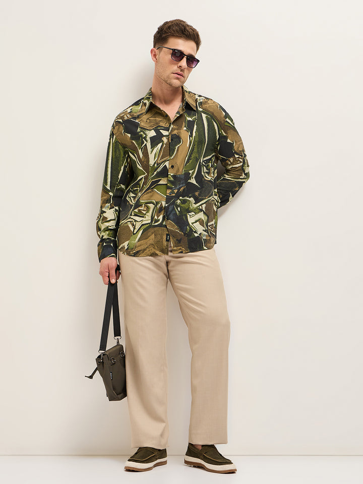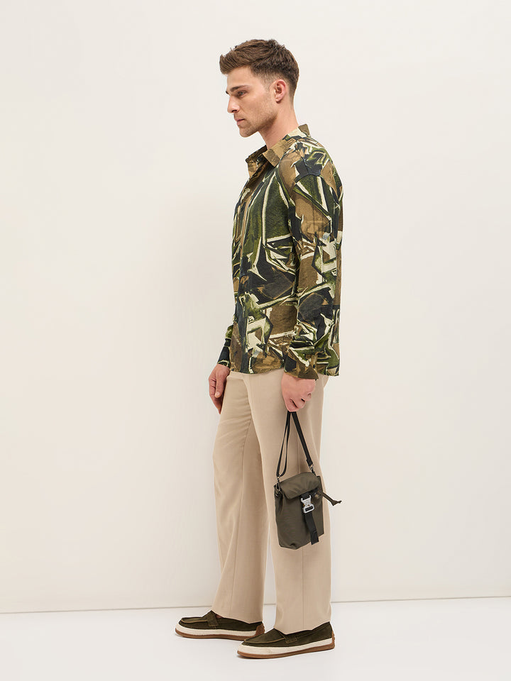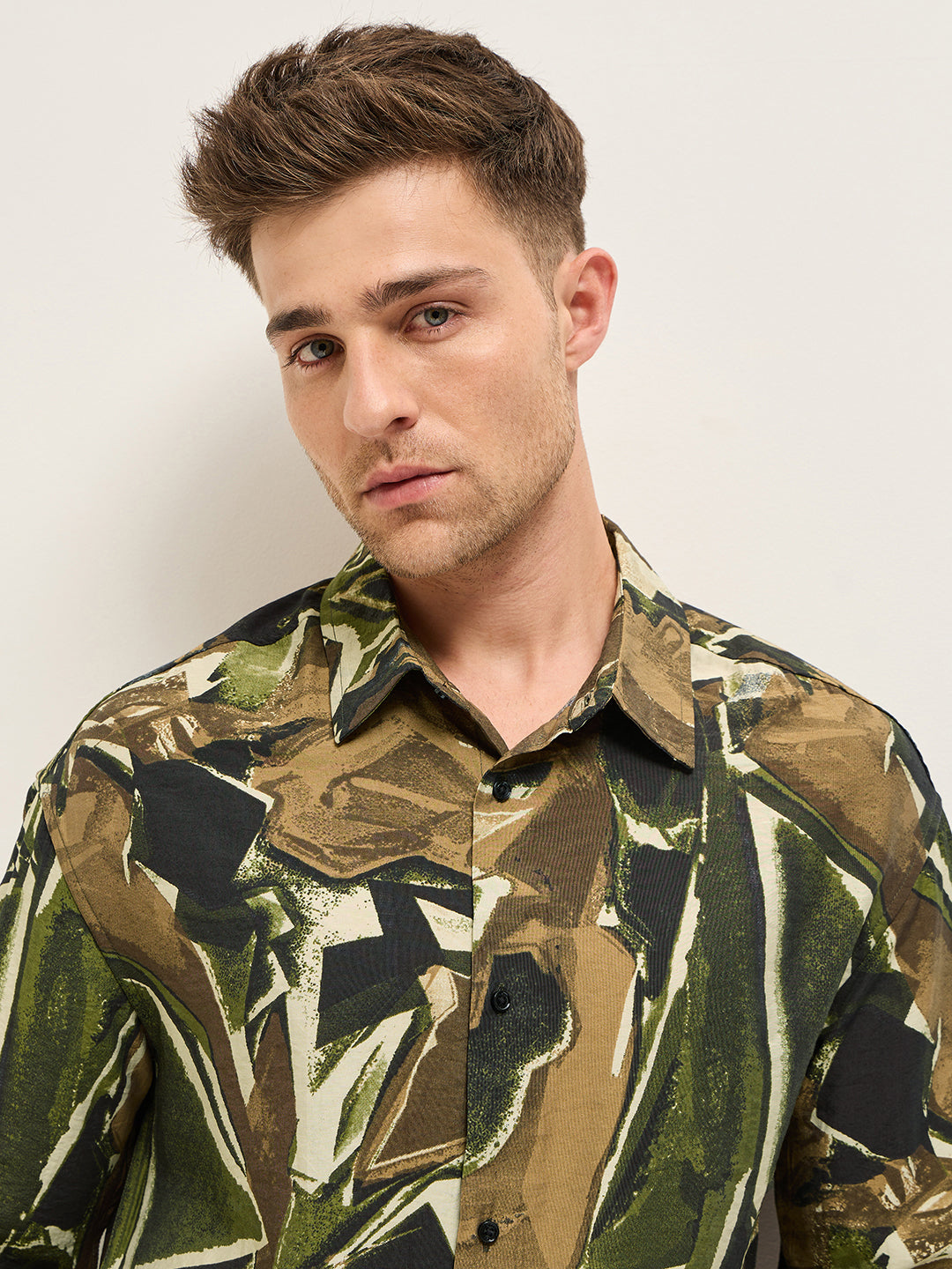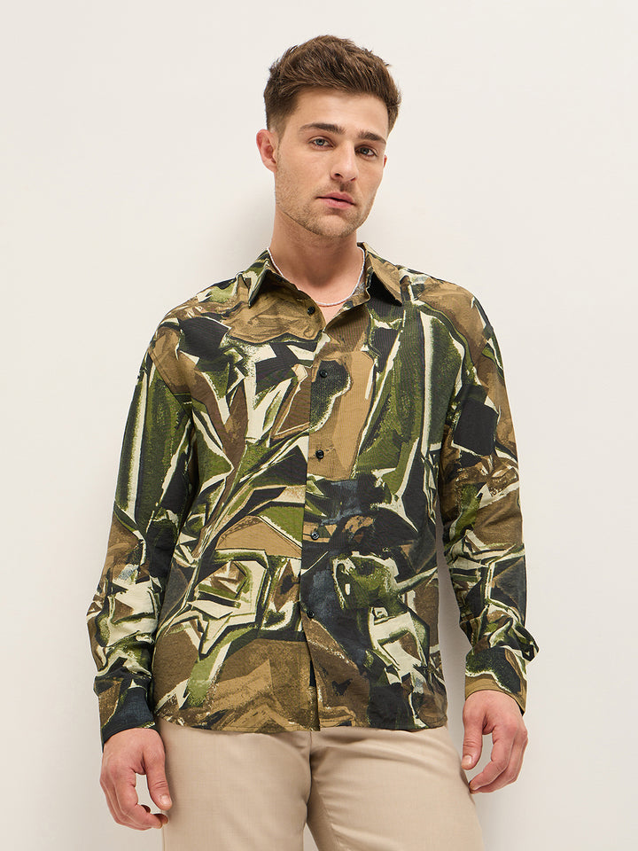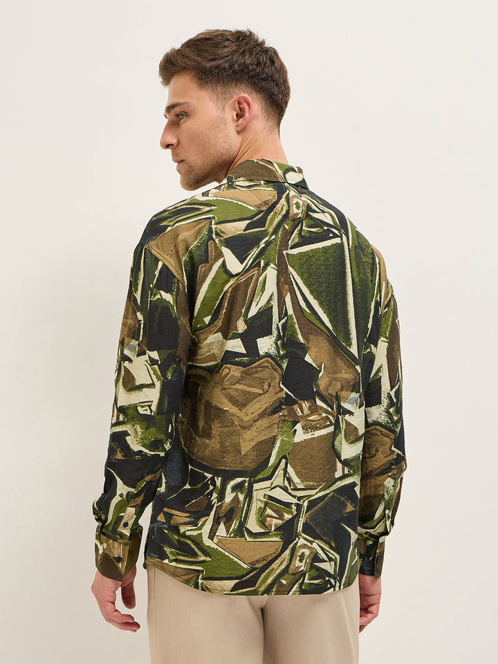 Multi-Color abstract foliage-inspired Print Relax Fit Overshirt