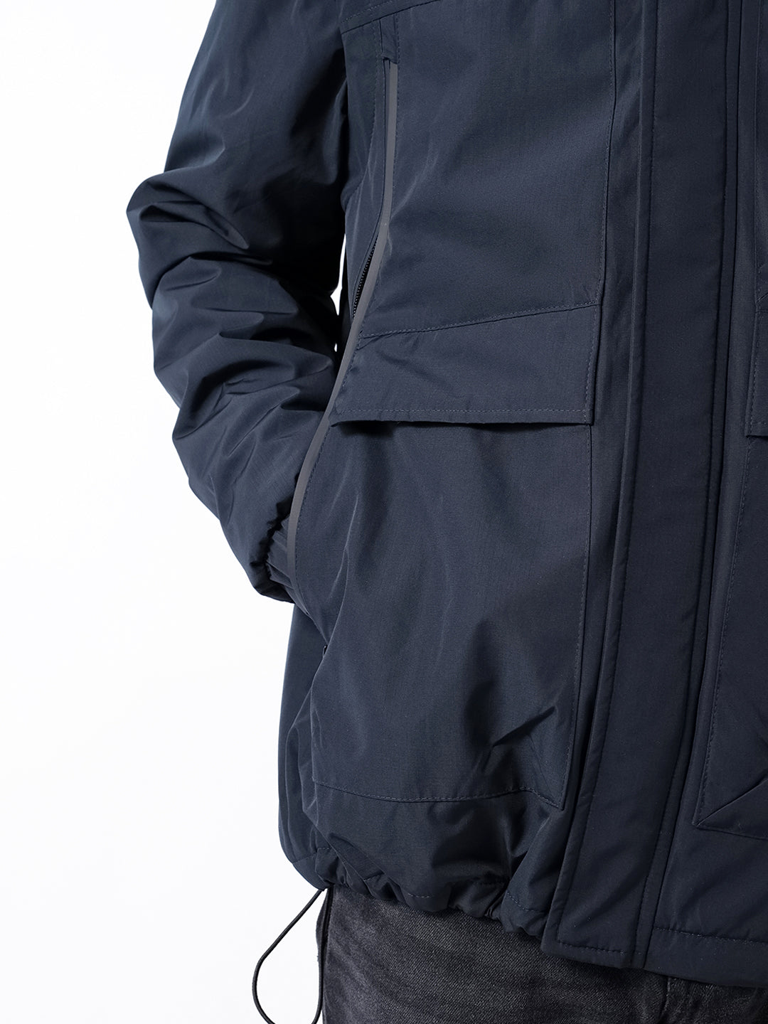 Design: Utility Jacket featuring cut-and-sew panels and Water Repellent