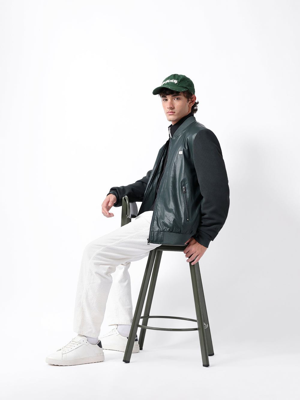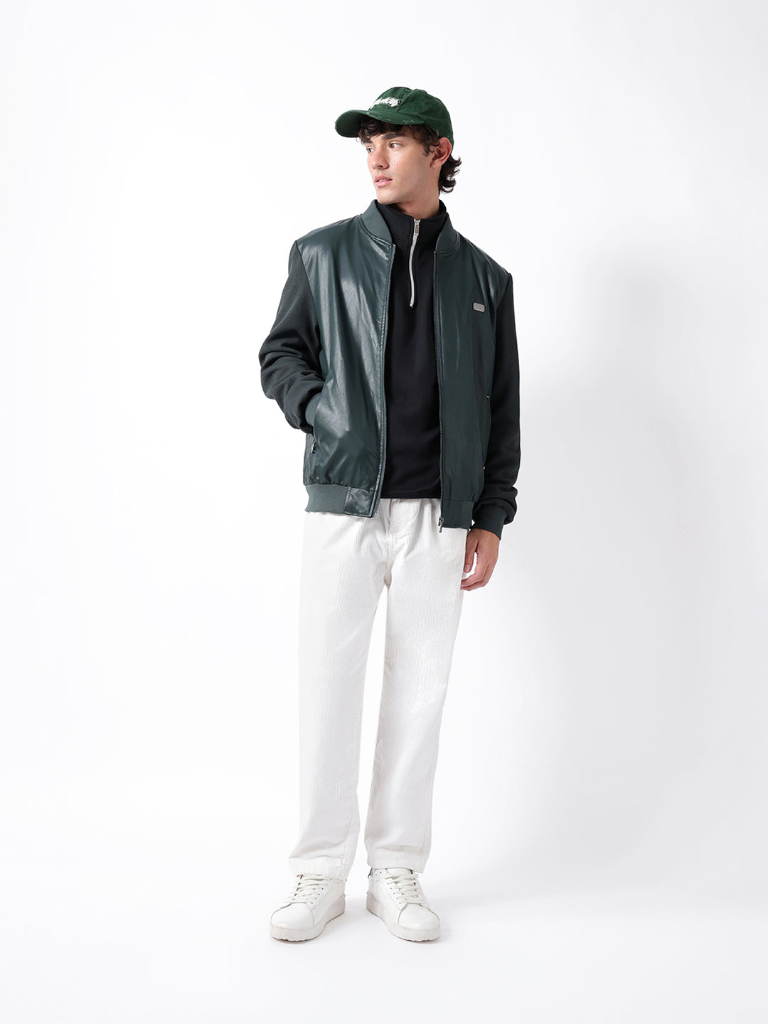 - Neck Style: Ribbed Mock-neck collar for a refined finish