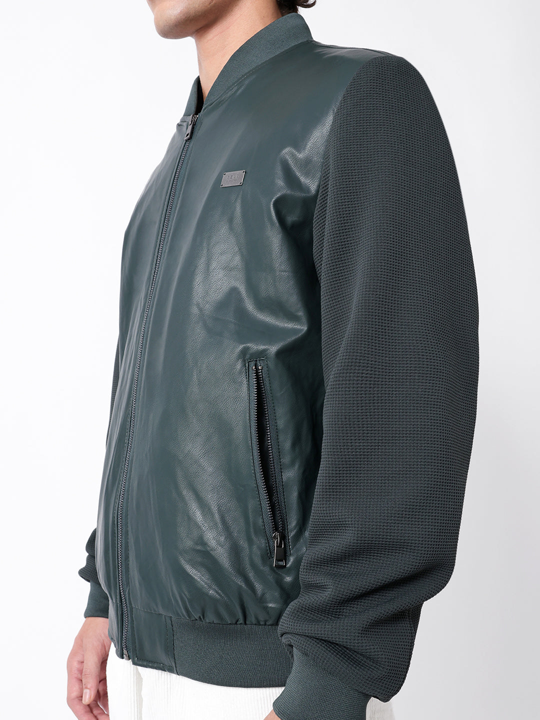 - Sleeves: Full-length waffle-textured knitted sleeves finished with ribbed cuffs.