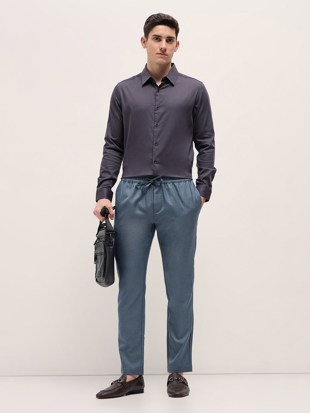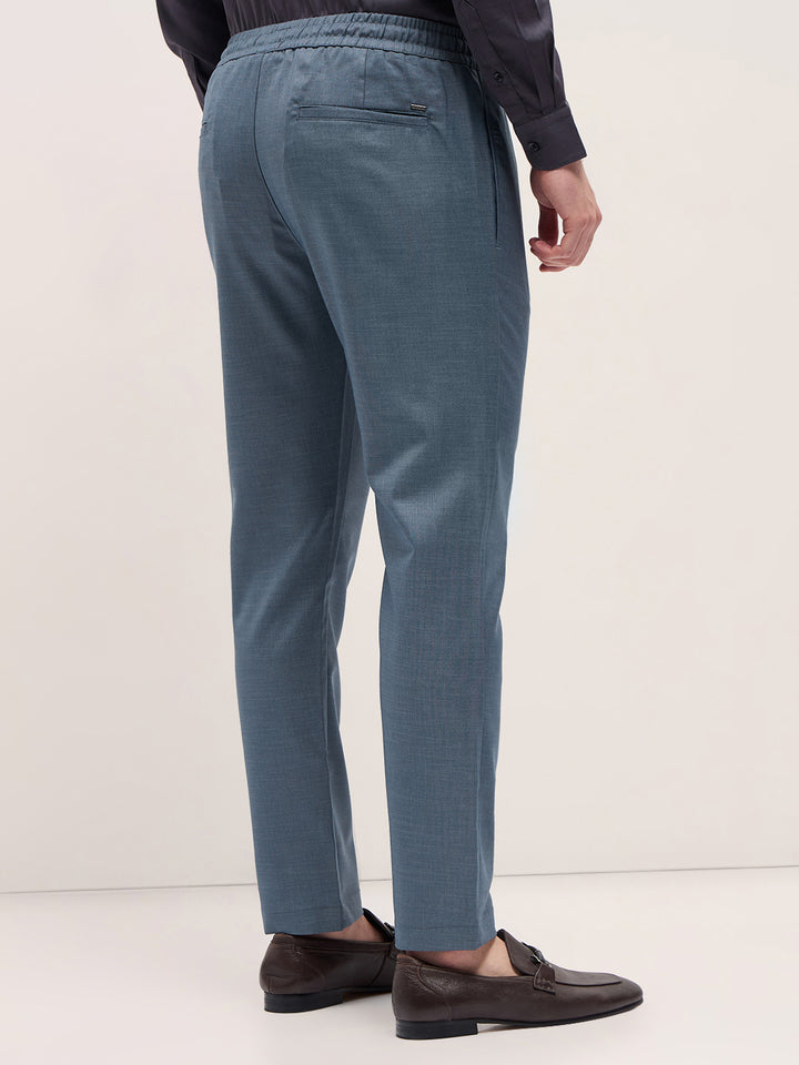 Steel Blue Slim Fit Formal Trouser with Elastic Waistband