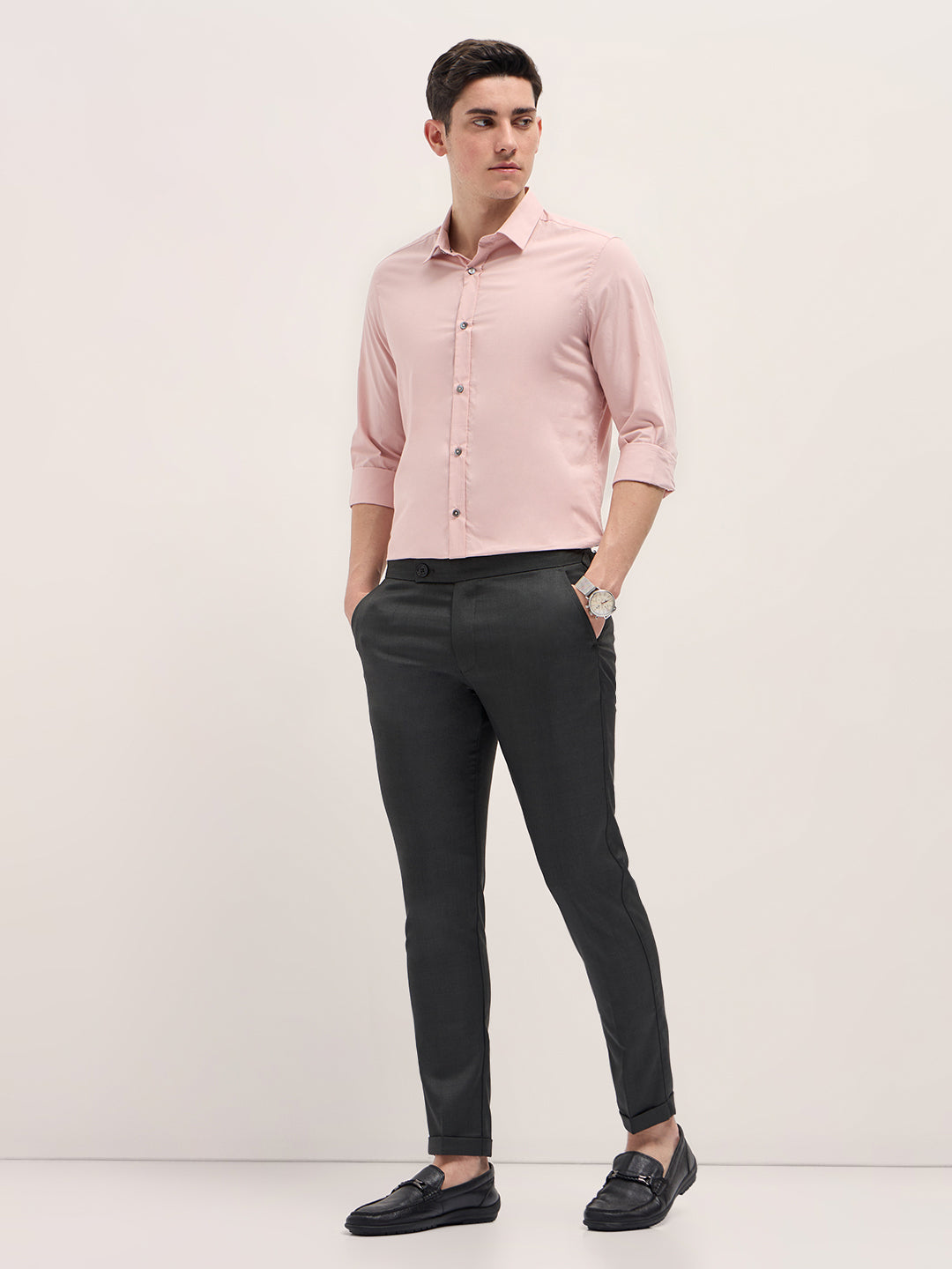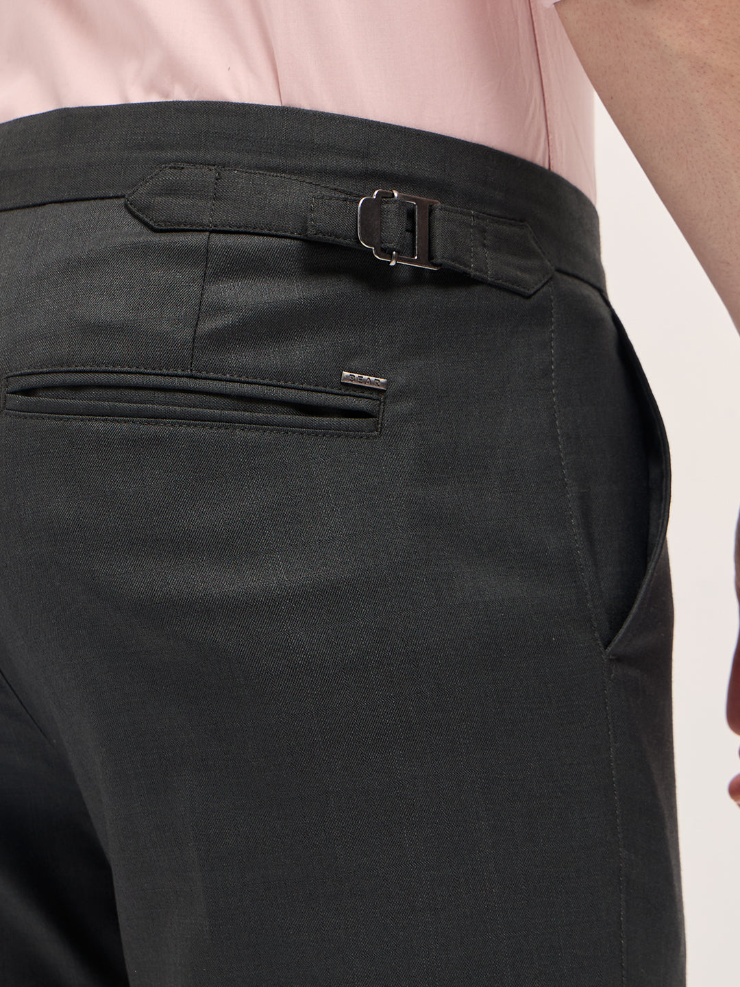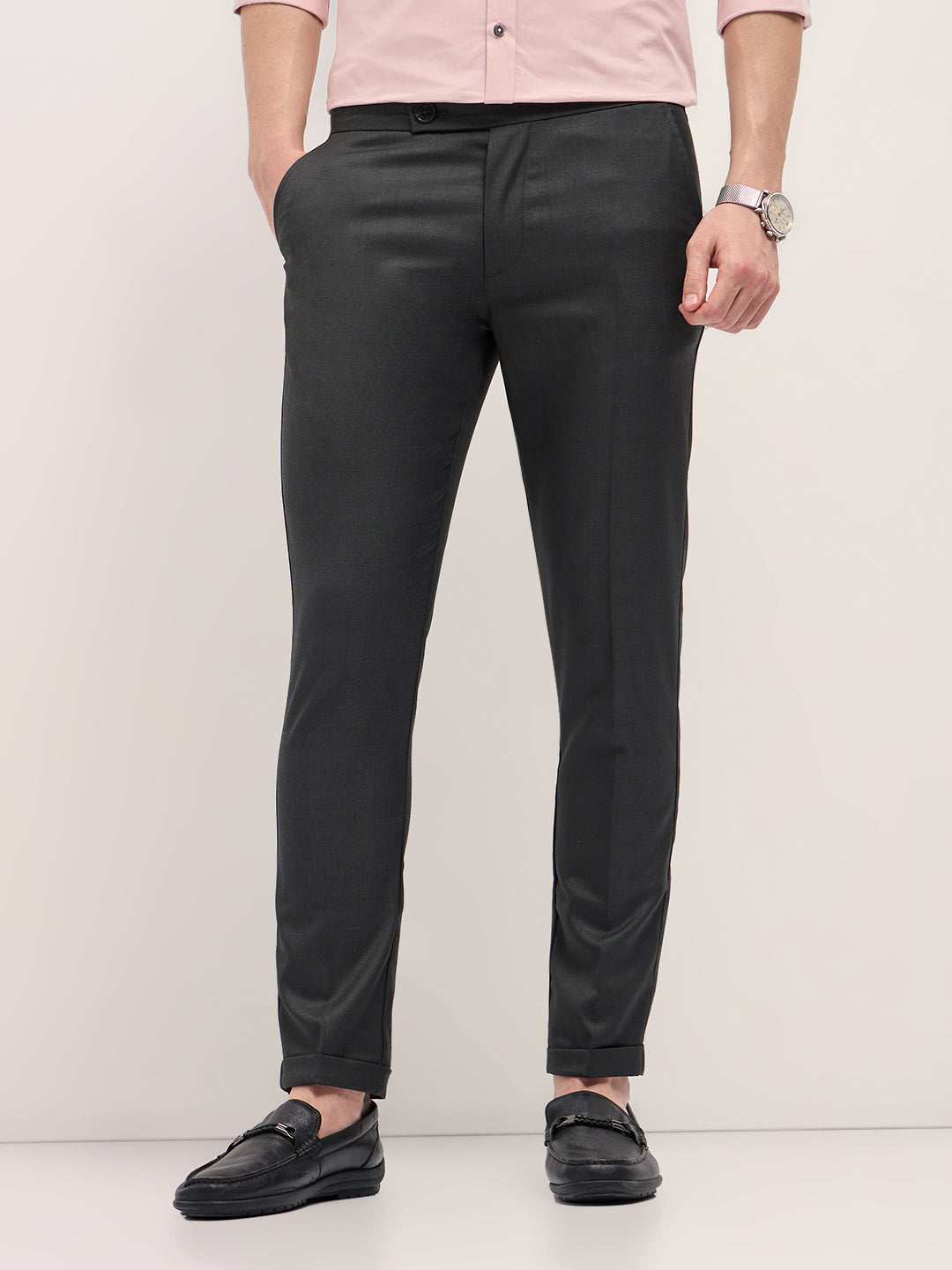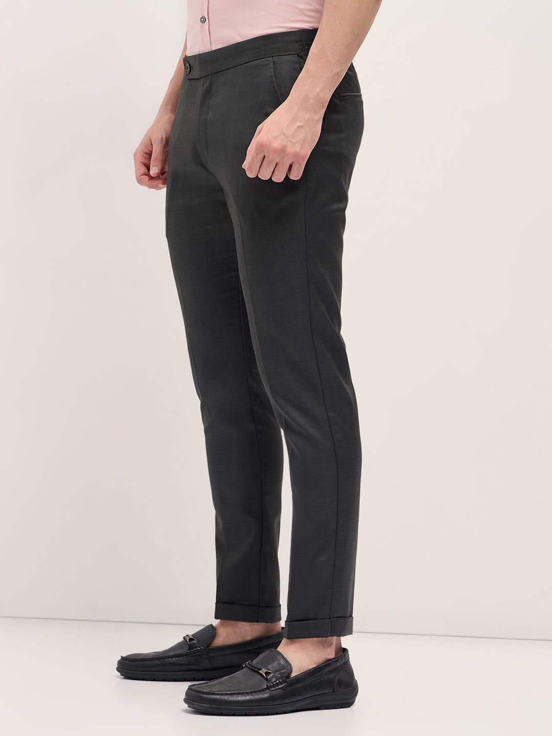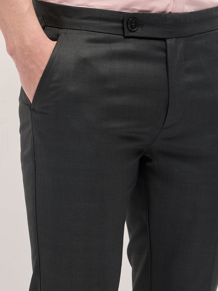Charcoal Grey Slim Fit Formal Trouser with Adjustable Waist Tabs