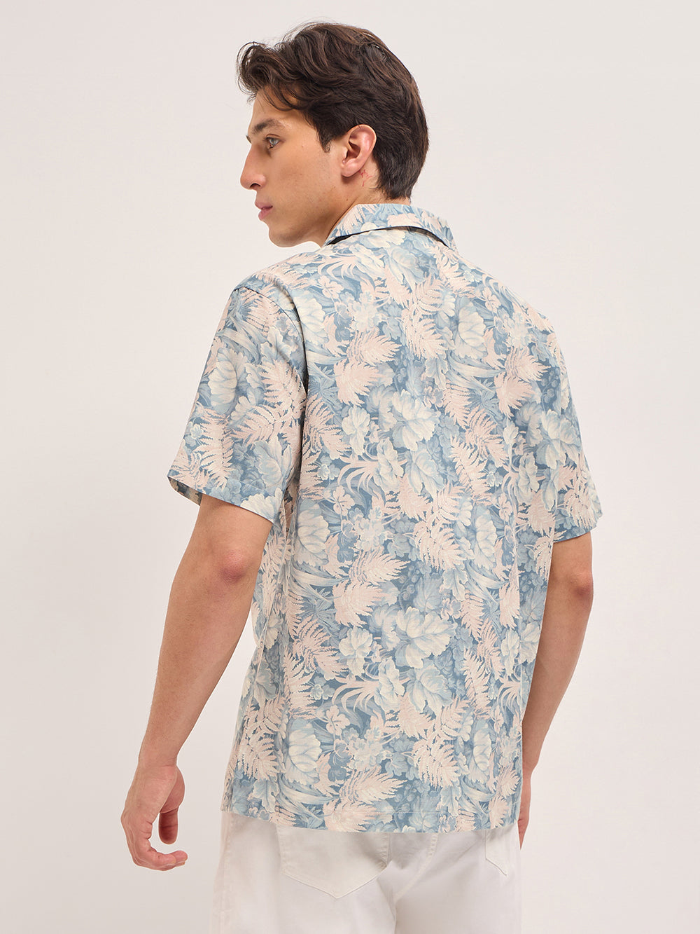 Multicolor Relaxed Fit Cuban Collar Shirt with Tropical Floral Print