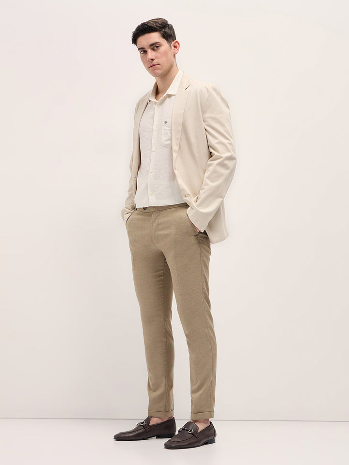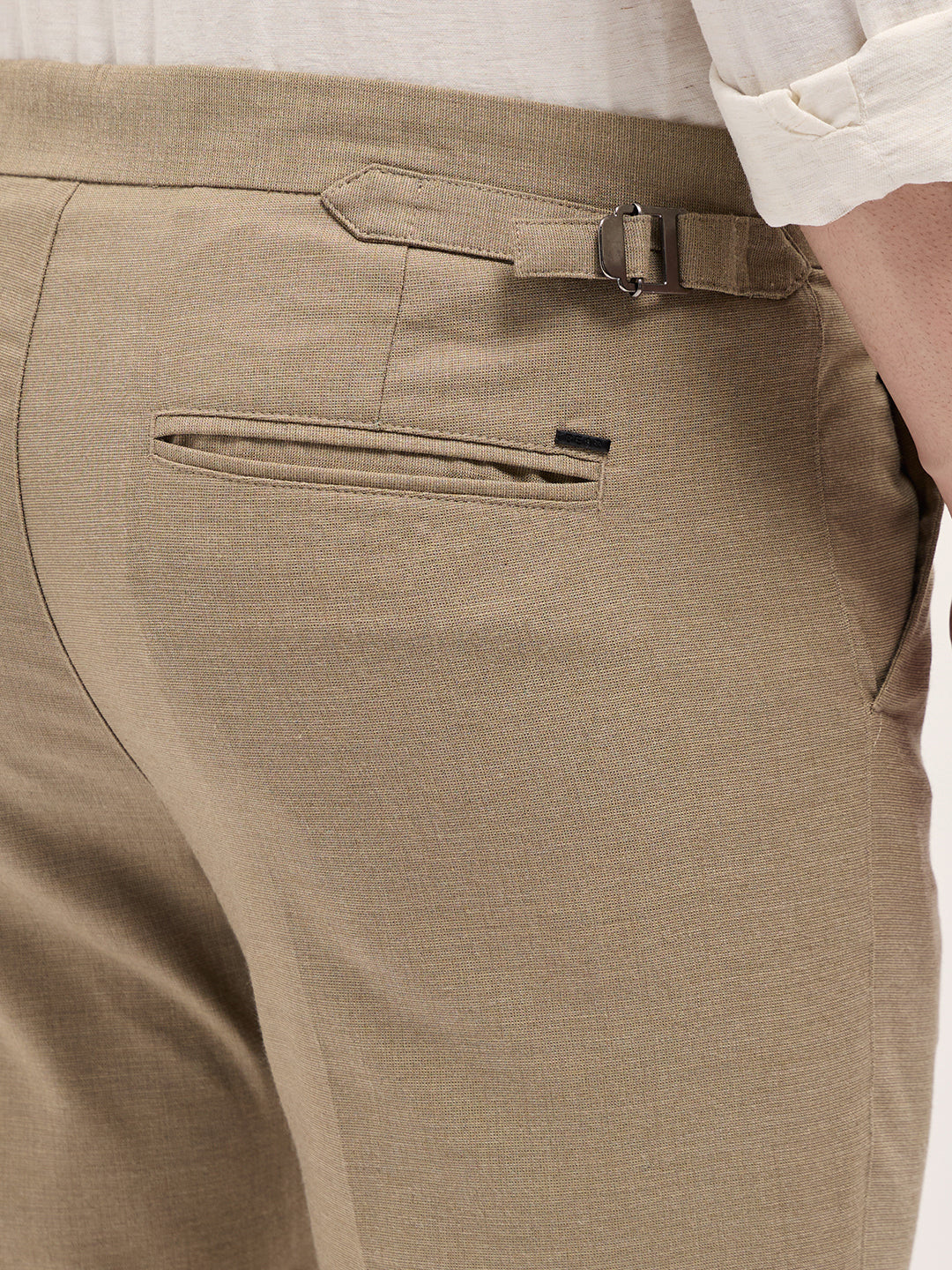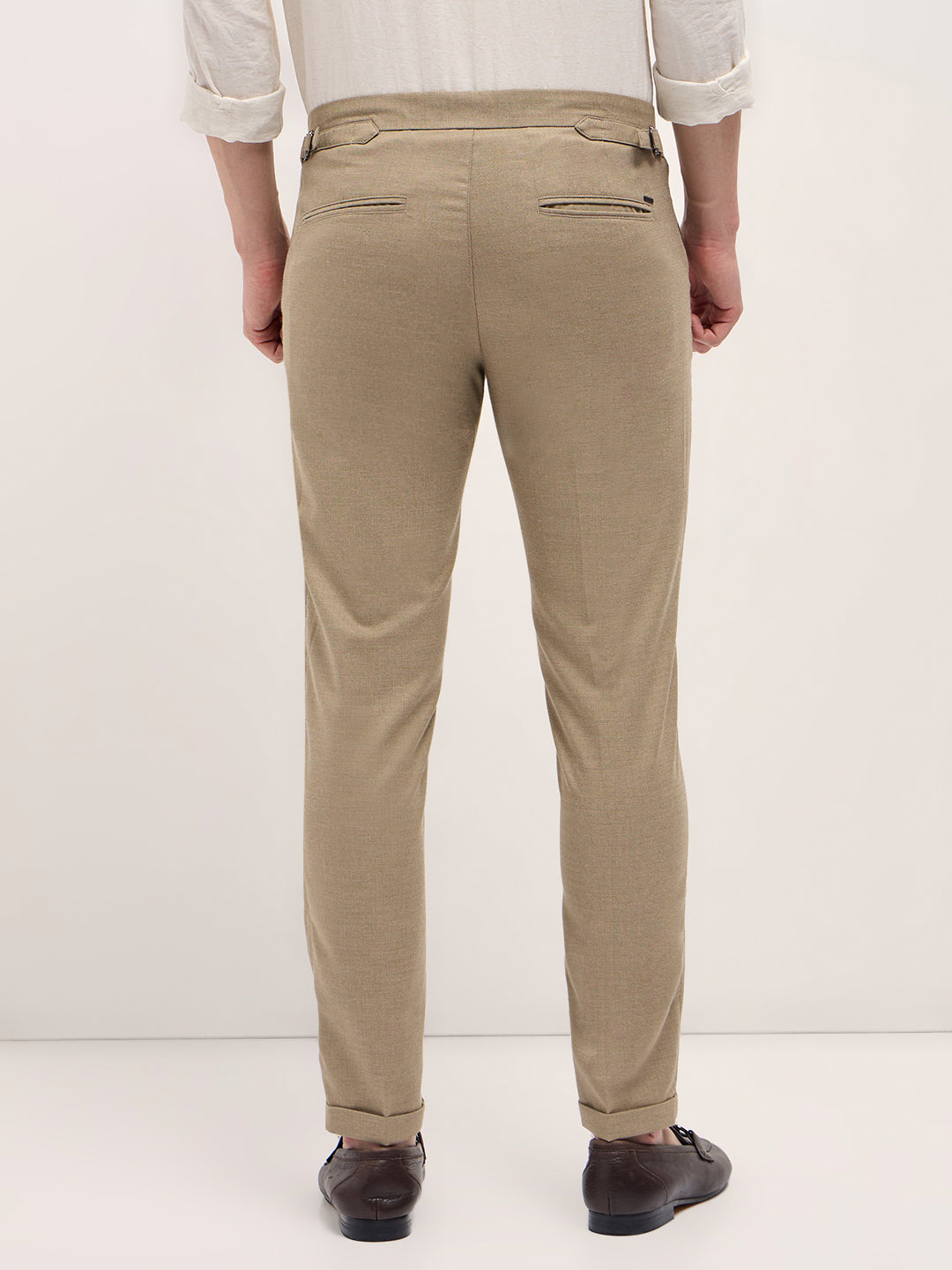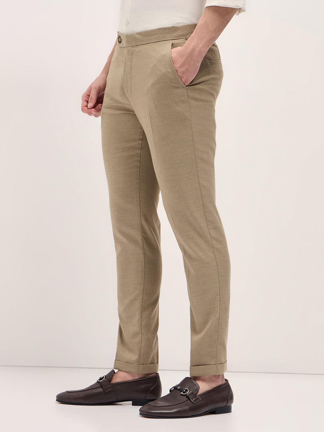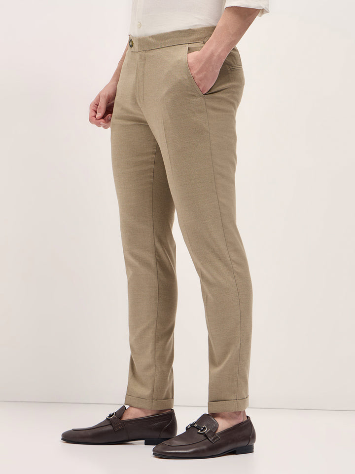 Beige Slim Fit Formal Trouser with Adjustable Waist Tabs
