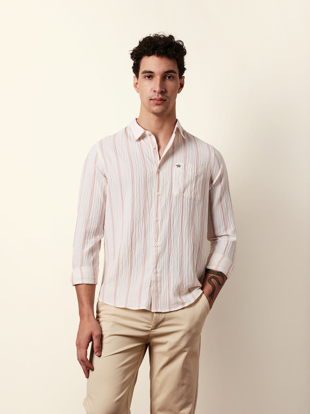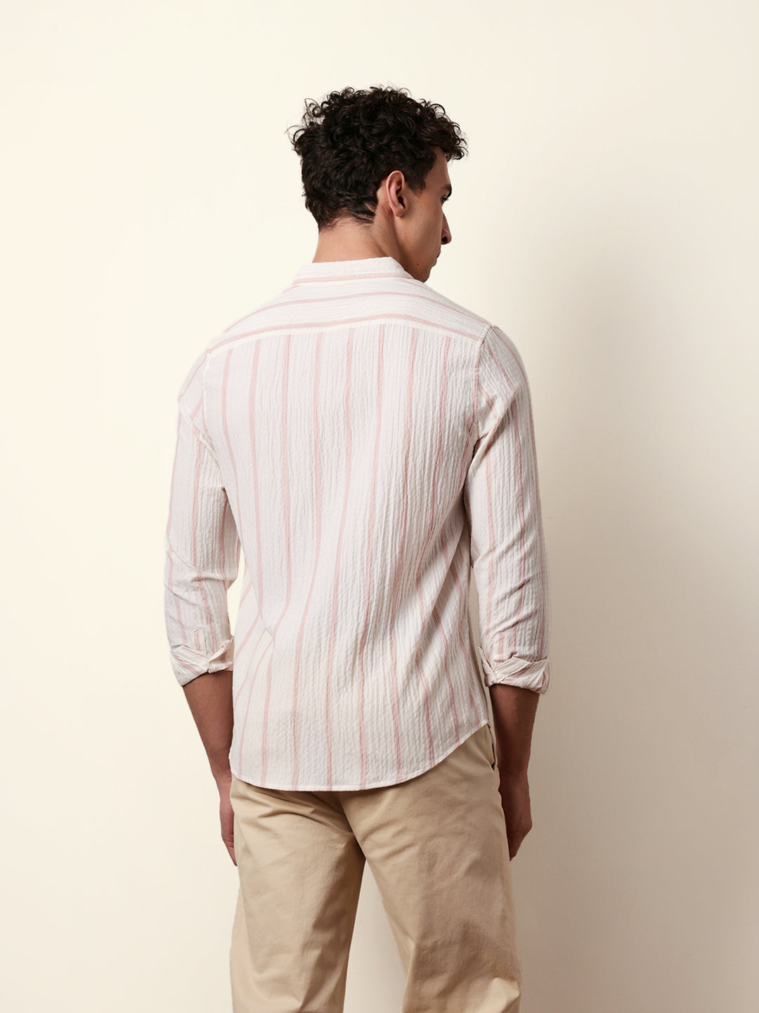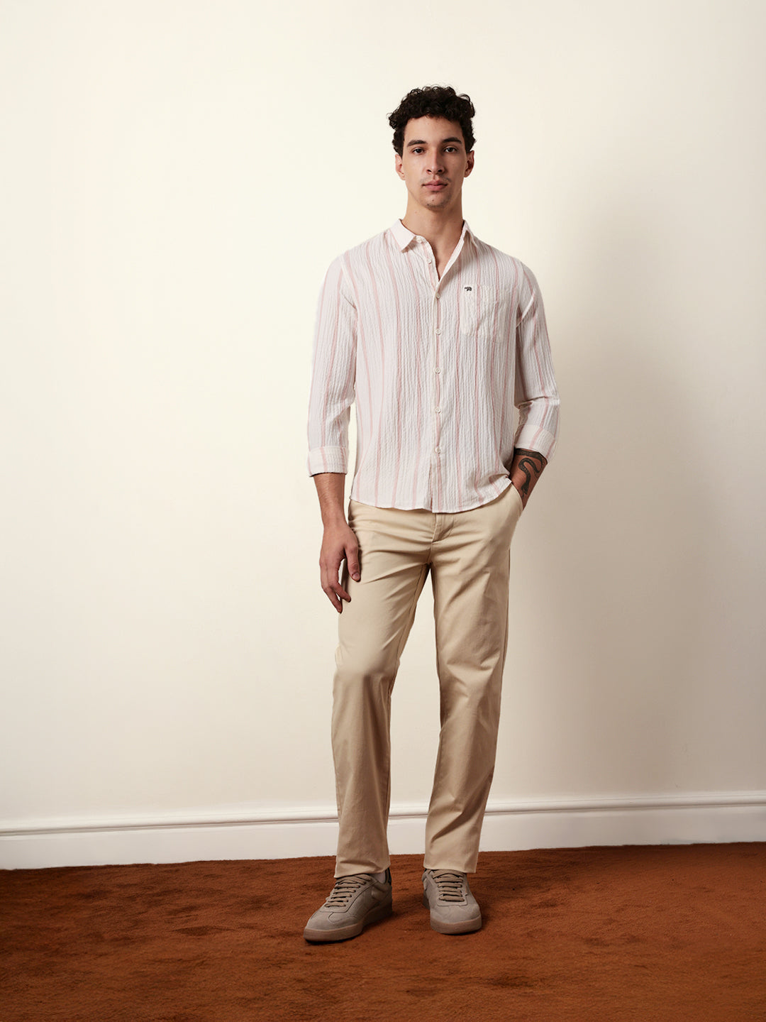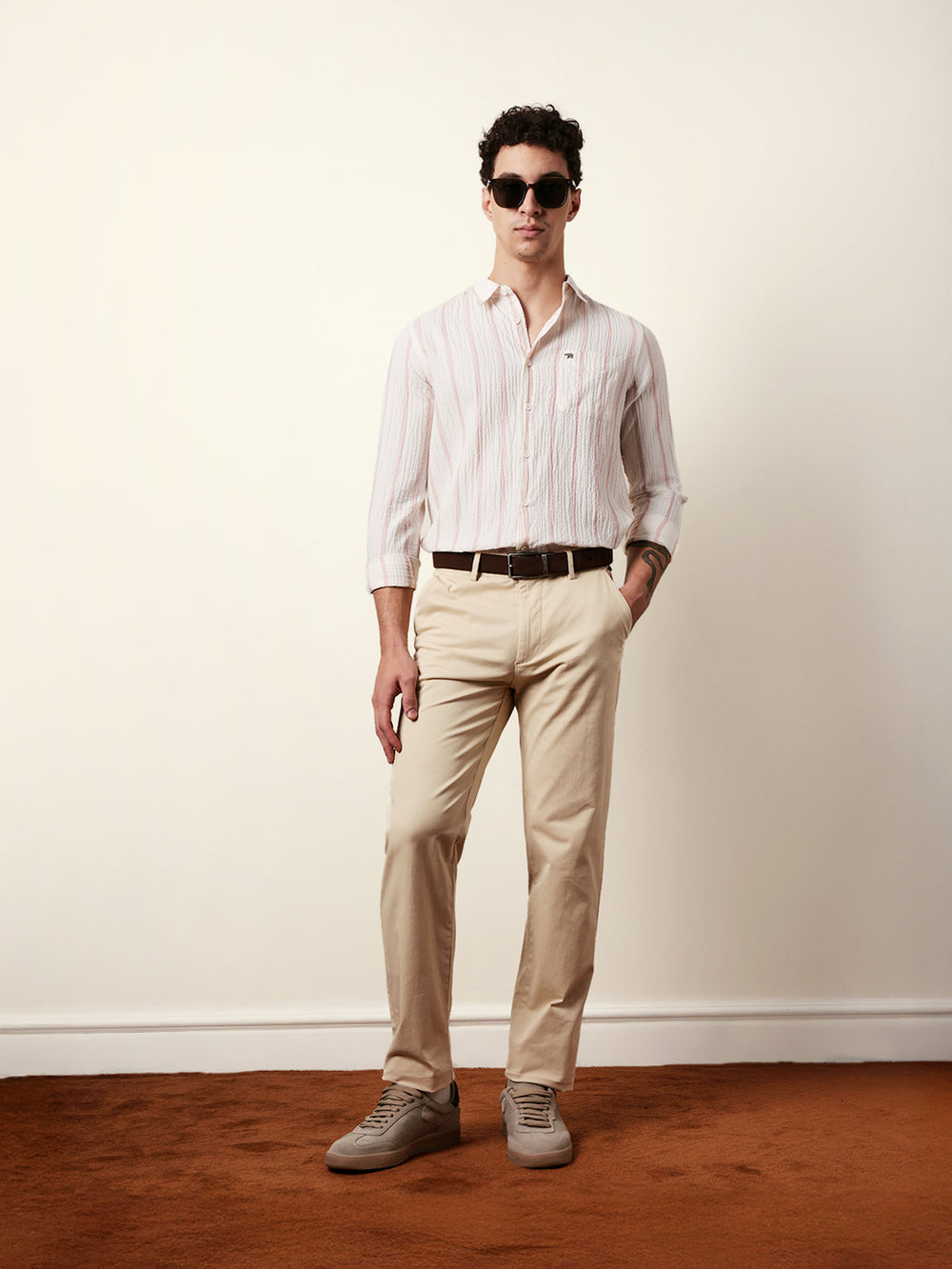 Off white with Pink Vertical Textured Stripe Regular Fit Casual Shirt