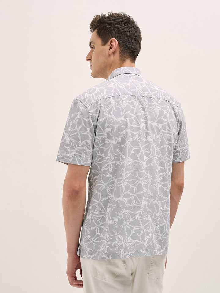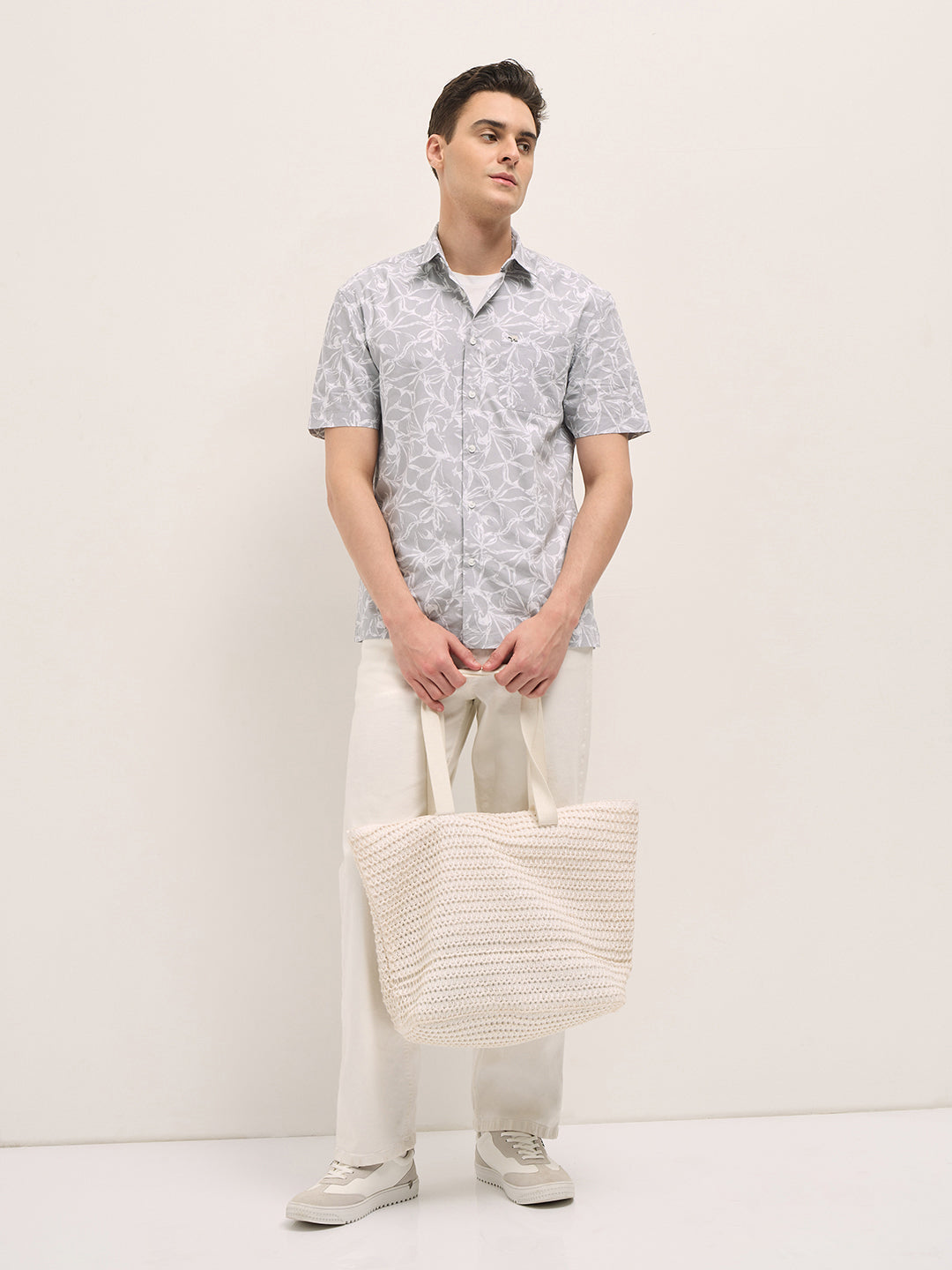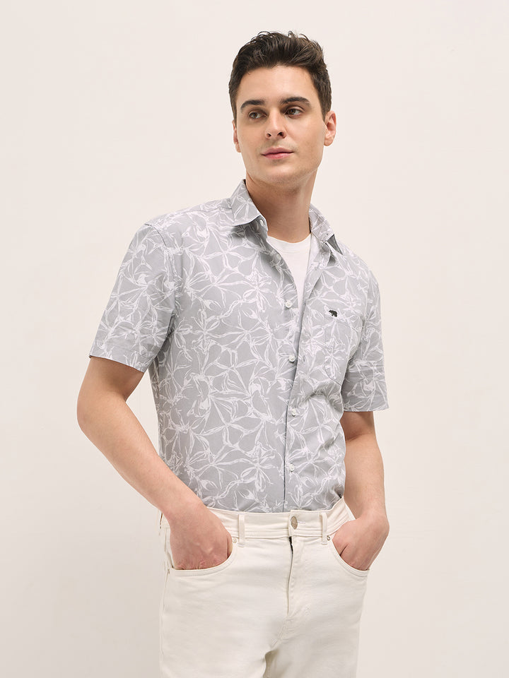 Shop Grey with White Floral Print Relax Fit Casual shirt Online.