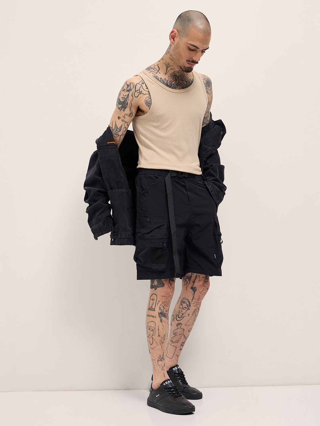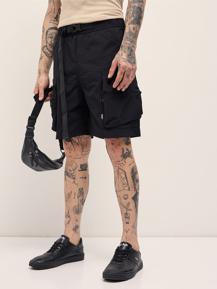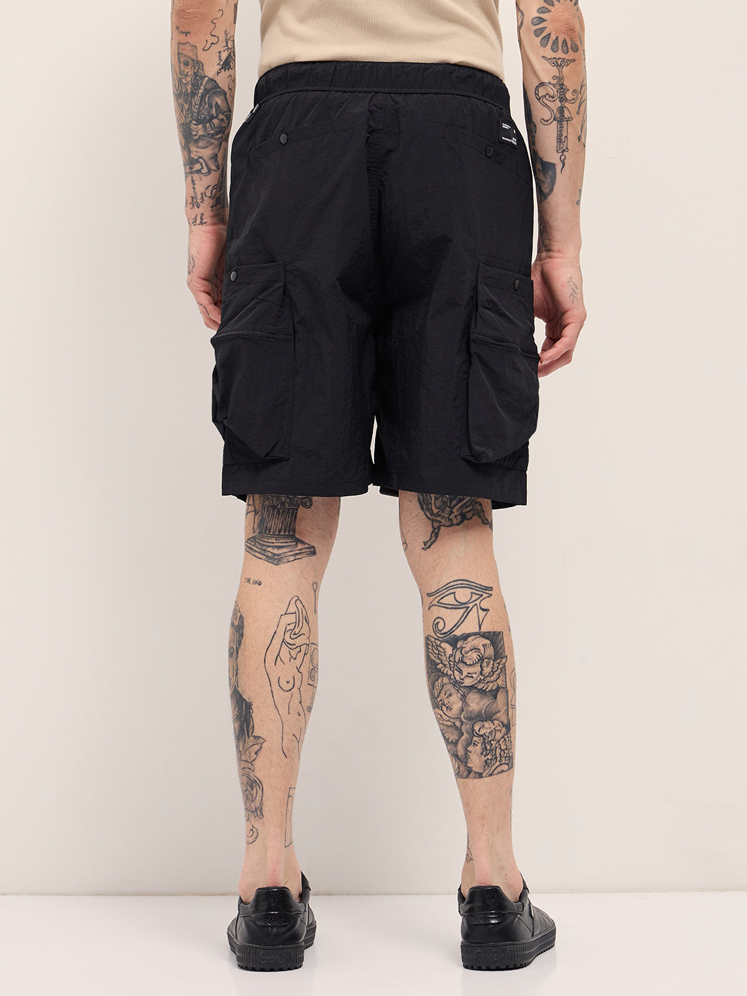 Shop Black Solid Cargo Shorts with Multiple Utility Pockets Online