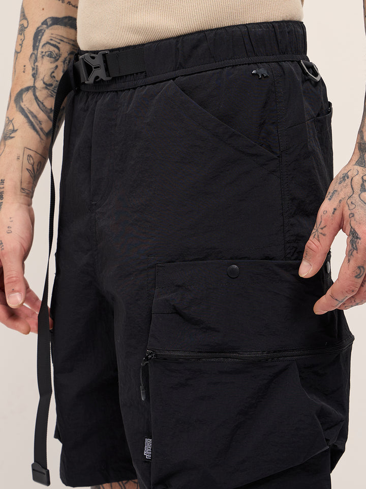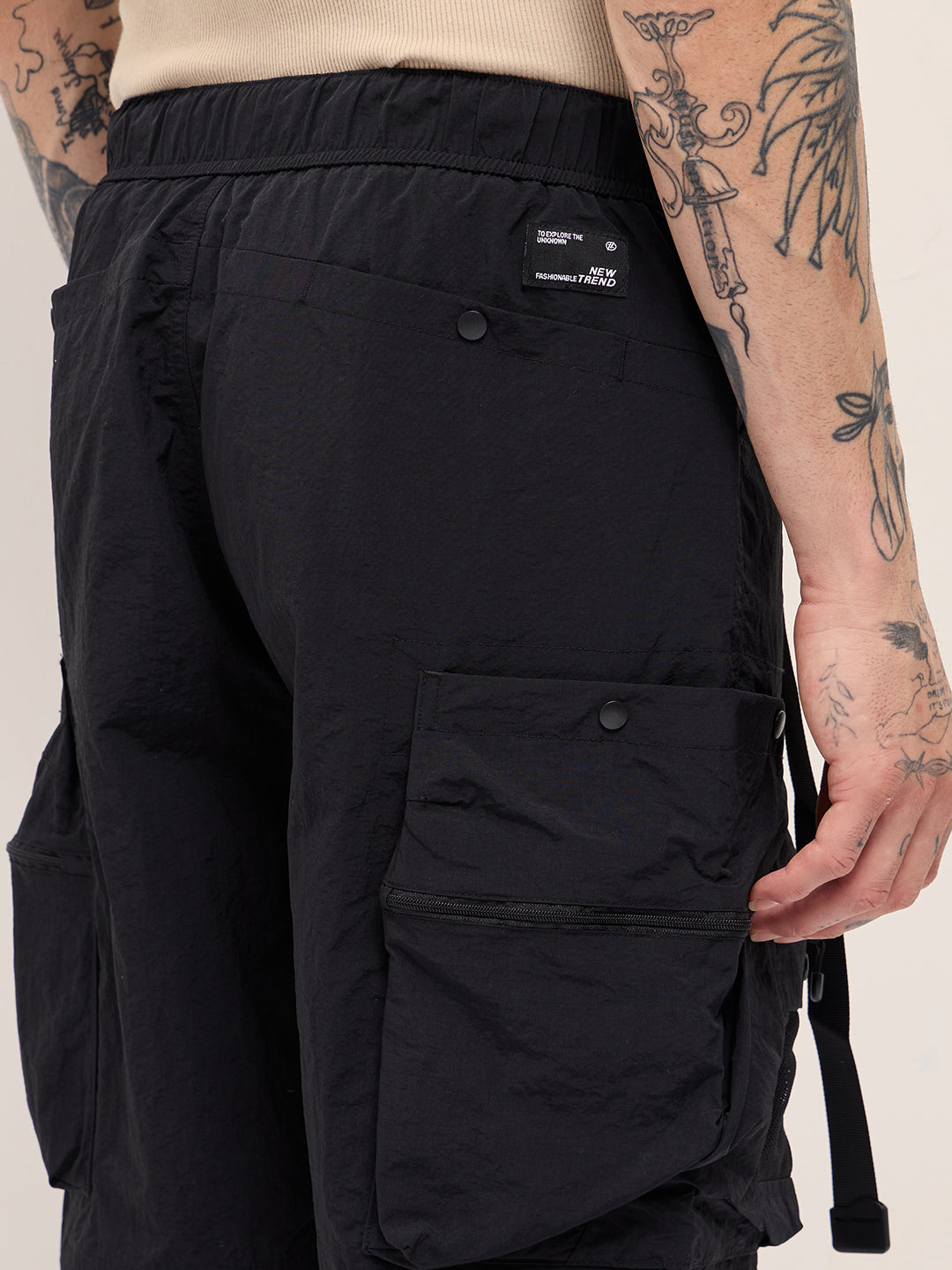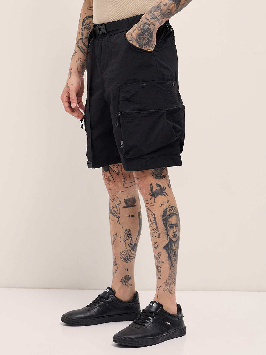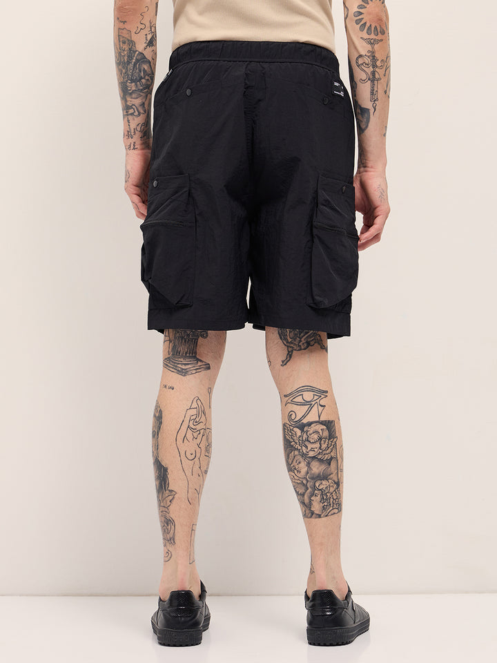 Black Solid Cargo Shorts with Multiple Utility Pockets
