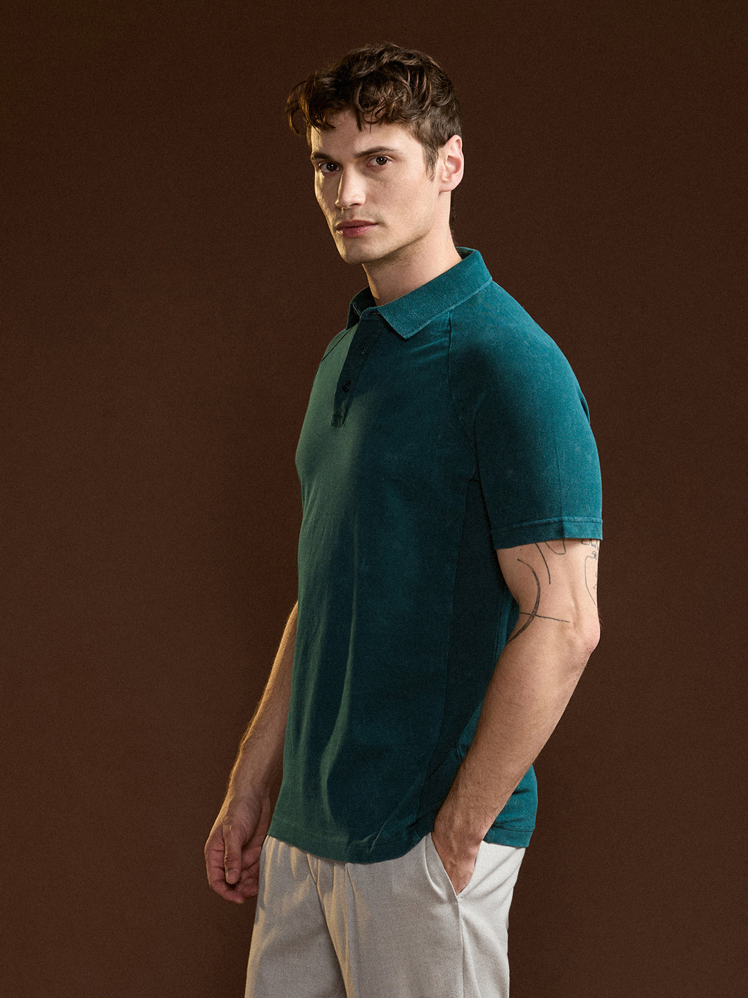Teal Solid Regular Fit Polo Collar T-shirt