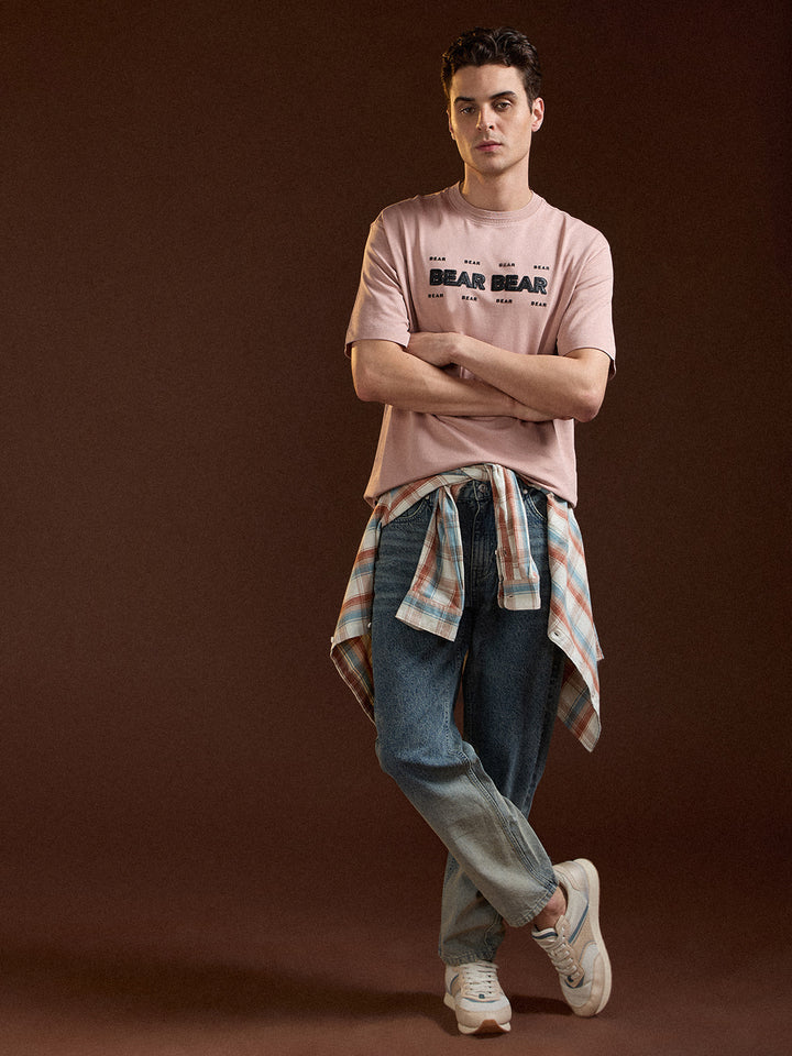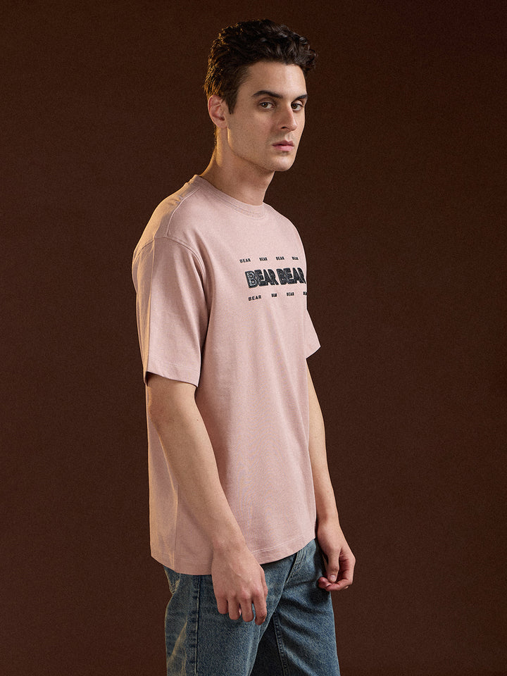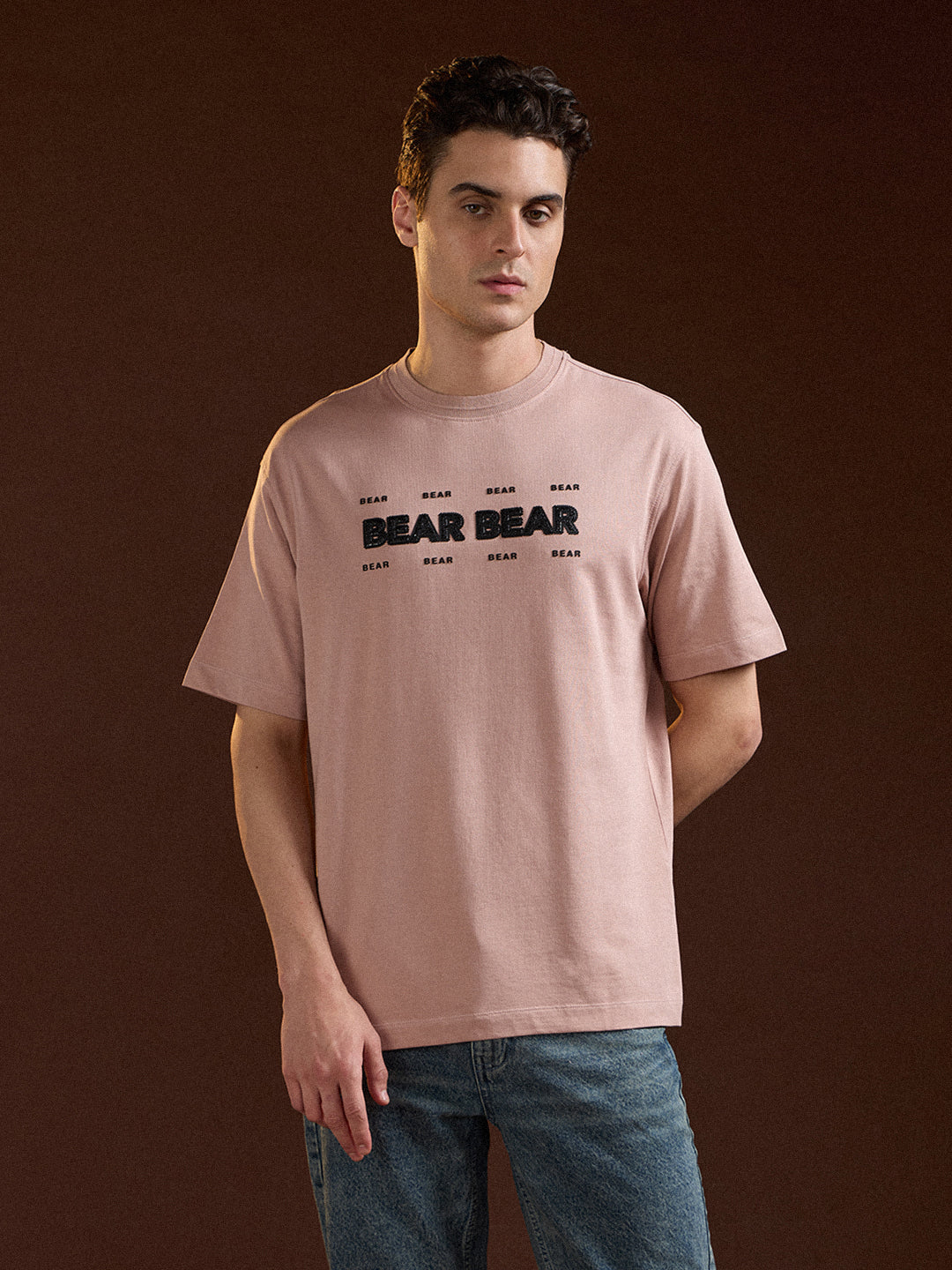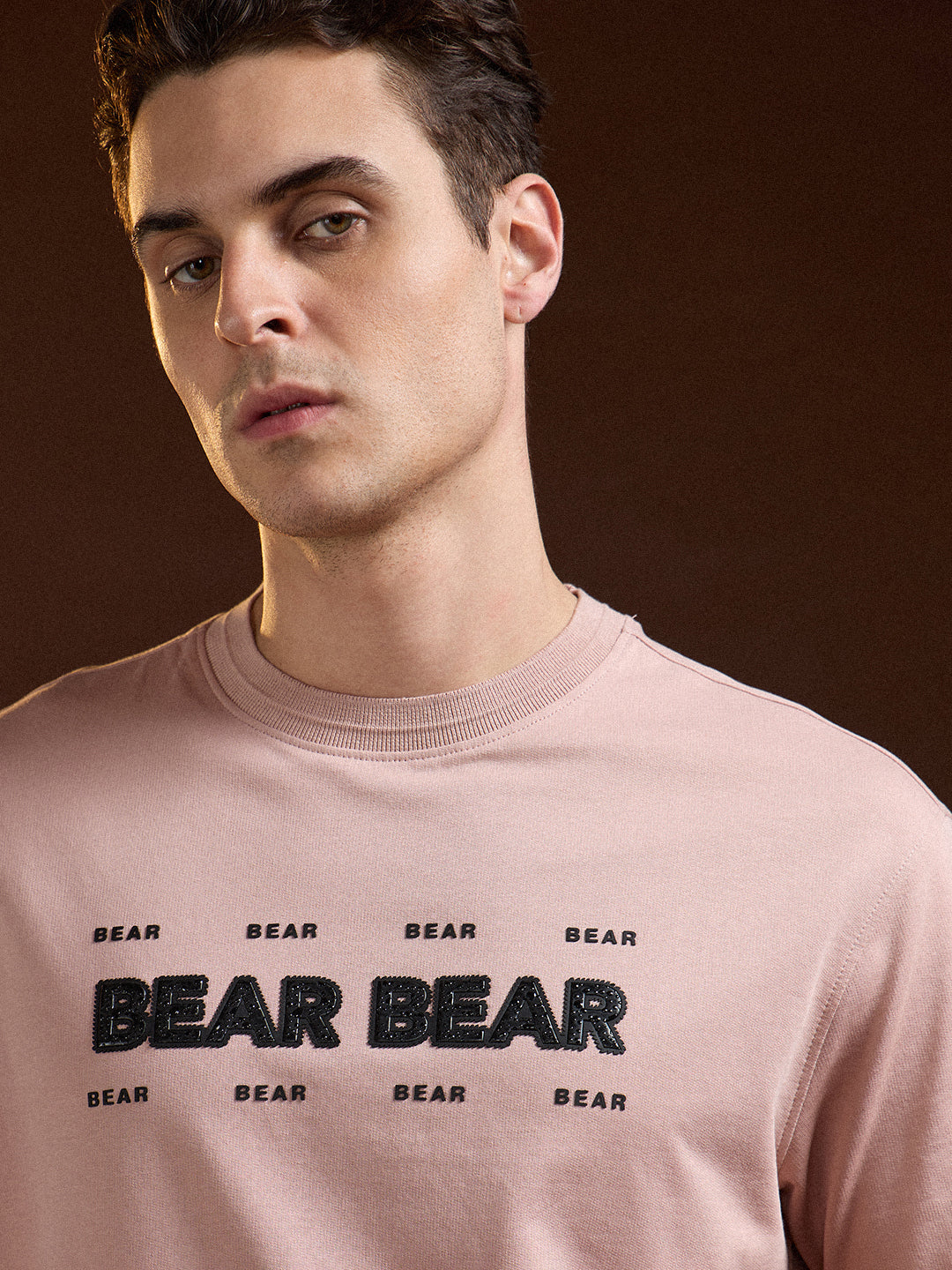 Pink Oversize Repeated "BEAR" Graphic Print Crew Neck T-shirt