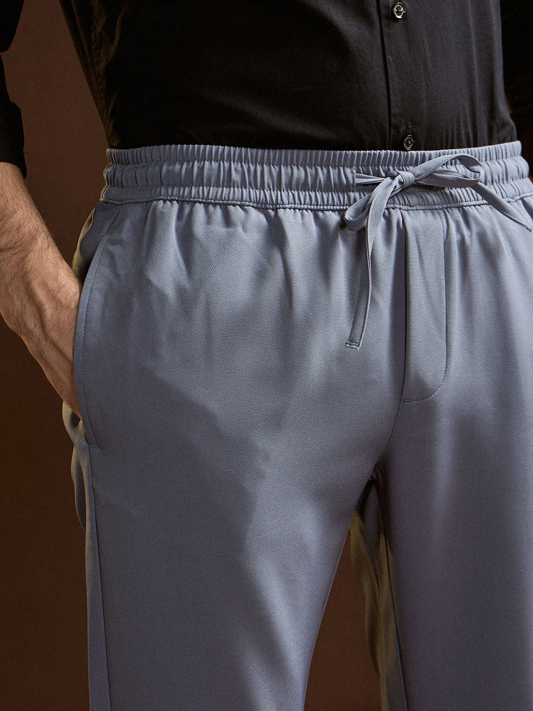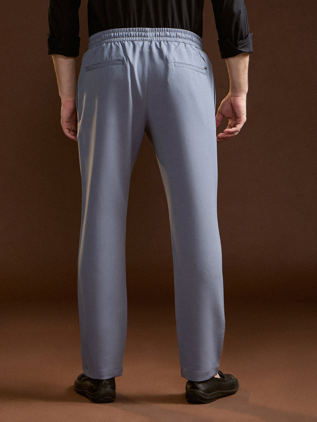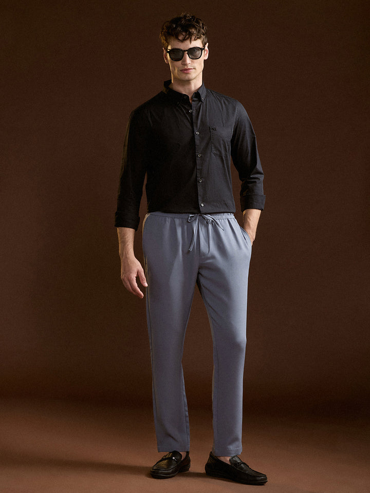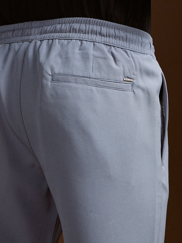 Light Blue Slim Fit Formal Trouser with Elastic Waistband