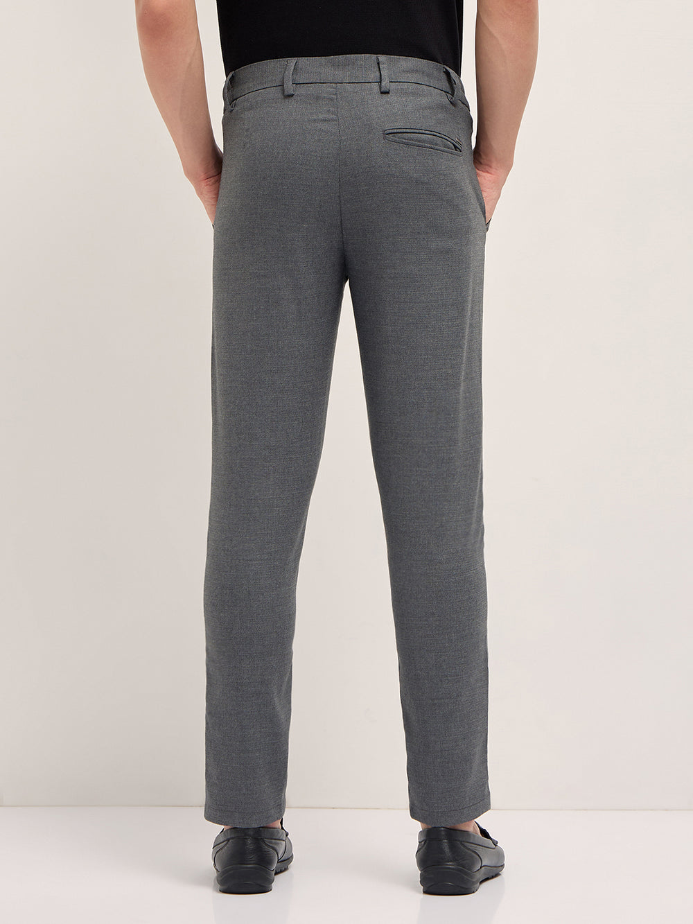Grey Slim Fit Formal Trousers with Side-Elasticated Waistband