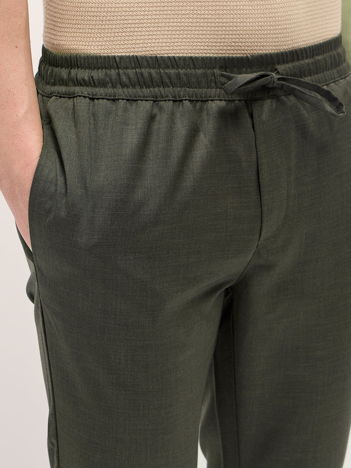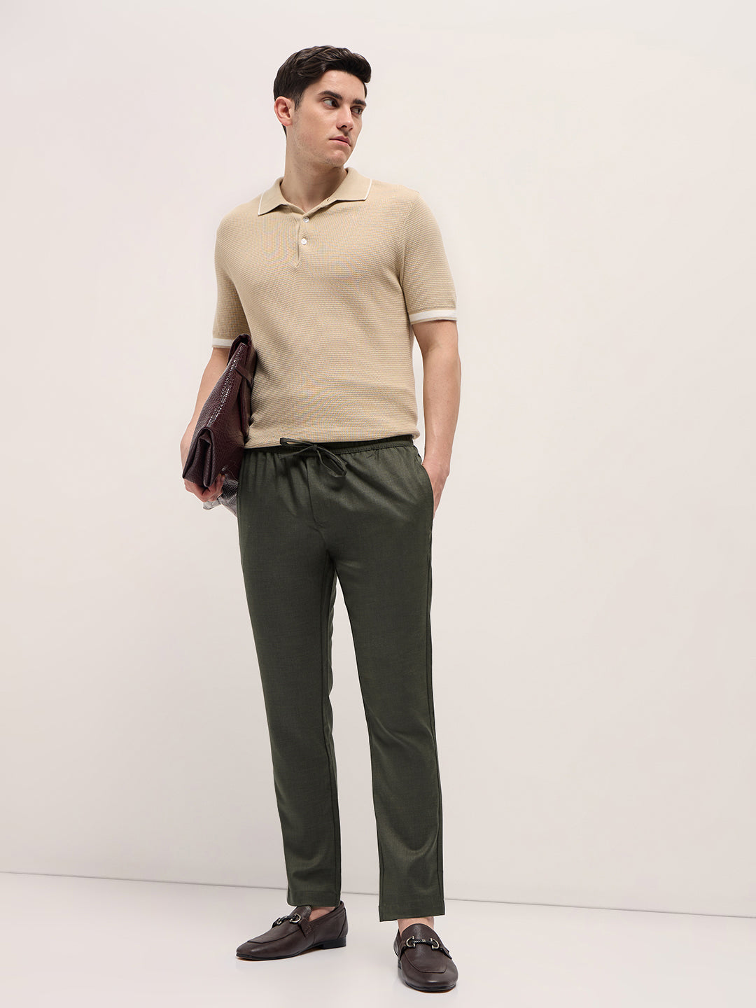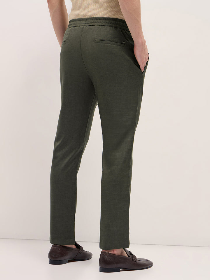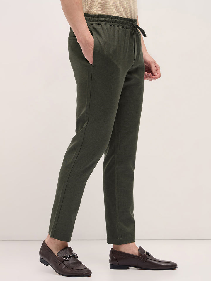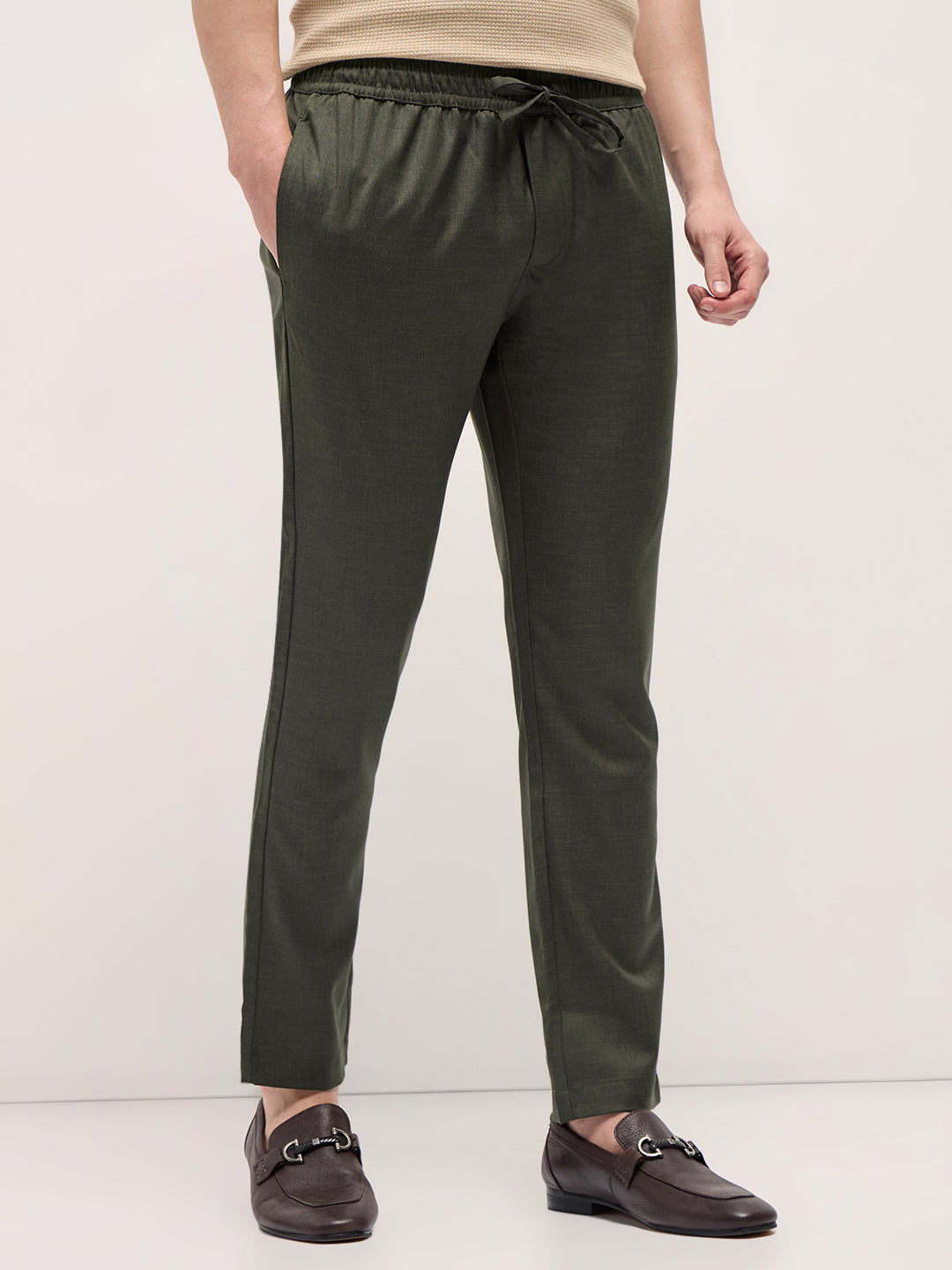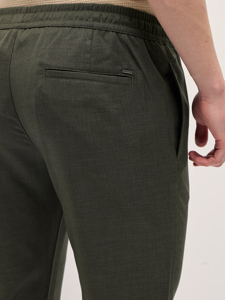 Olive Green Slim Fit Formal Trouser with Elastic Waistband