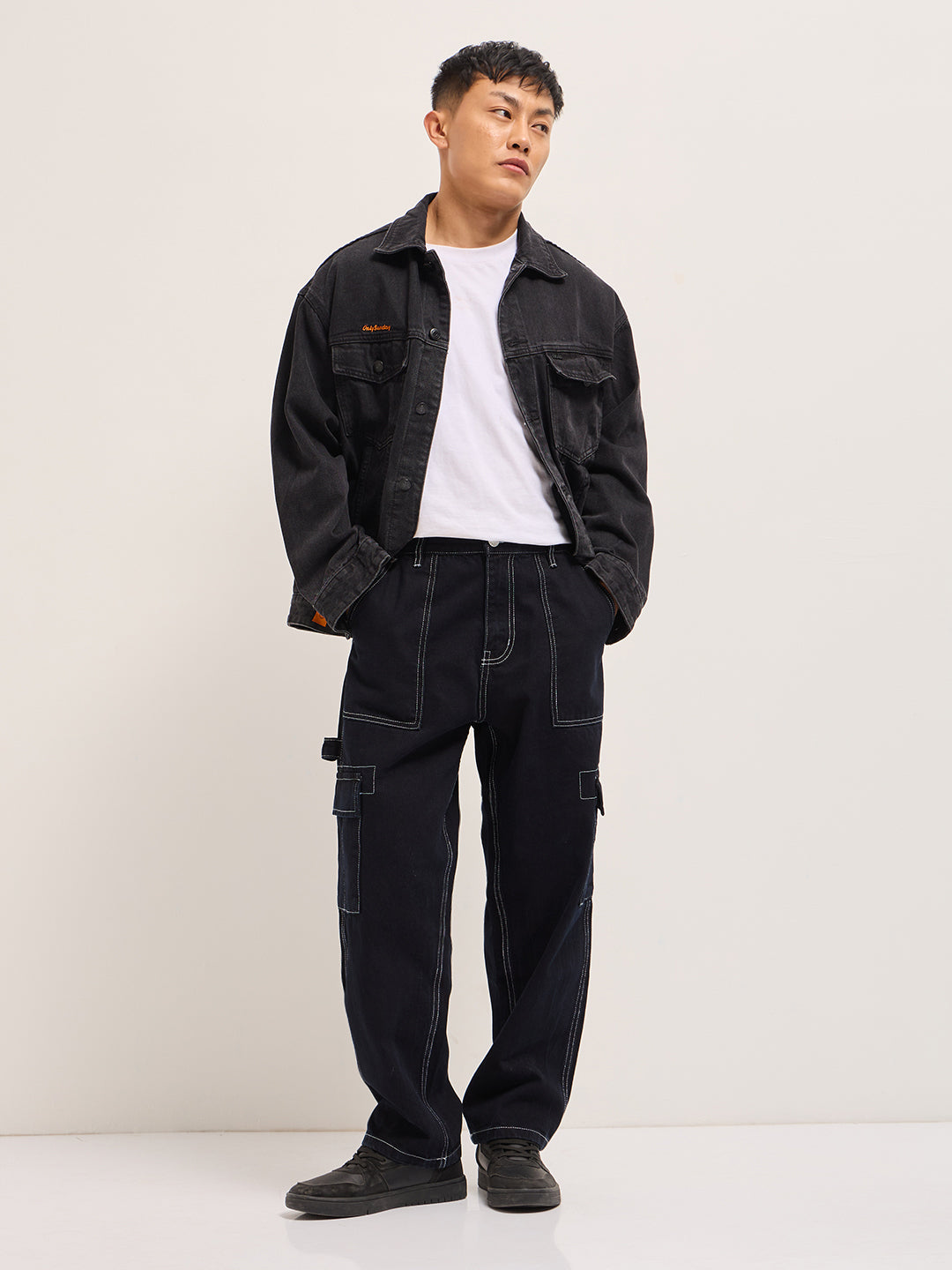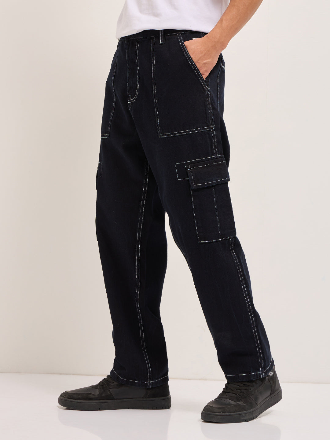 Shop Black Mid-Rise Baggy Fit Cargo Jeans Online