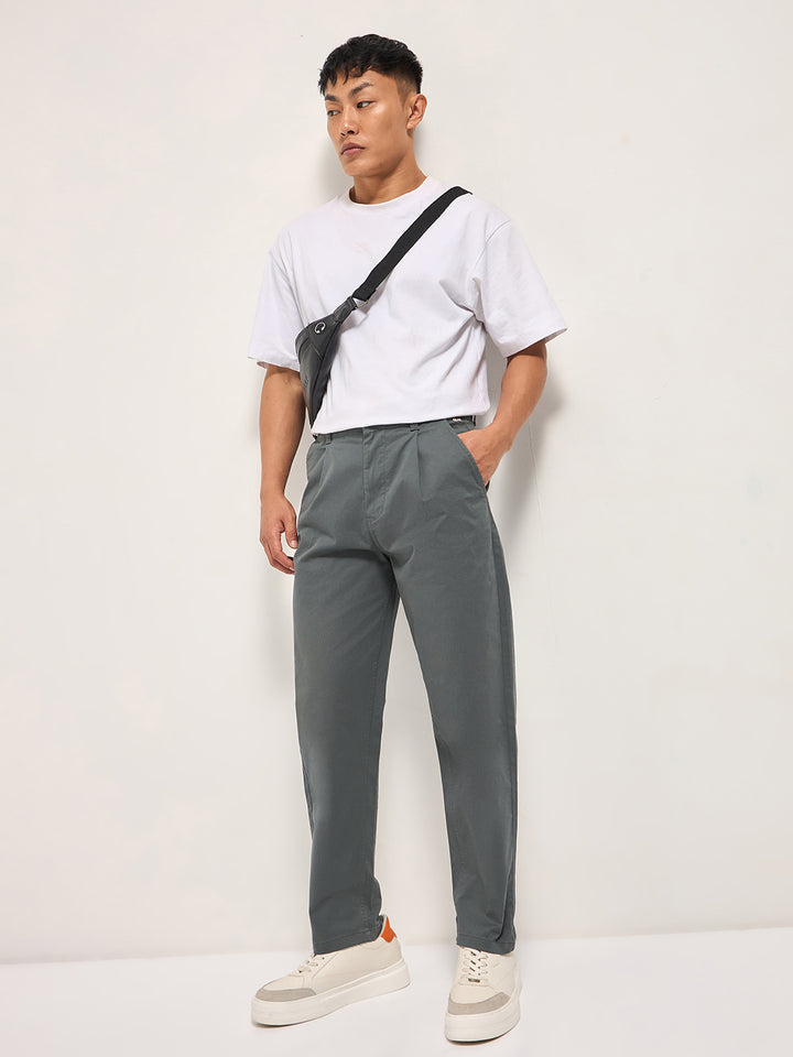 Grey Solid Cropped Carrot Fit Casual Chino Trouser