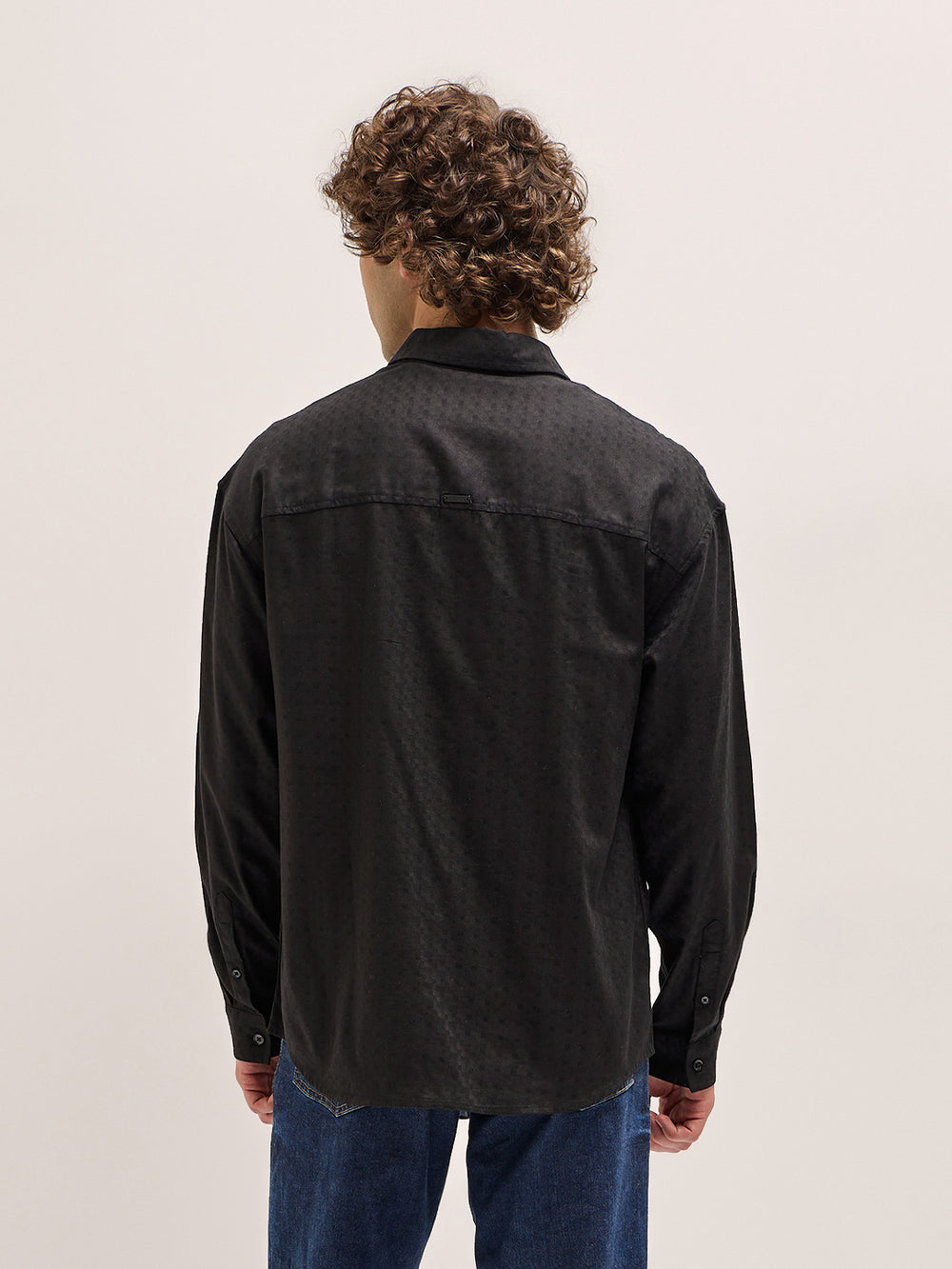 Shop Classic Black Self Design Relax Fit Overshirt Online.