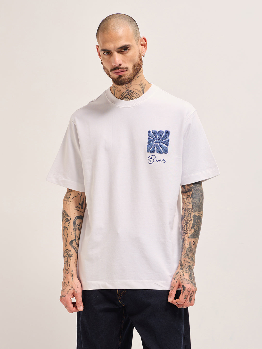 White Oversize T-Shirt with Chenille & Abstract Graphic Back Print