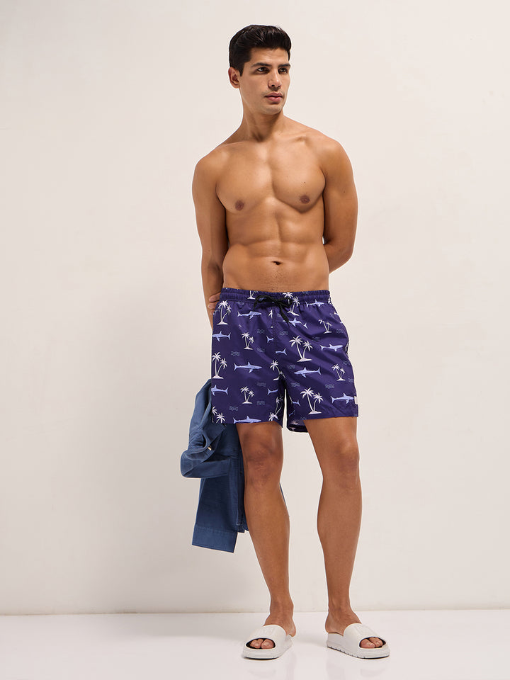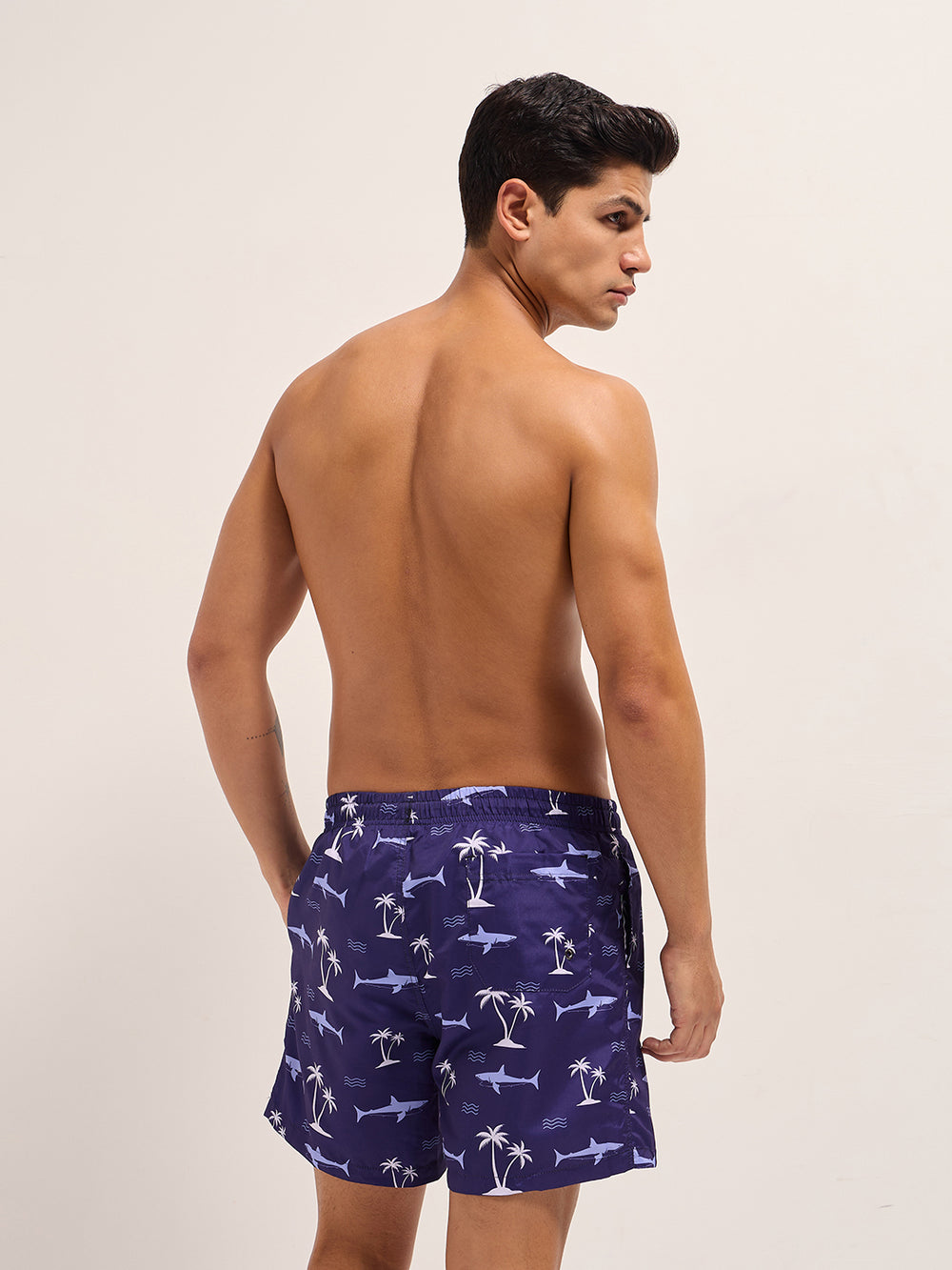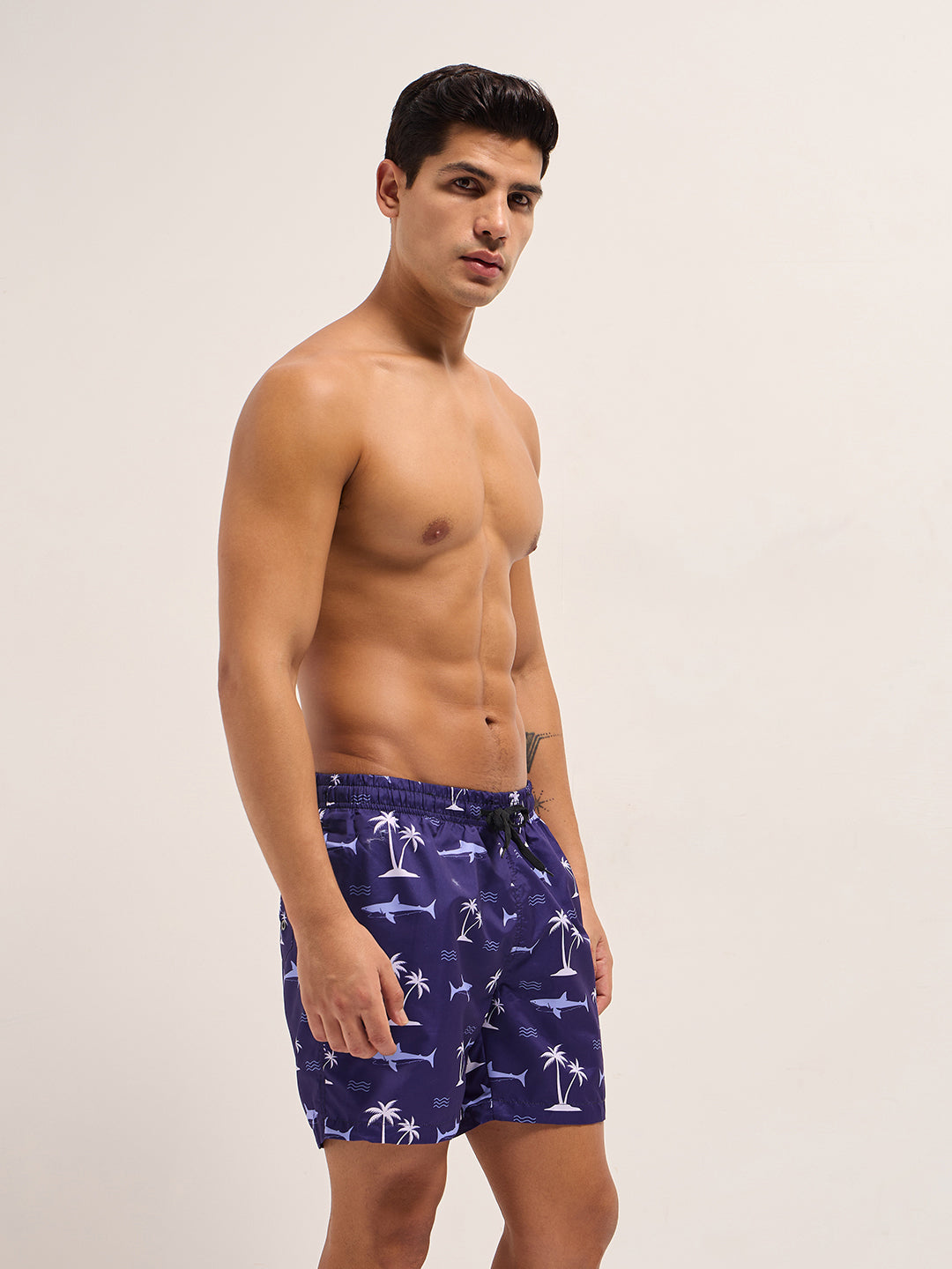 Blue Printed Swim Shorts with Elastic Waist – Perfect for Summer