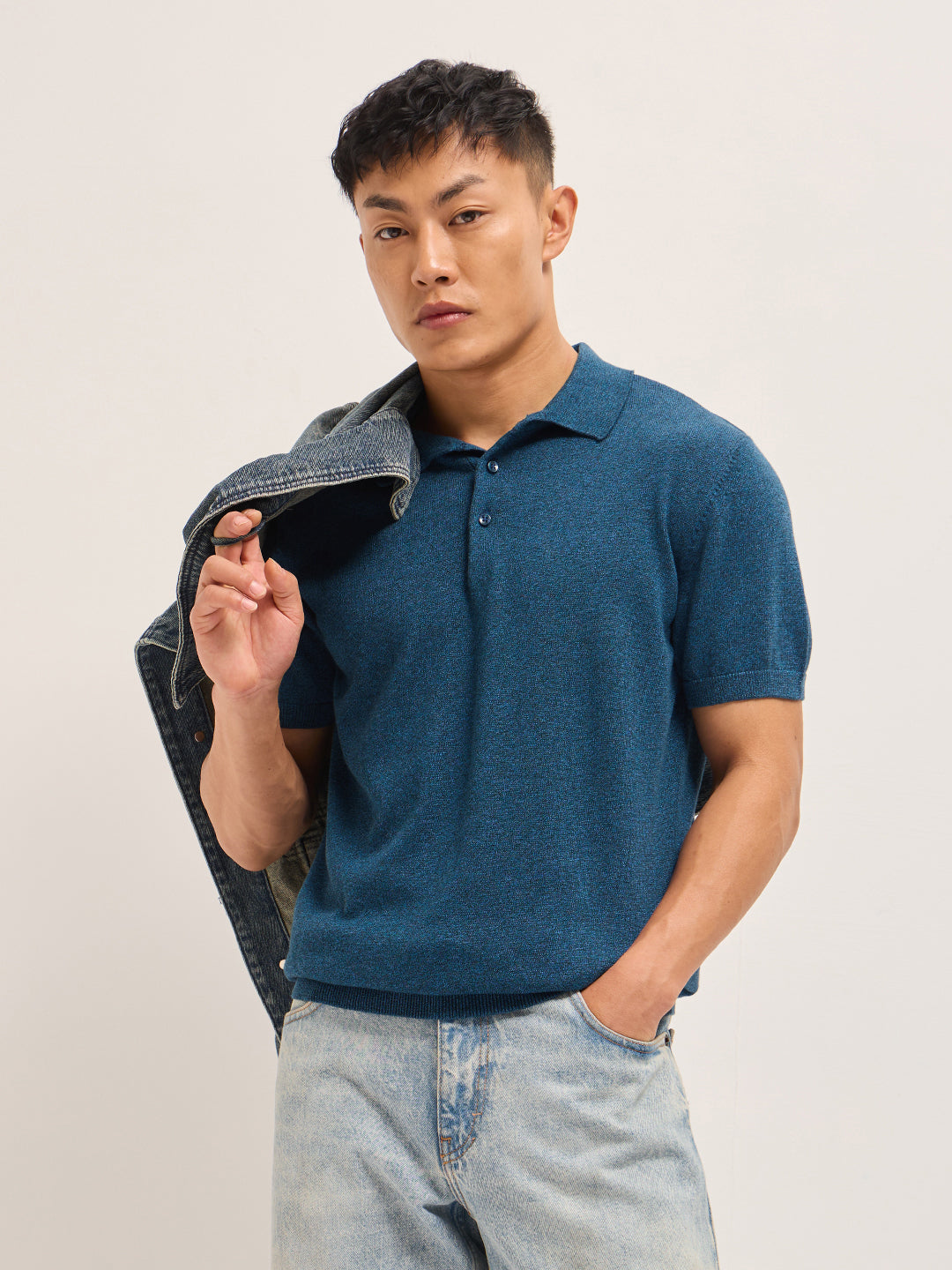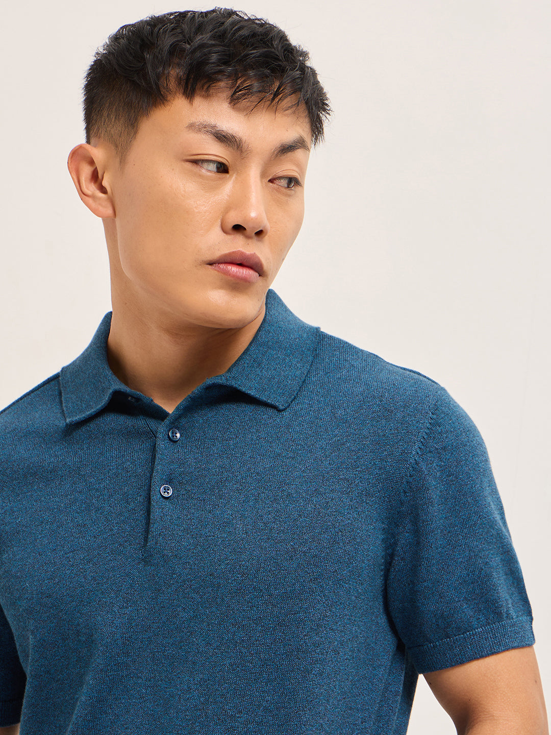 - Collar: Polo collar with button placket