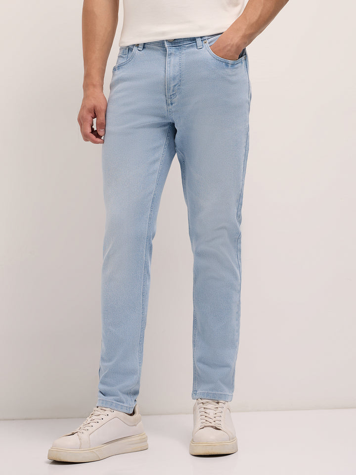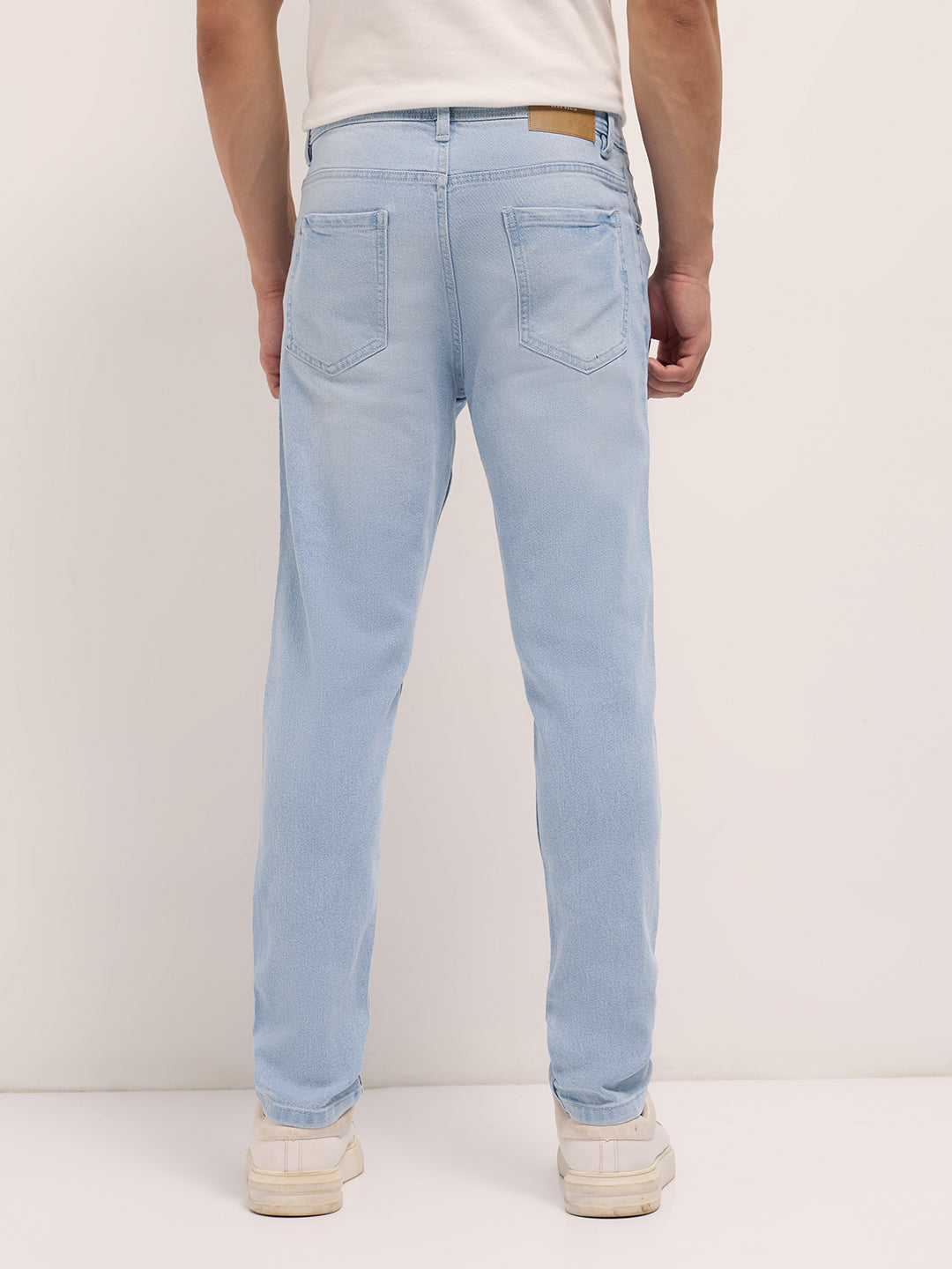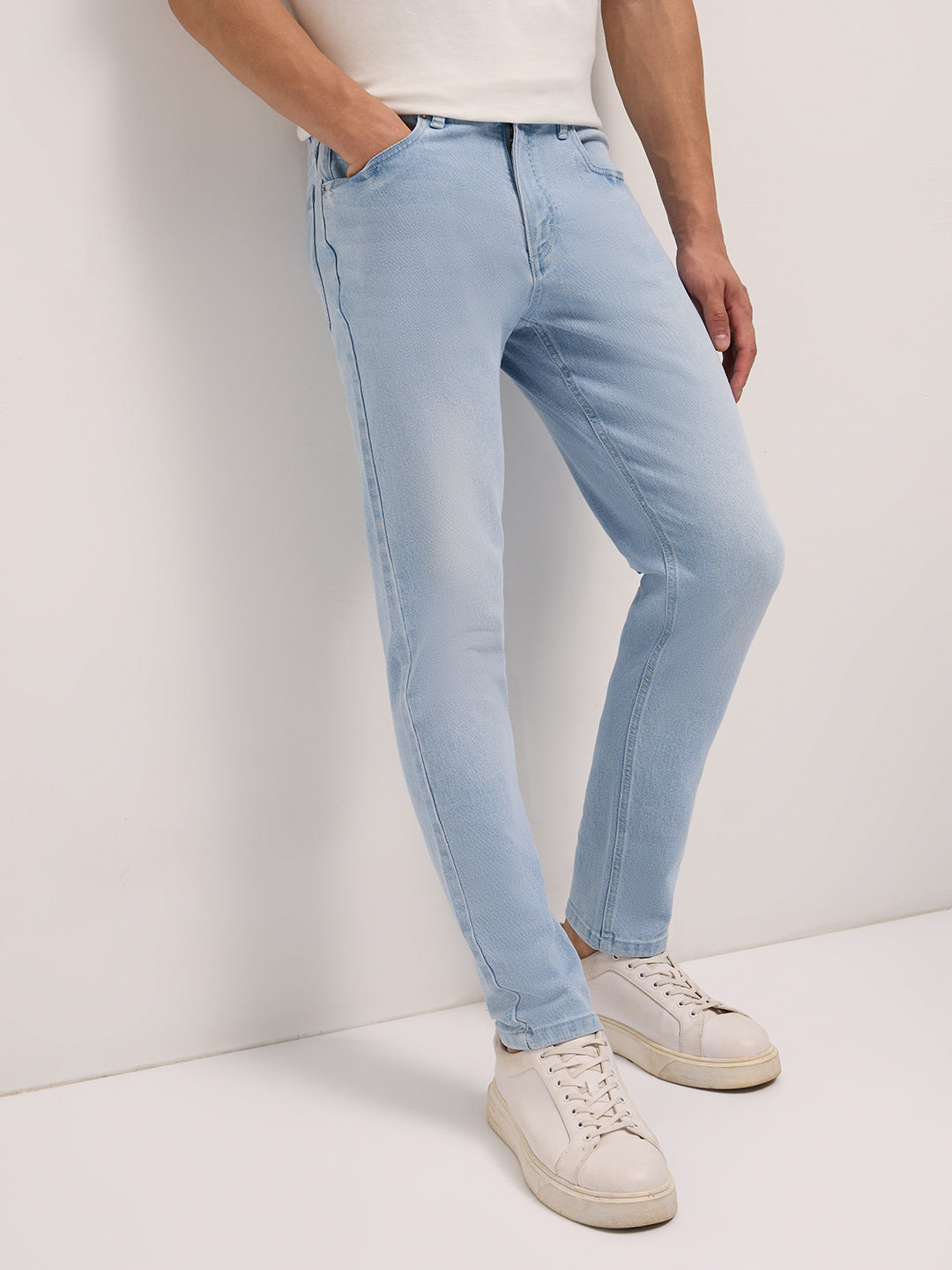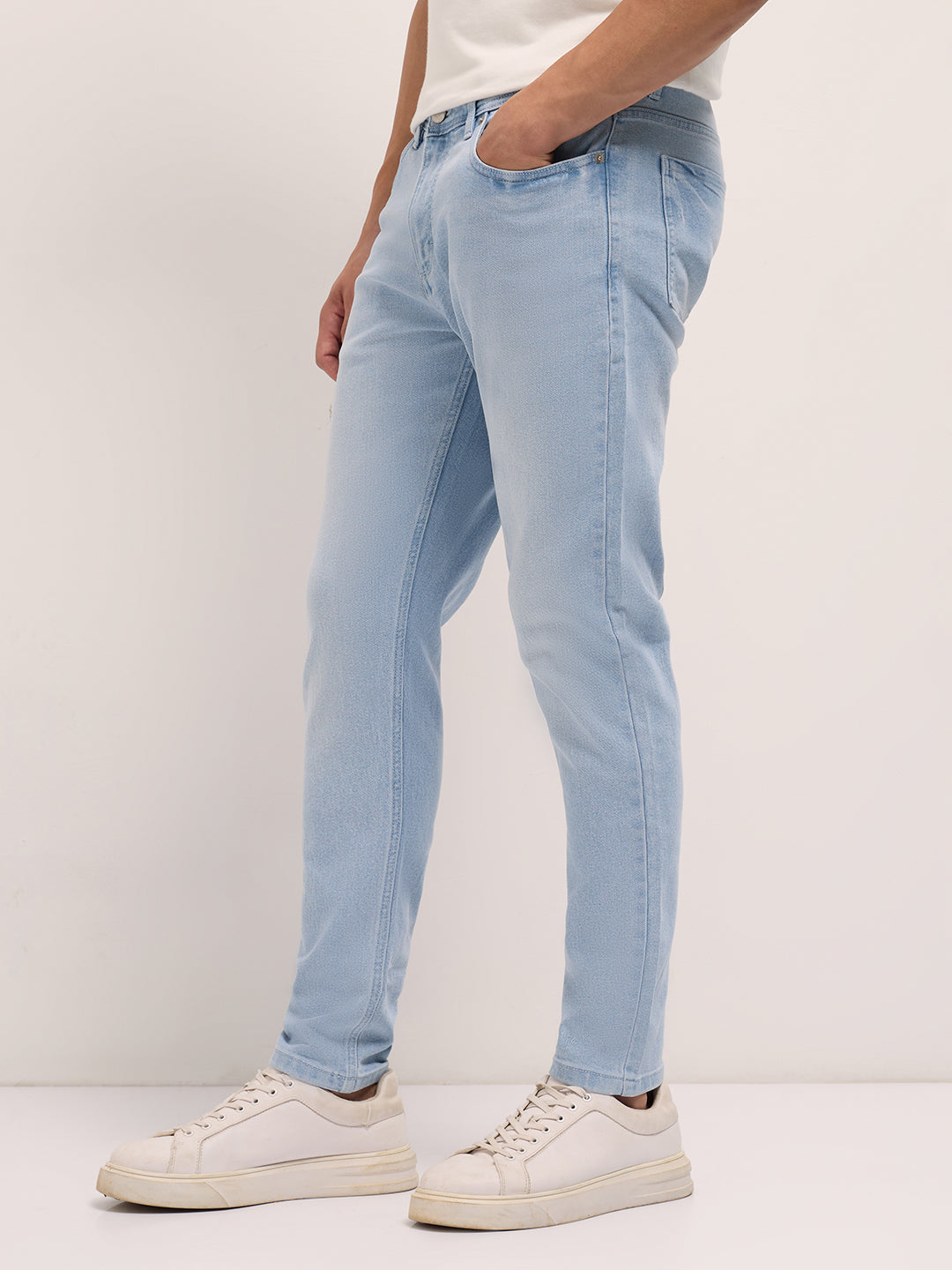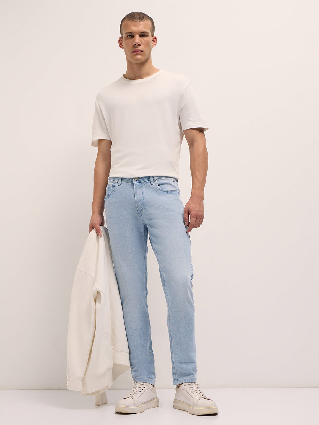 Light Blue Mid-Rise Slim Fit Jeans with Mid Fade