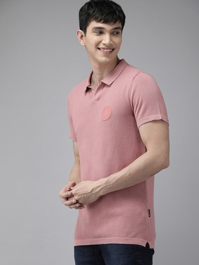 Ardor Edition Men Pink Flat Knit Polo Collar Cotton Slim Fit T-shirt