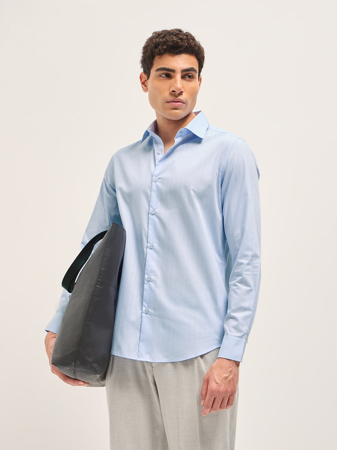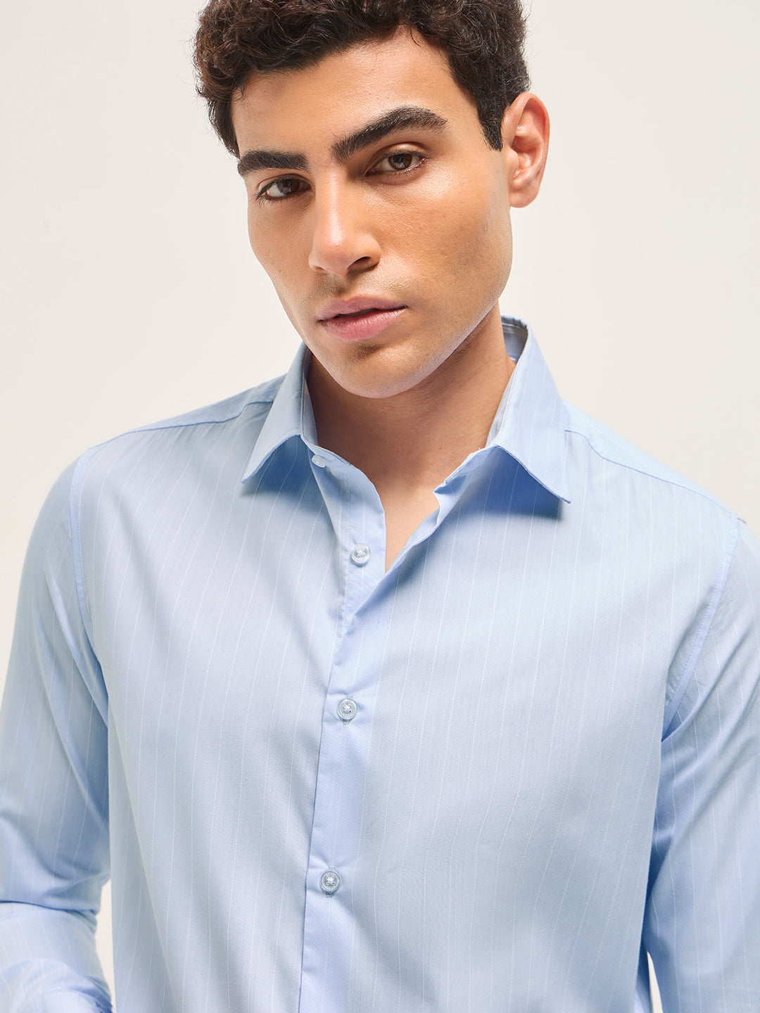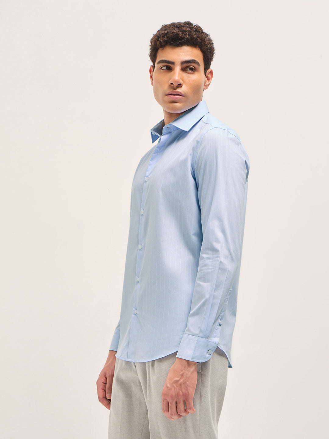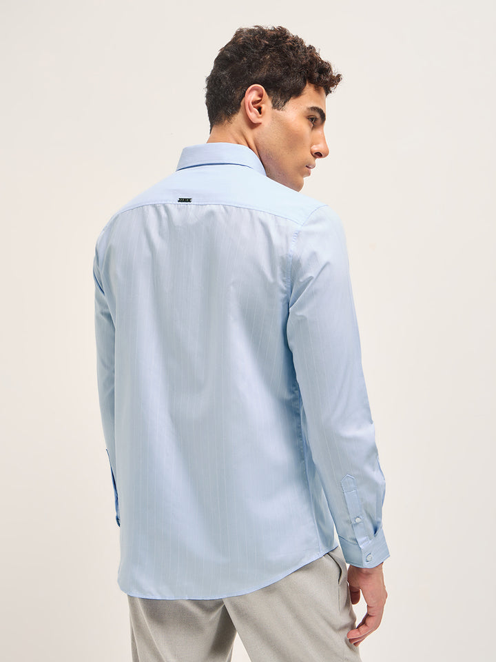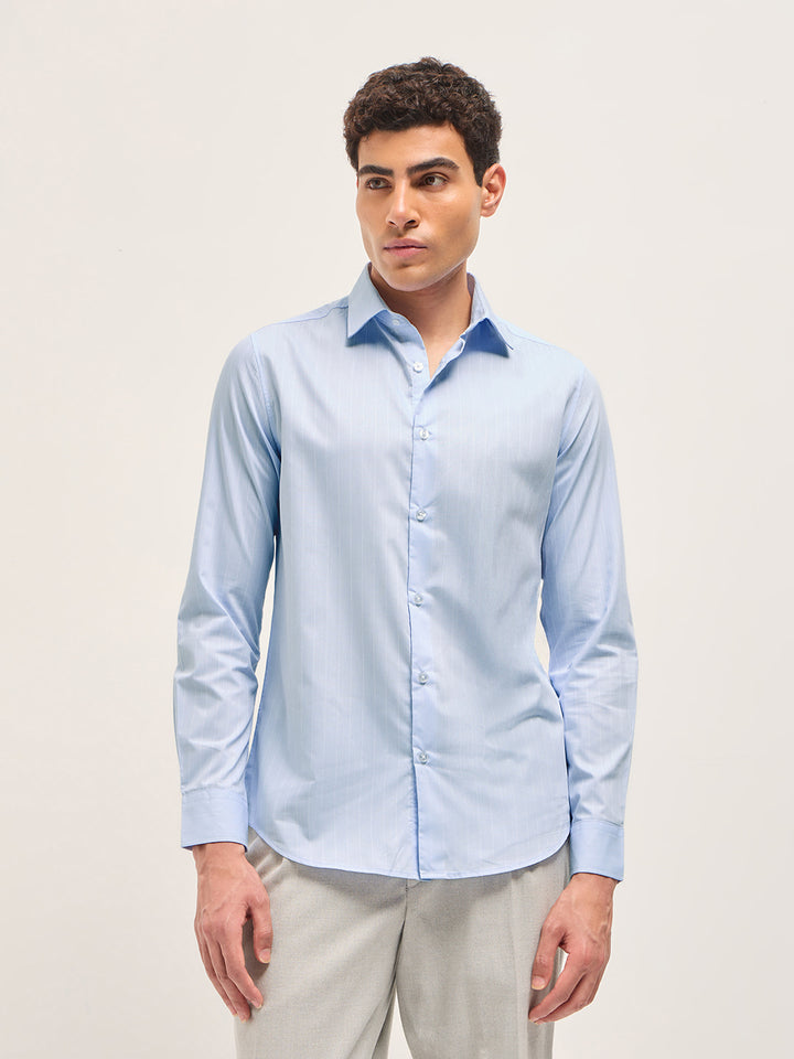 Light Blue Striped Tailored Fit Formal Shirt