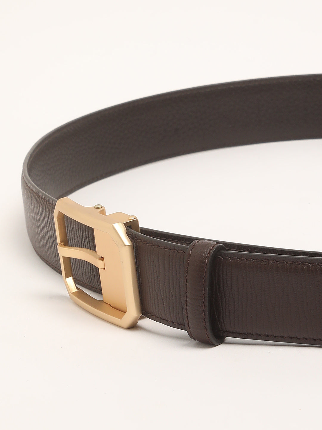 Men Brown Pure Leather Slim Width Casual Belt with Tang Closure