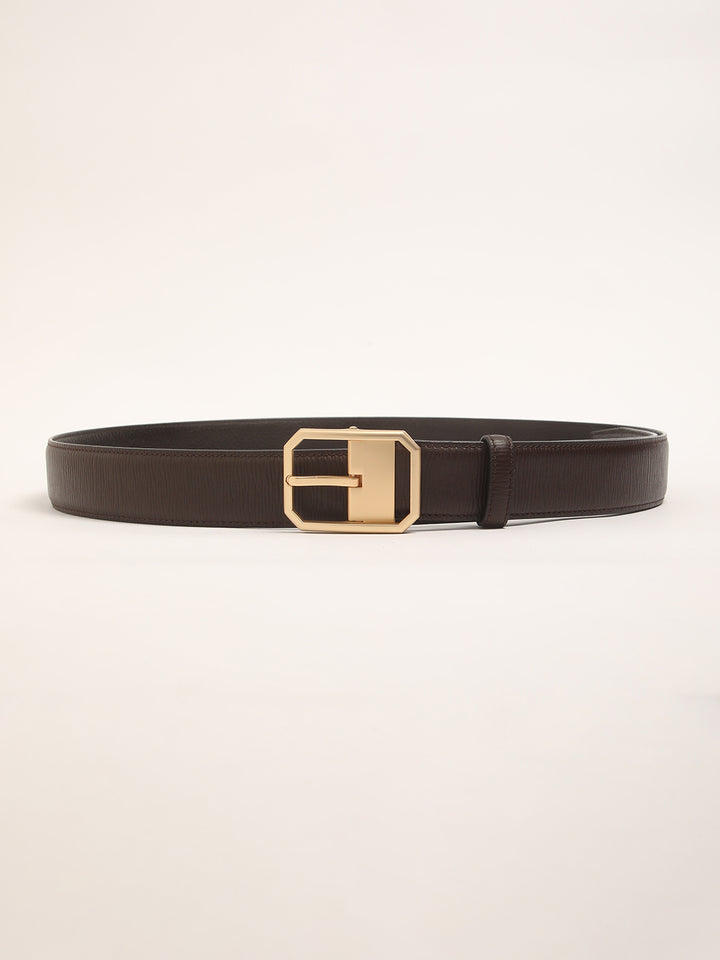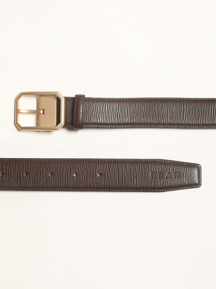 Shop Men Brown Pure Leather Slim Width Casual Belt with Tang Closure Online.