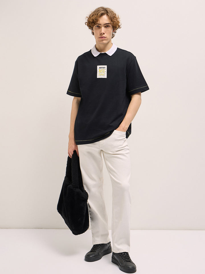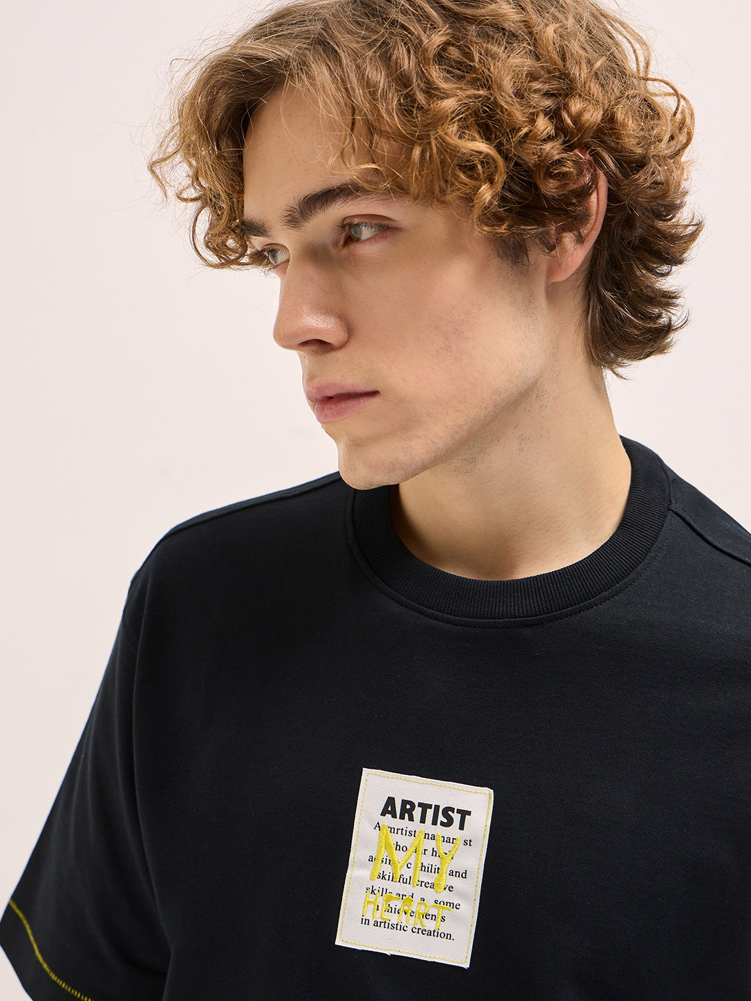 Black Oversize inspiring handwritten Graphic Print Crew Neck T-shirt