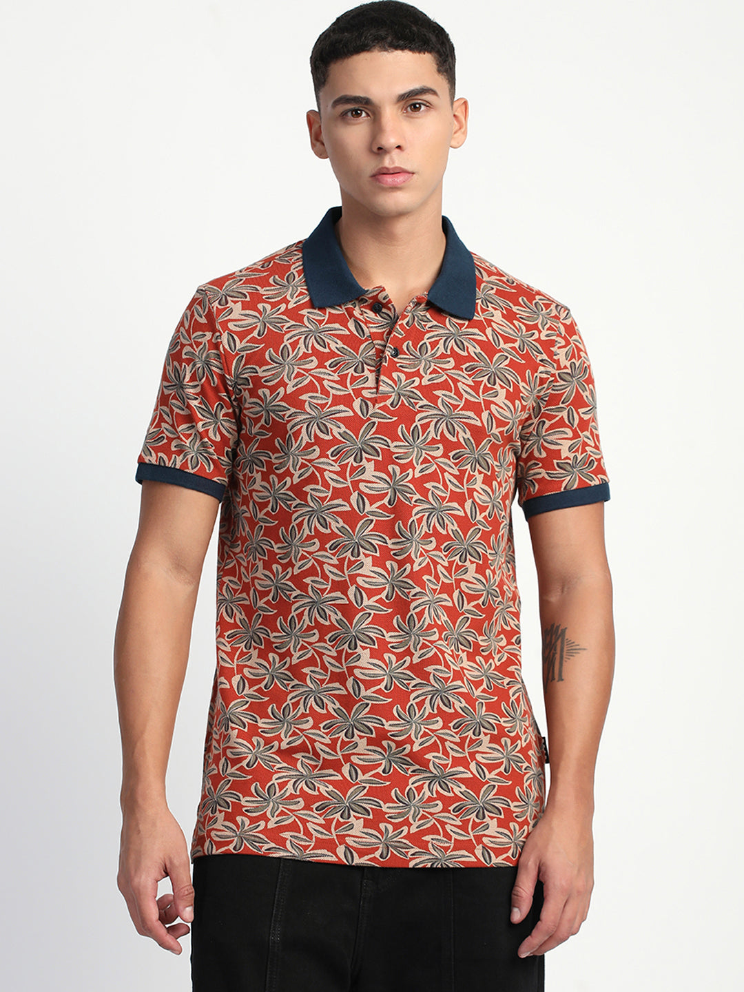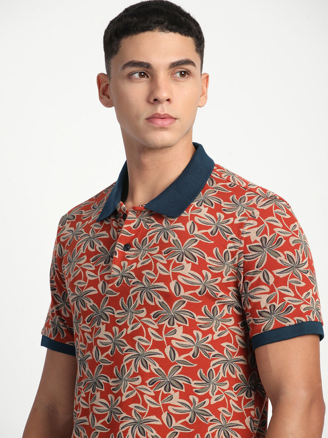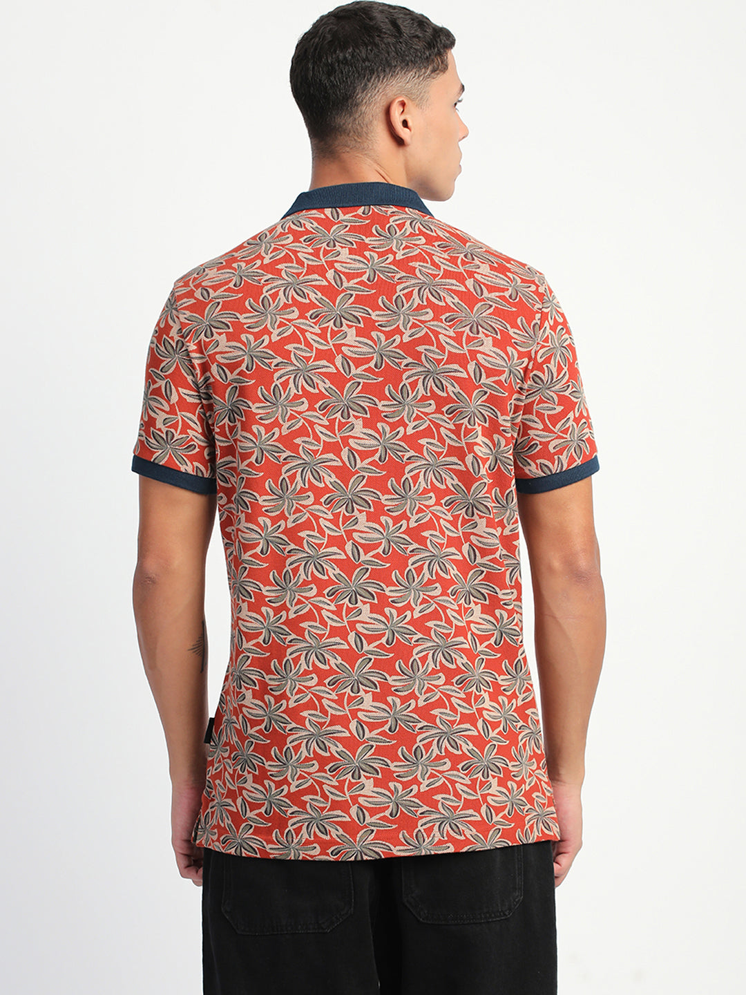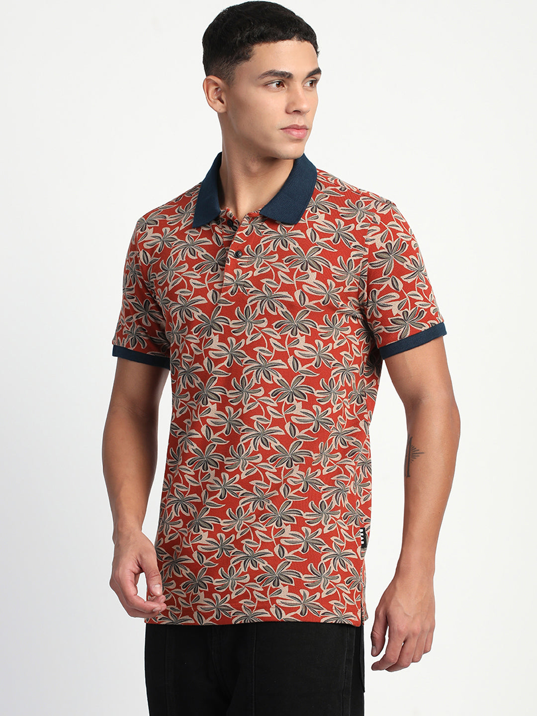 Multi-Color Printed Slim Fit Polo T-Shirt