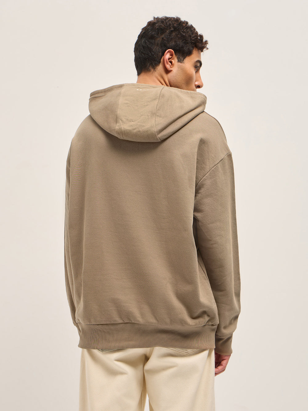 Beige Solid Relax Fit Hoodie