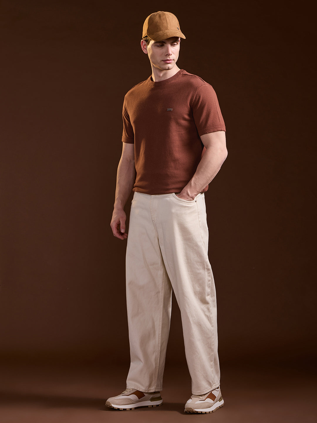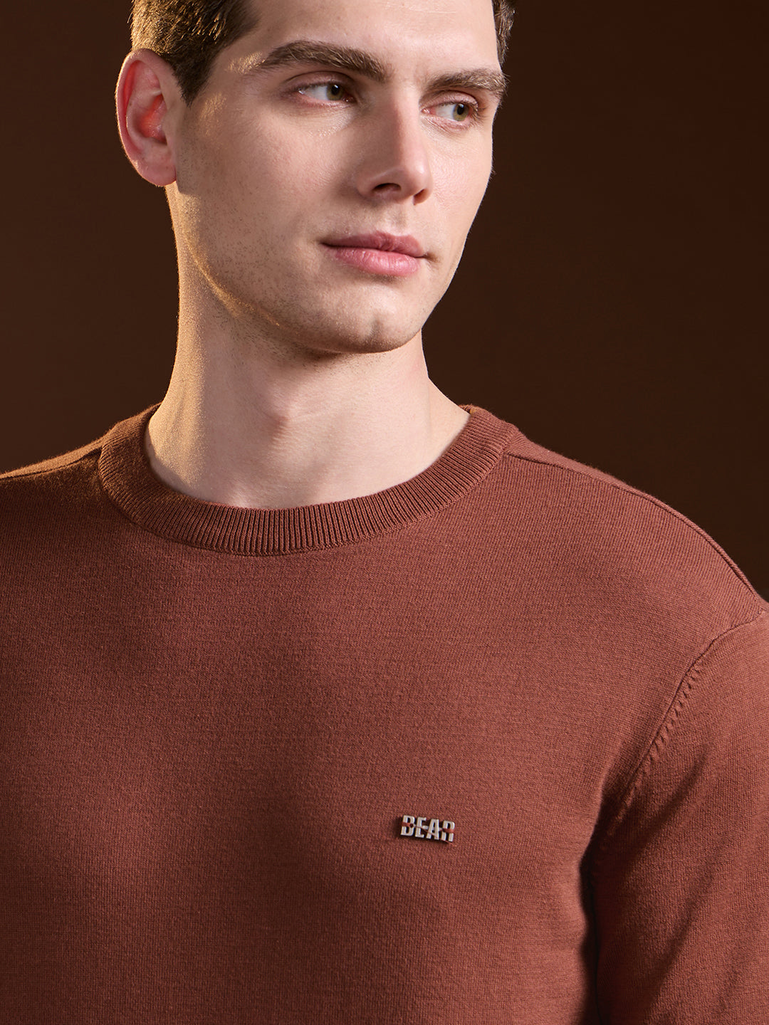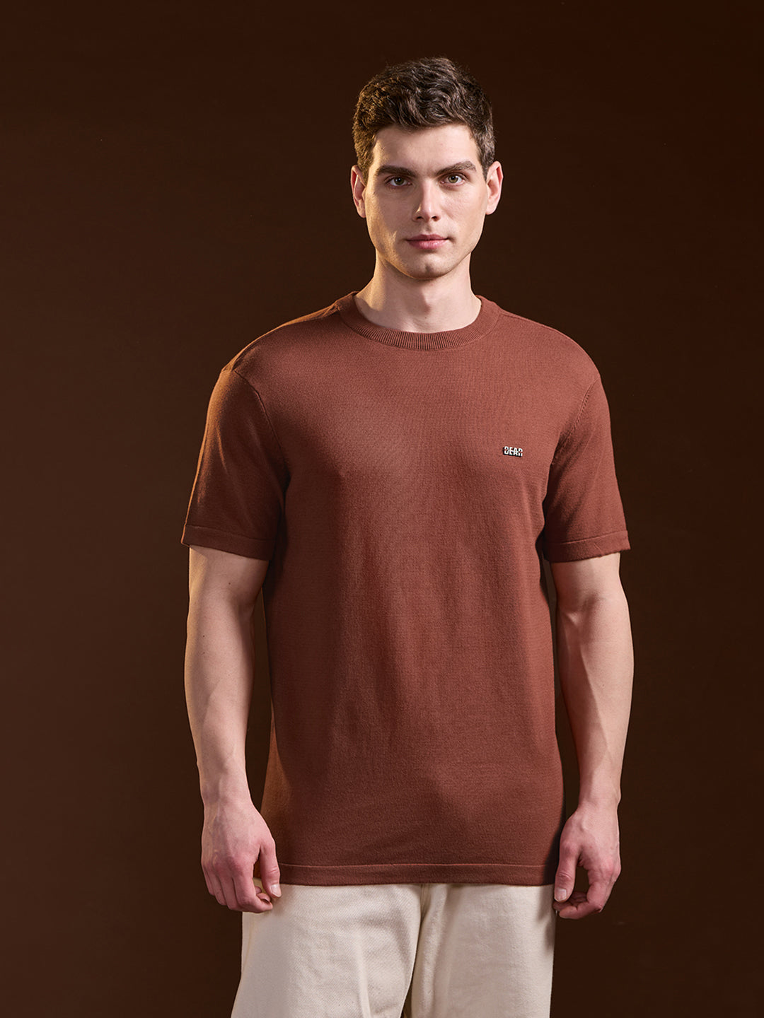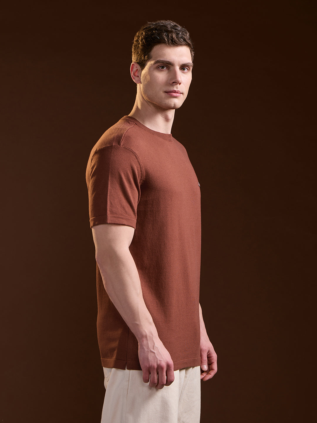 Rust Solid Regular Fit Ribbed Crew Neck T-shirt