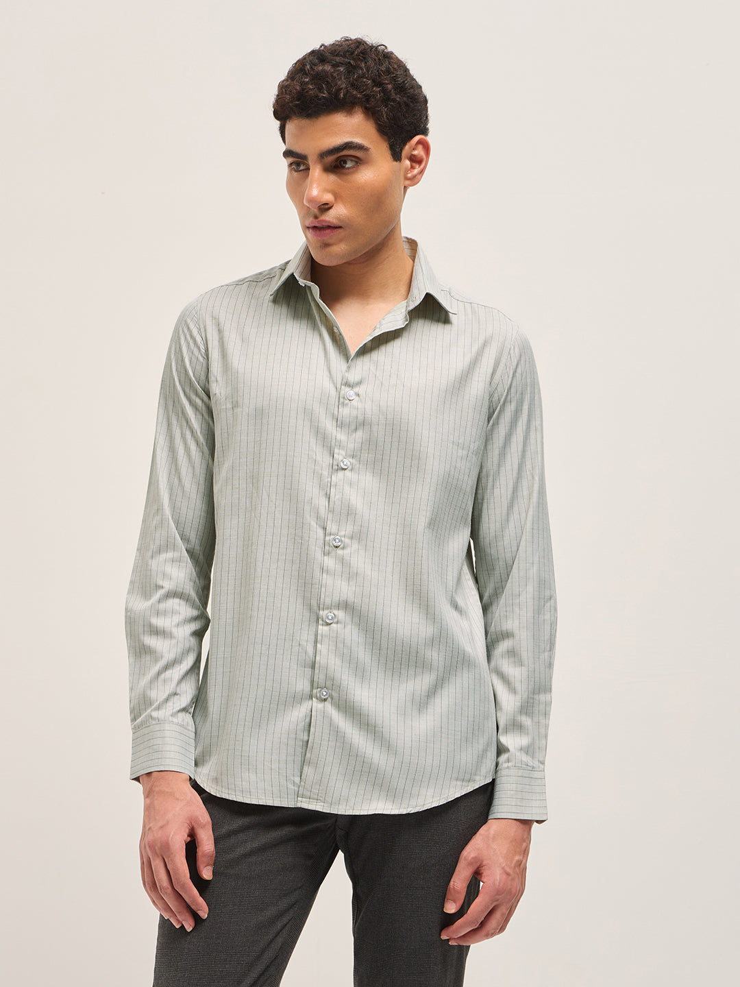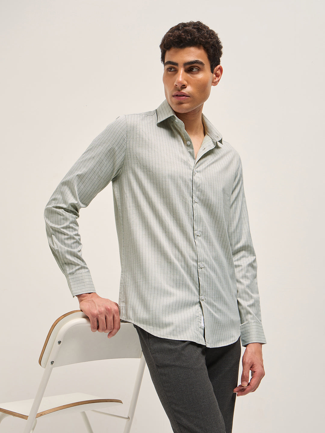 Shop Light Green Vertical Striped Tailored Fit Formal Shirt