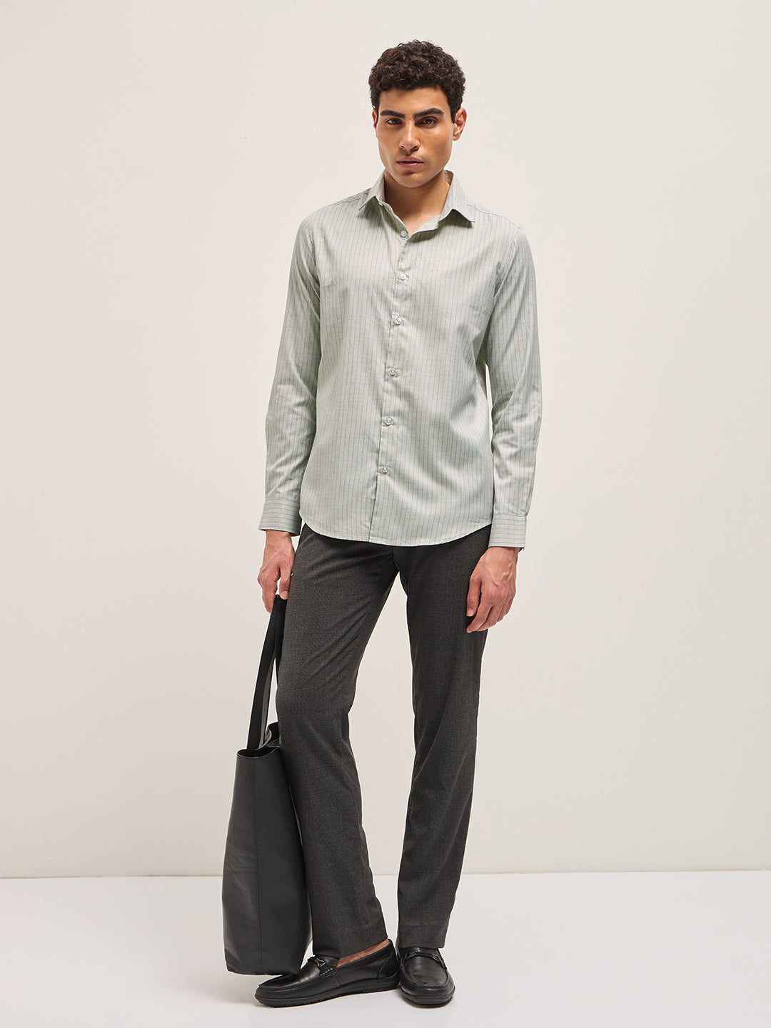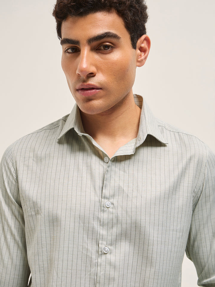 Light Green Vertical Striped Tailored Fit Formal Shirt