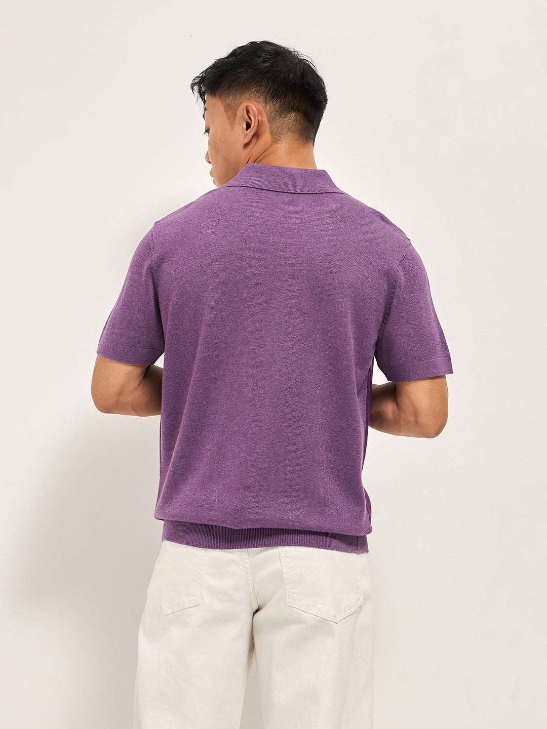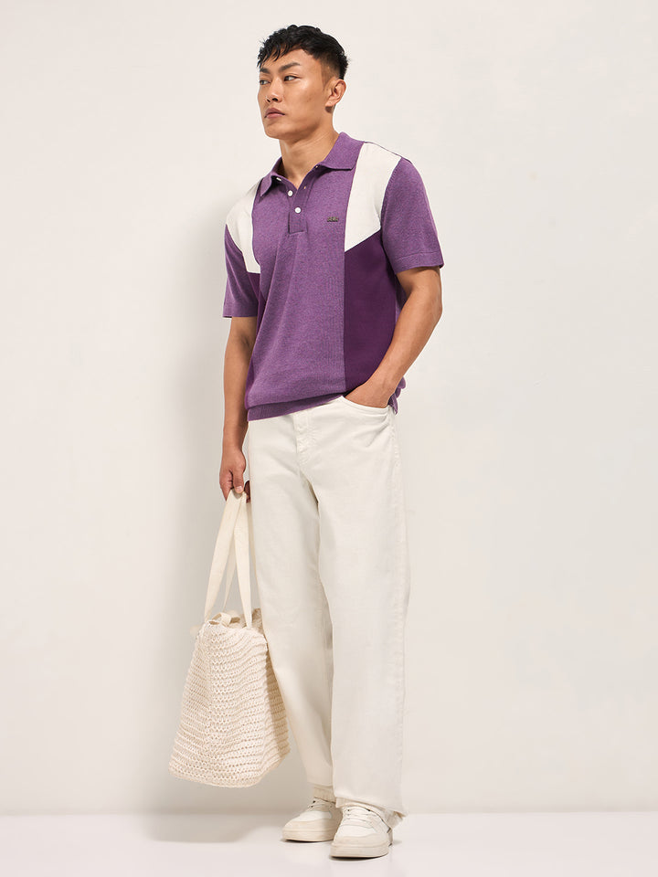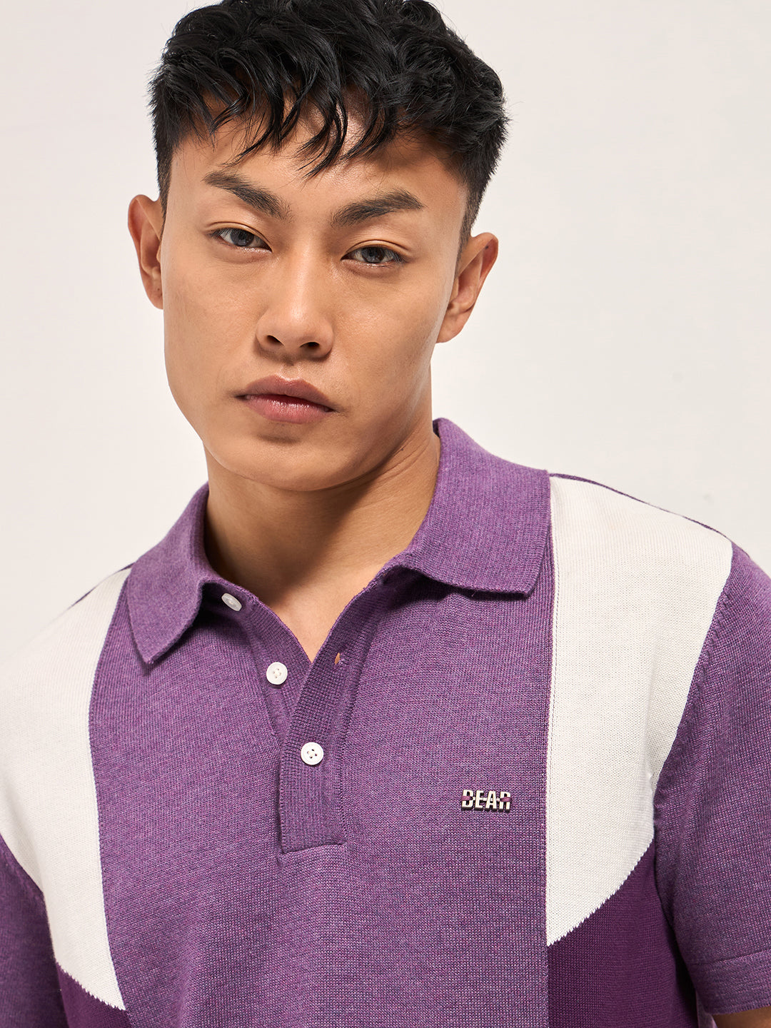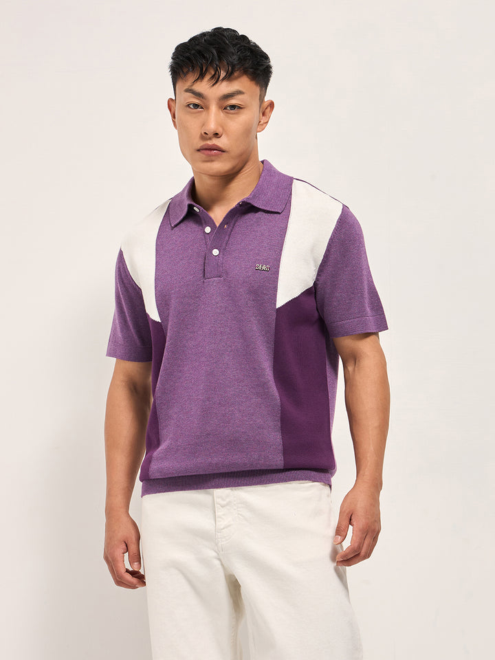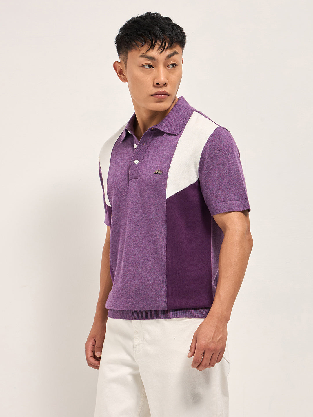 Multicolor Colorblock Flat Knit Polo with Regular Fit and Metal Logo Detail
