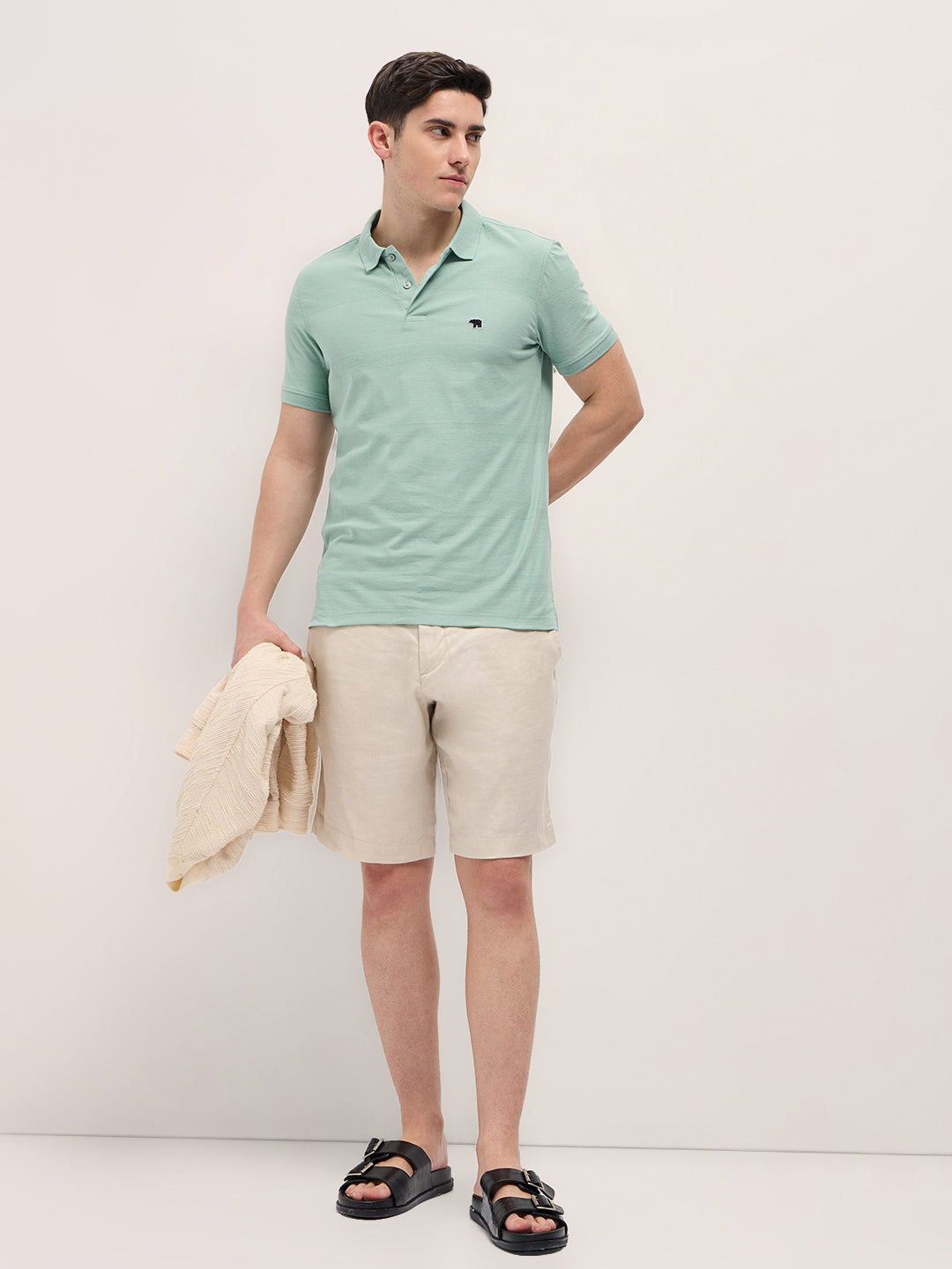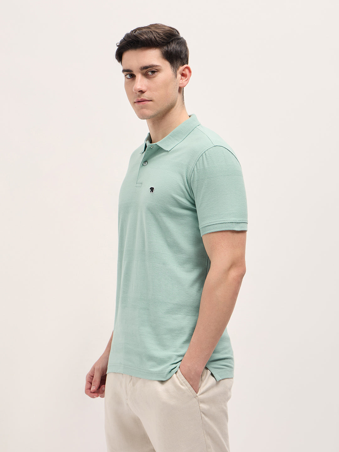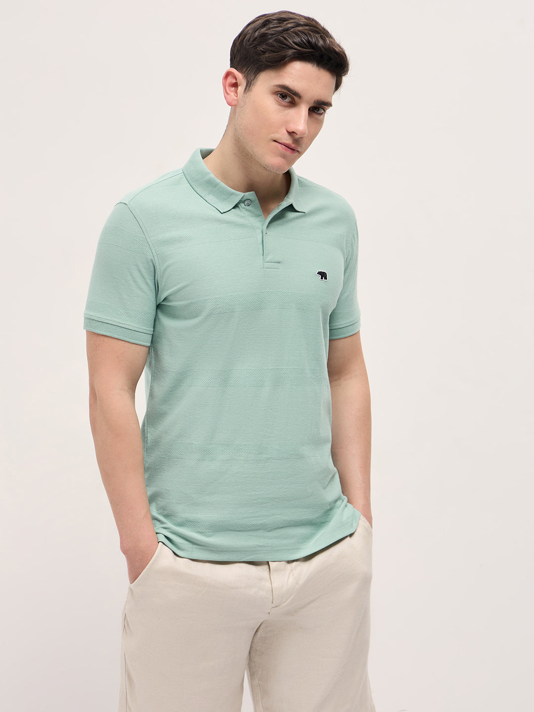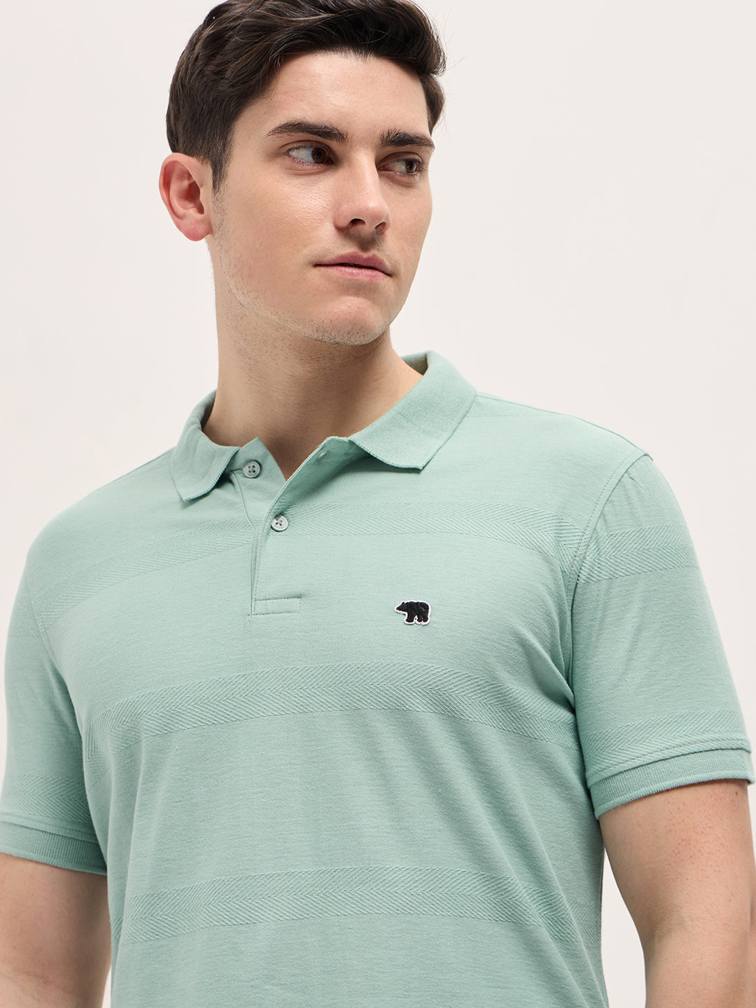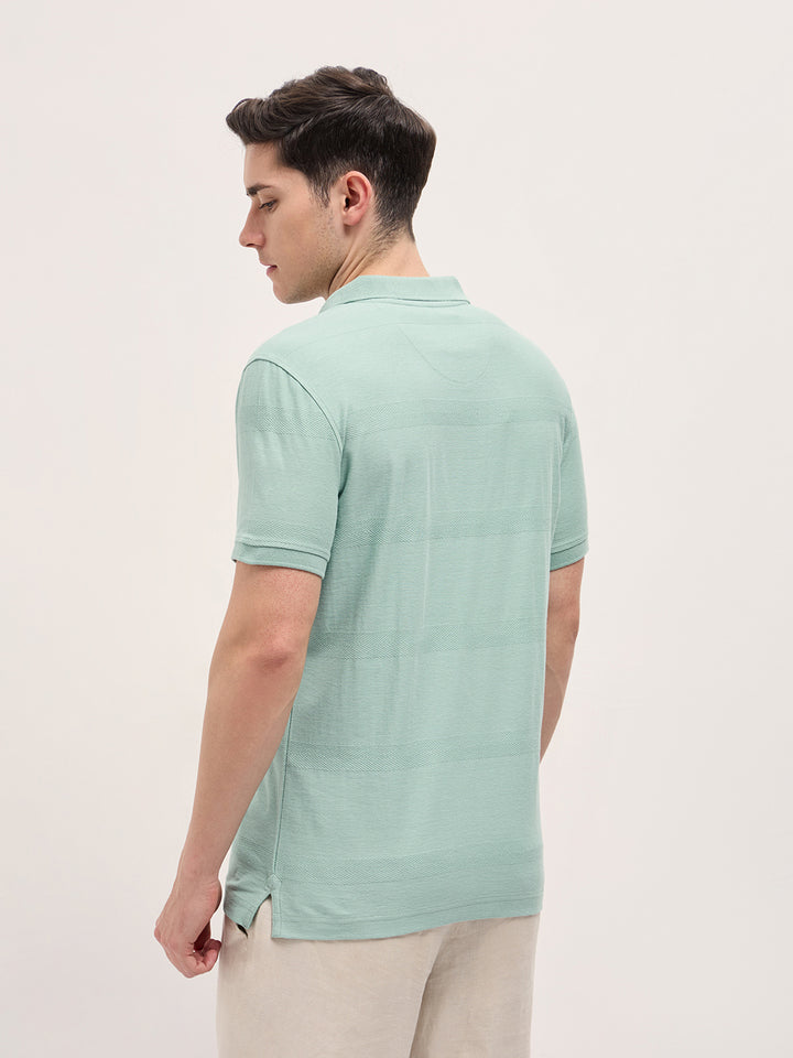 Mint Green Horizontal stripes Textured Knit Regular Fit Polo