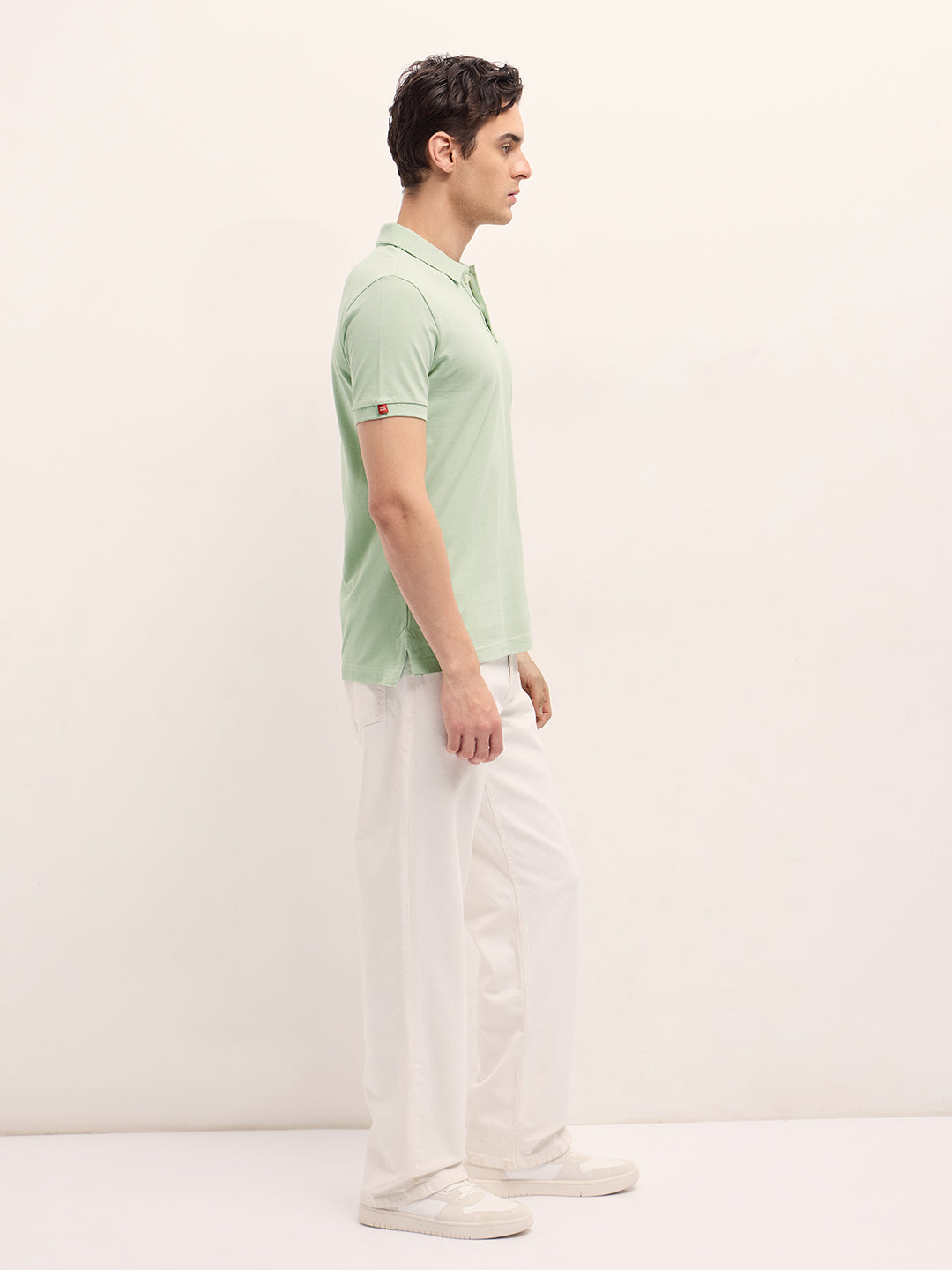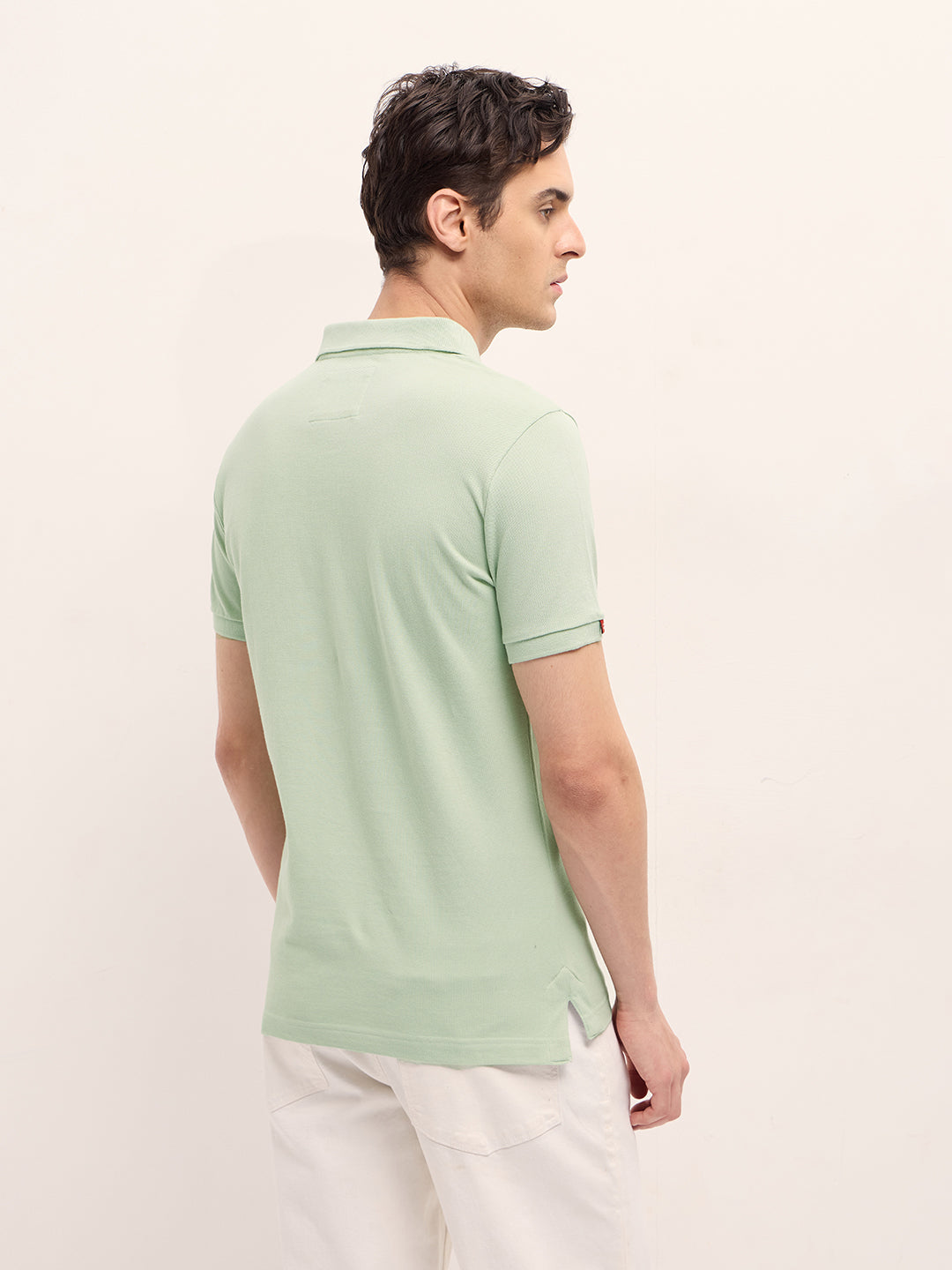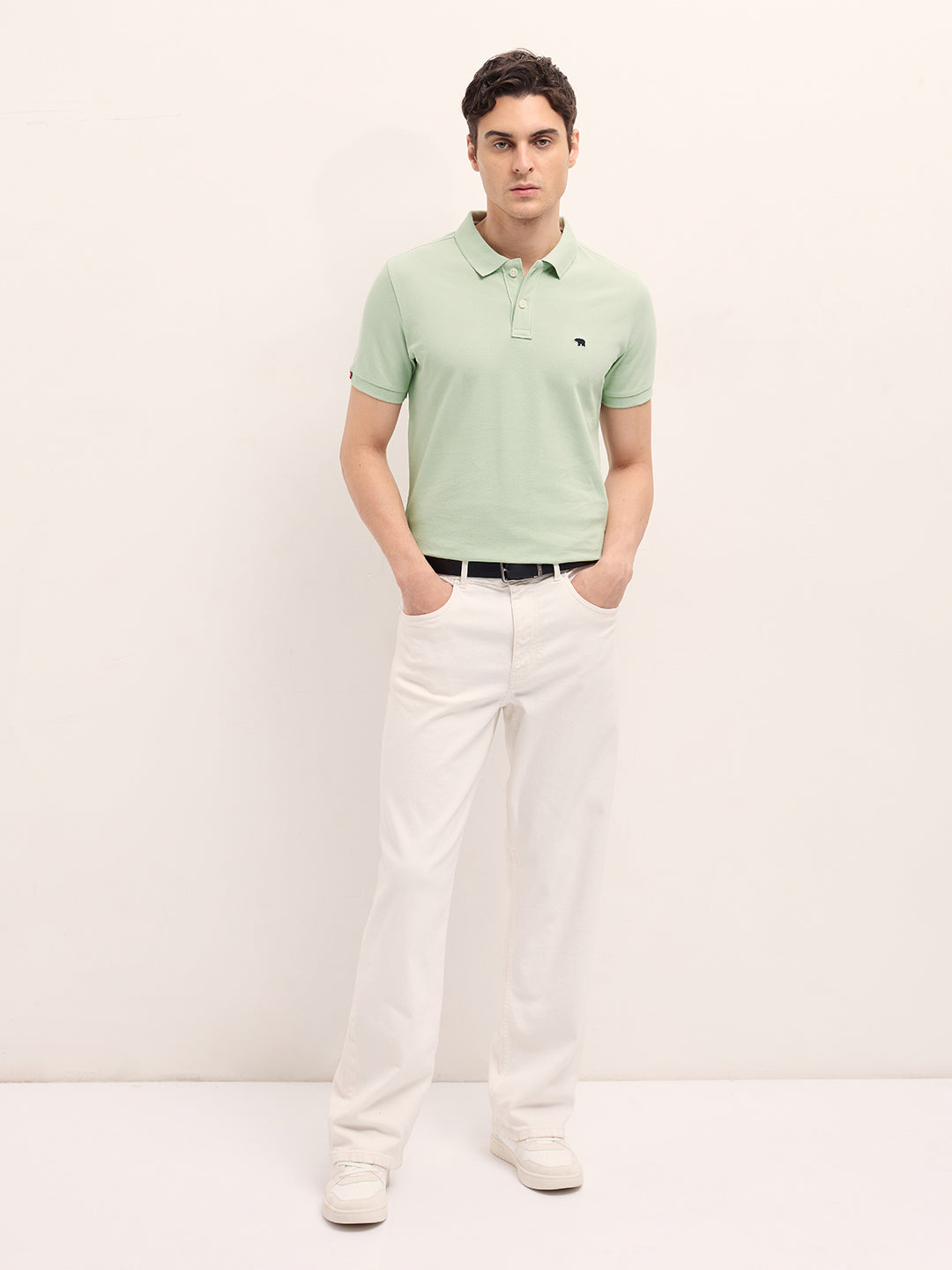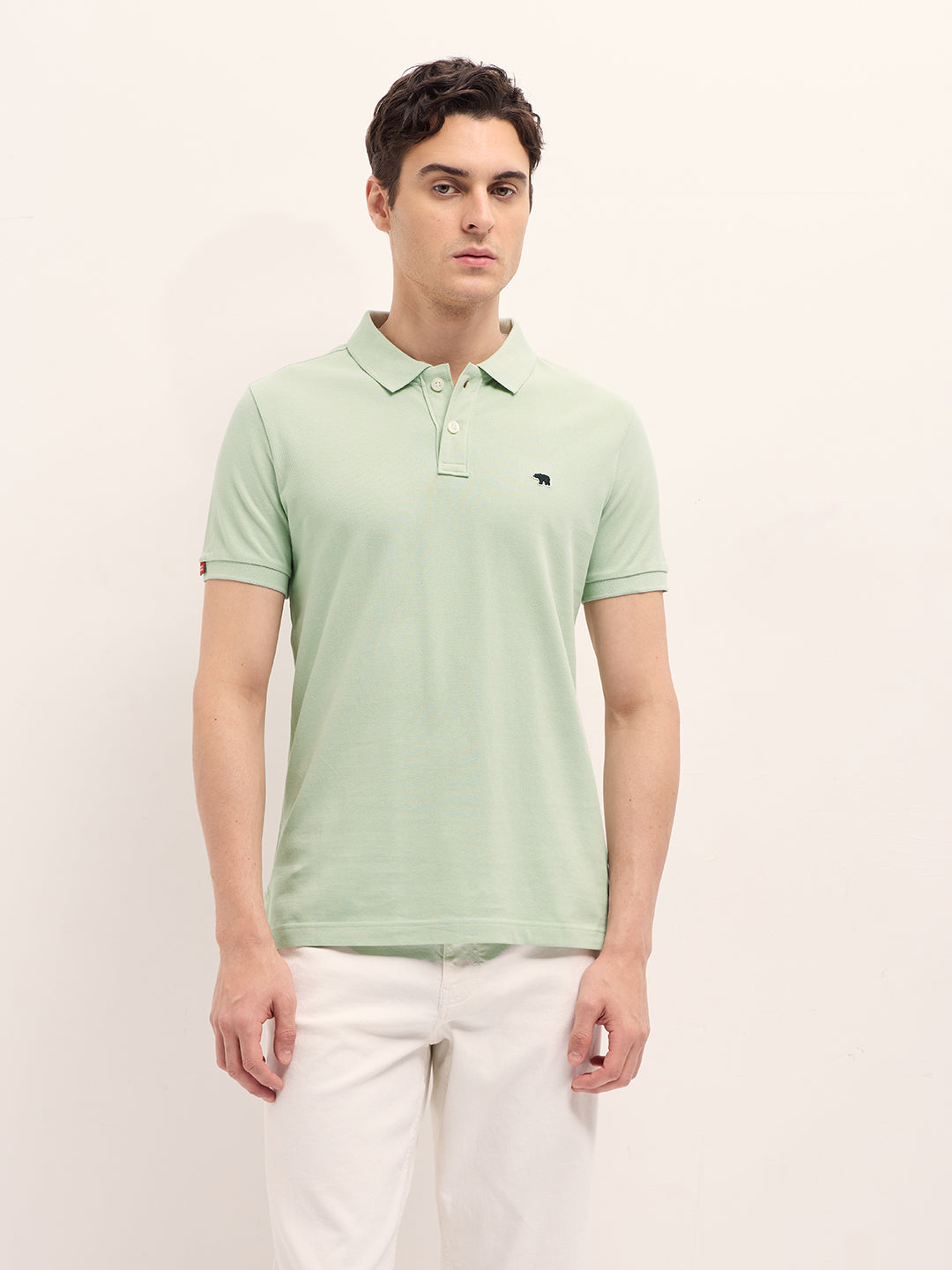 Light Green Solid Regular Fit Polo with Embroidered Chest Logo