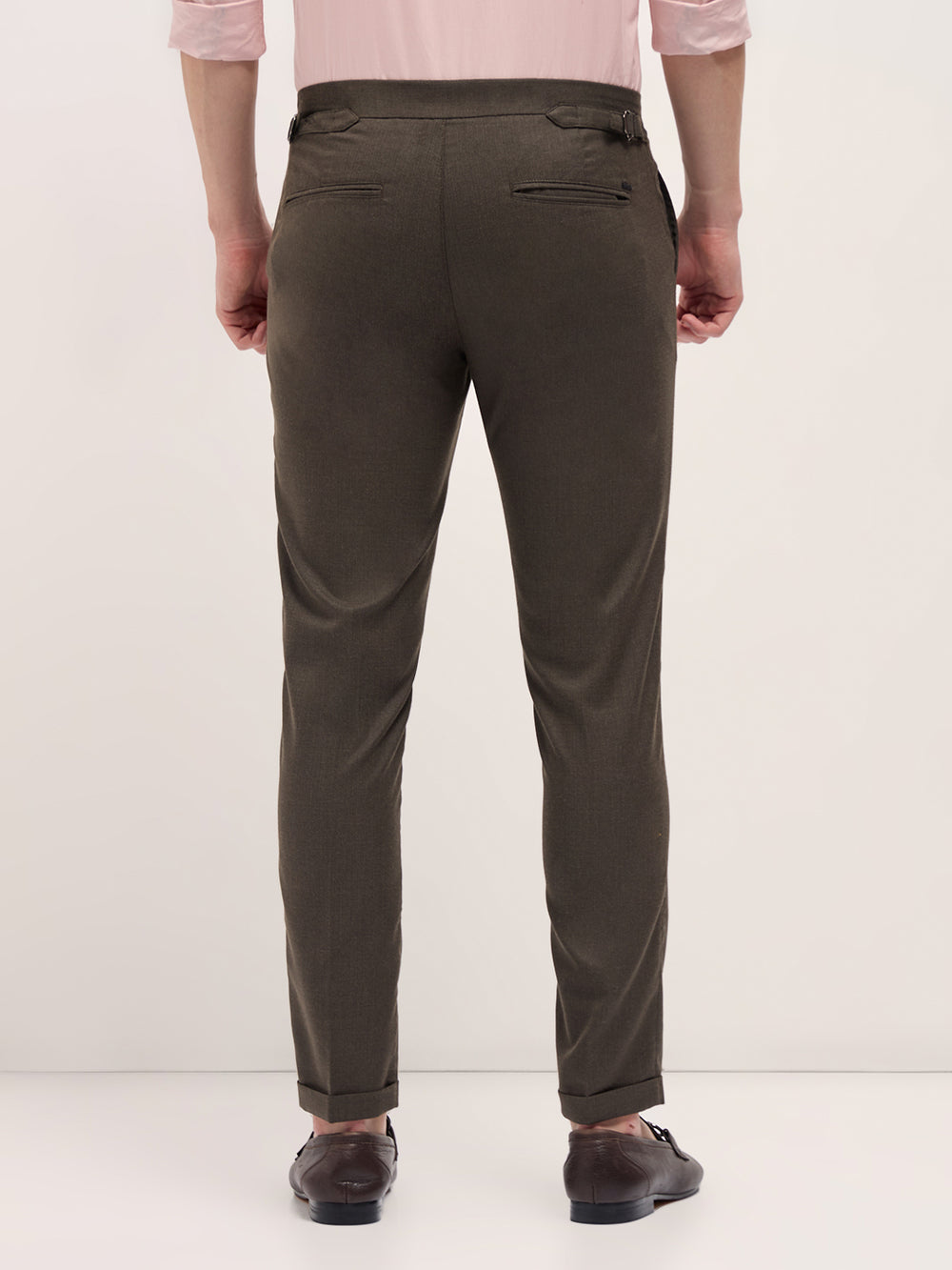 Brown Slim Fit Formal Trouser with Adjustable Waist Tabs